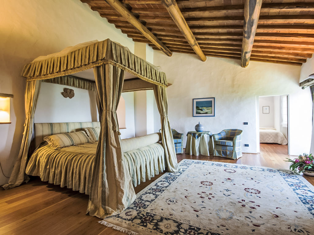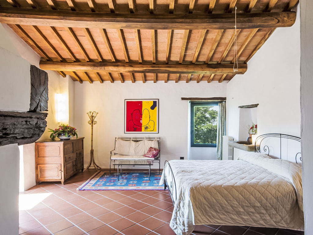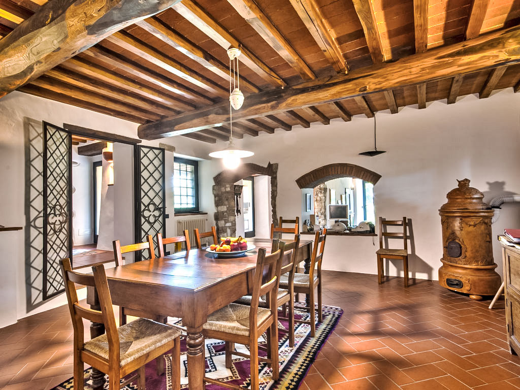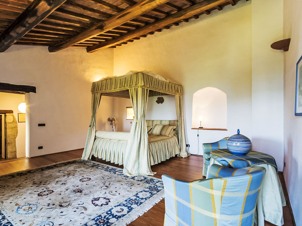 Sieci 19 km von Firenze: Alleinstehendes Haus und Nebengebäude mit insgesamt 9 Zimmern (7+2), 455 m2 (400+55 m2). Das Hauptgebäude war im Mittelalter ein Wachtturm. 400 m.ü. M, 8 km von Sieci und 19 km von Firenze entfernt. Das Anwesen wurde vollständig restauriert und sorgfältig eingerichtet, wobei antike und rustikale Möbel kombiniert wurden. An abgelegener Panoramalage mit schöner Sicht auf die Hügellandschaft rund um Florenz, umgeben von Olivenhainen, Wäldern und Wiesen. Ausgestattete Aussenbereiche mit Pergola und Pizzaofen. Spazierwege im Wald mit Weiher. Bahnverbindung nach Florenz, gute Verbindungen von den Flughäfen Pisa und Florenz aus. Im Ferienhaus: Zentralheizung. Reinigung unter der Woche auf Anfrage (extra). Die Heizung für normative Verweise, kann auf maximal 12 Stunden aufbewahrt werden. Die Möglichkeit, die gesamte Villa zu buchen für 9 Personen (unsere Nr. IT5270.899.3) ohne den Einsatz der Suite. Alleinstehender Finca "Cafaggio di Sopra". 8 km vom Zentrum von Sieci, 19 km vom Zentrum von Firenze, ruhige, sonnige, erhöhte Lage auf einem Hügel. Zur Alleinbenutzung: Grundstück 4 ha, Garten Rasen, Schwimmbad (6 x 12 m, 150 cm tief, 14.03.-17.10.). Tischtennis, Gartenmöbel, Grill, Kinderspielplatz. Im Hause: Internetzugang, Heizung nur verfügbar von 01.11. bis 15.04.. Zufahrt (1 km Naturweg). Parkplatz. Einkaufsgeschäft 8 km, Restaurant 2 km, Bushaltestelle 4 km, Bahnstation "Sieci" 8 km. Reitstall 2 km. Nahe gelegene Sehenswürdigkeiten: Luxury Outlet The Mall 20 km.
