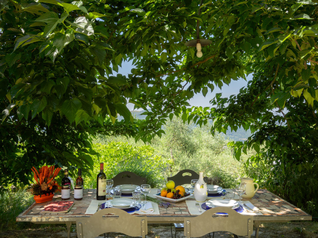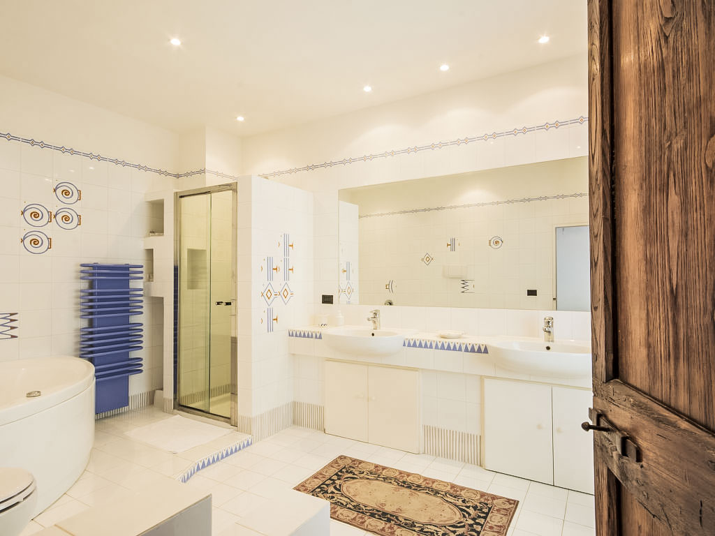 7-Zimmer-Villa 400 m2 auf 2 Stockwerken, im Erdgeschoss. Luxuriös und geschmackvoll eingerichtet: Wohnzimmer mit offenem Kamin und Sat-TV. Esszimmer. 1 Doppelzimmer mit offenem Kamin und Dusche/WC. Ausgang zum Garten. Küche (Backofen, Geschirrspüler, Mikrowelle, Tiefkühler). Sep. WC. Obergeschoss: 1 grosses Doppelzimmer. 1 kleines Zimmer mit 1 Bett. 1 Doppelzimmer. Grosses Wohn-/Schlafzimmer mit 1 Doppelbett und offenem Kamin. Ausgang zum Balkon. Dusche/Bidet/WC, Bad/Dusche/WC. Zur Verfügung: Waschmaschine, Telefon, Bügeleisen, Haartrockner. Internet (Wireless LAN, gratis). Eingang über kleine Laube mit Holzofen. Im 1. Obergeschoss ist das Einzelzimmer den Durchgangsraum zum grossen Badezimmer mit Druckstrahl-Wanne, Dusche und Doppelwaschbecken. Der Balkon verfügt über eine Steintreppe. E-Kaffeemaschine, Computer (Verbindung mit Modem, extra). Das Bad mit Dusche im Erdgeschoss ist rollstuhlgängig. Nebengebäude "Suite" mit 1 Wohnung (55 m2), 3-stöckig. Luxuriöse und geschmackvolle Einrichtung: Küche (4 Herdplatten, Backofen, Geschirrspüler, Tiefkühler) mit Esstisch und Ausgang Garten. 1. Obergeschoss: Wohnzimmer, offener Kamin, TV/DVD, Ausgang zum Garten. 2.Obergeschoss: 1 Zimmer mit Doppelbett mit Dusche/Bidet/WC. Innenhof. Bitte beachten: Das Nebengebäude ist ein Open Space-Haus. Den Gästen steht zur Verfügung: Amerik. und ital. Kaffeemaschine, Bügeleisen, Haartrockner.