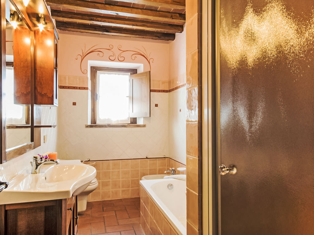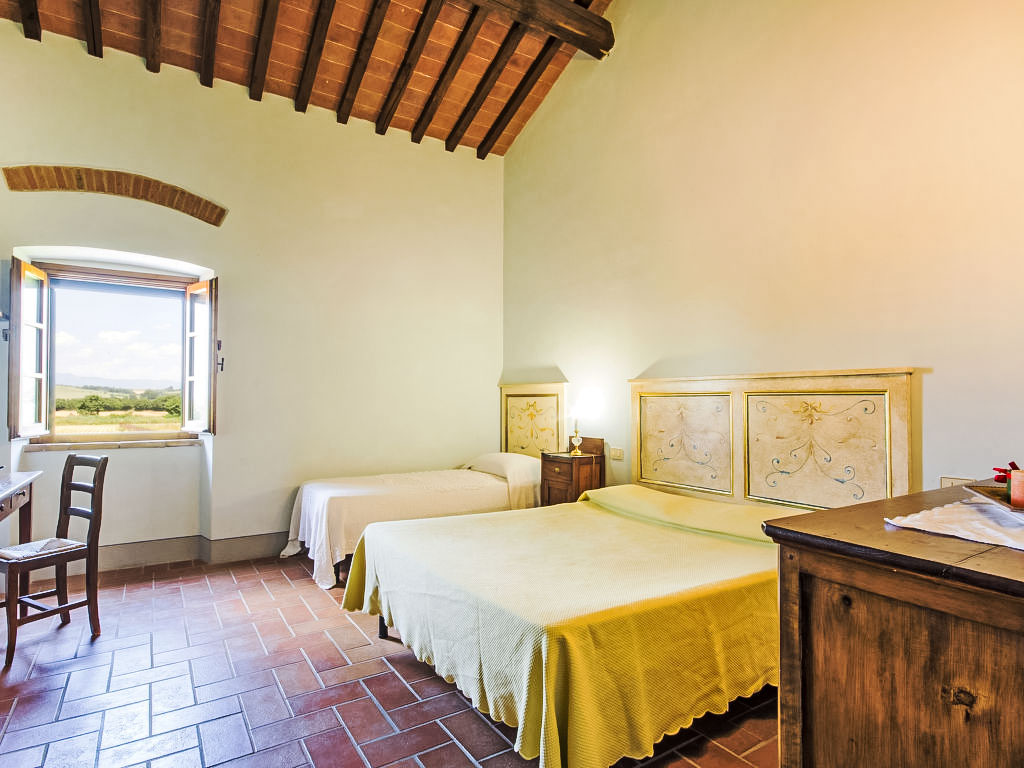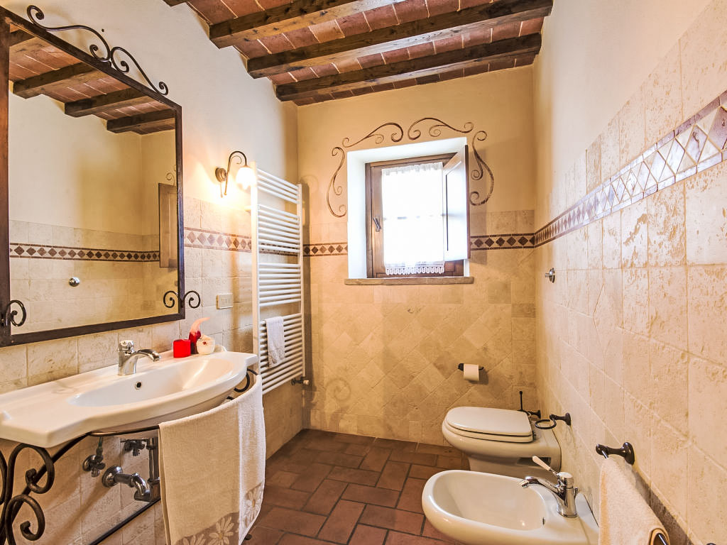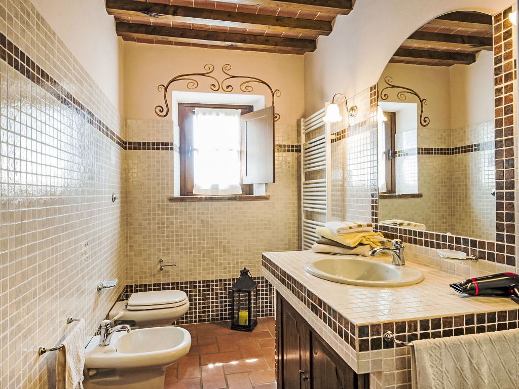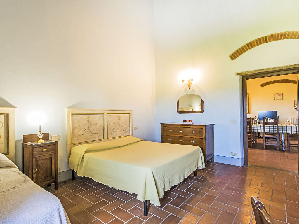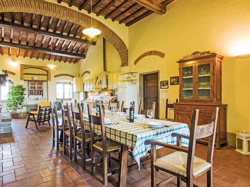 "La Salciaia", 7-Zimmer-Haus 450 m2 auf 2 Stockwerken im 1. Stock. Geräumig und hell, komfortabel und geschmackvoll eingerichtet: grosser Salon mit offenem Kamin, Esstisch und Sat-TV. Ausgang zur Loggia. 1 Doppelzimmer mit Bad/Dusche/Bidet/WC. 2 Doppelzimmer. 1 Zimmer mit 1 Bett und 1 Doppelbett. 1 Doppelzimmer. Kochnische (5 Kochplatten, Backofen, Geschirrspüler, Mikrowelle, Tiefkühler). 2 Duschen/Bidet/WC, Bad/Dusche/WC. Obergeschoss: 1 grosses Zimmer mit 1 Doppeldiwanbett, 1 Doppelbett und Klimaanlage. Terrasse. Terrassenmöbel. Schöne Sicht auf die Landschaft. Zur Verfügung: Waschmaschine, Bügeleisen, Fliegengitter, Kinderhochstuhl, Babybett, Haartrockner. Internet (Wireless LAN, gratis). Geeignet für Familien. Maximal 1 Haustier/Hund erlaubt.