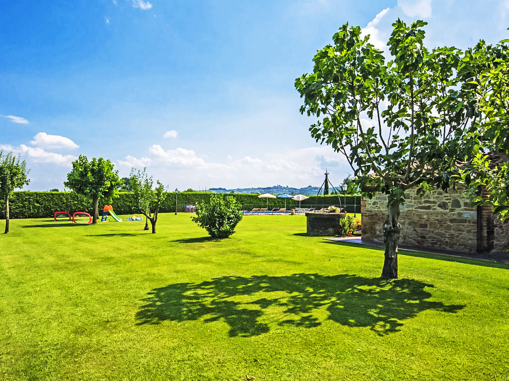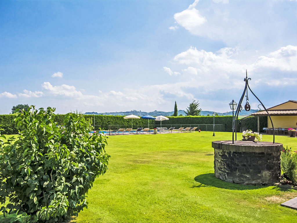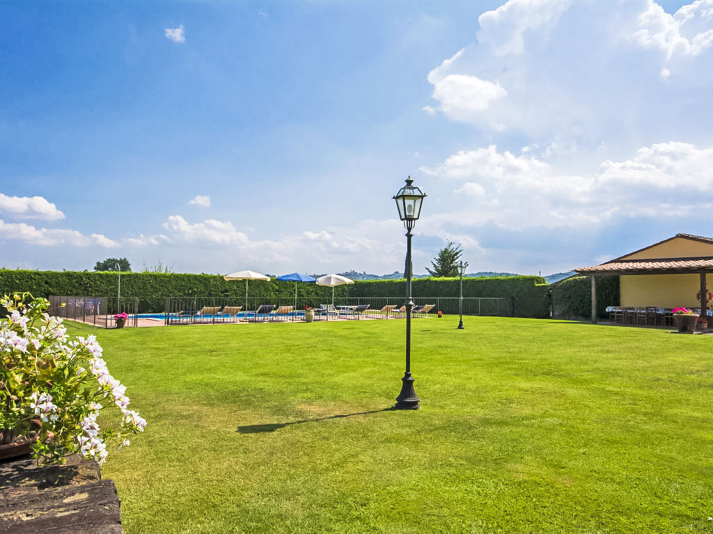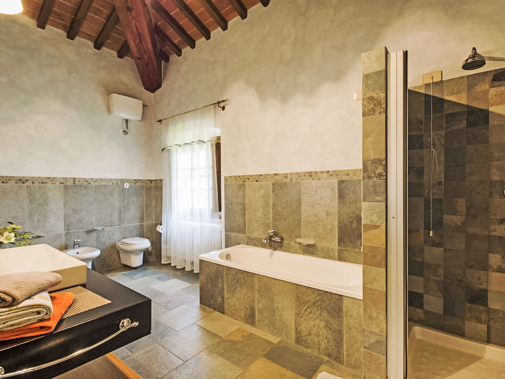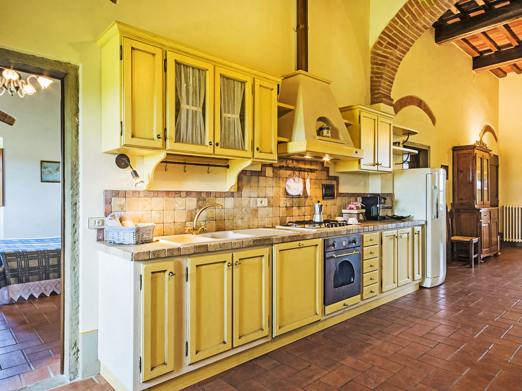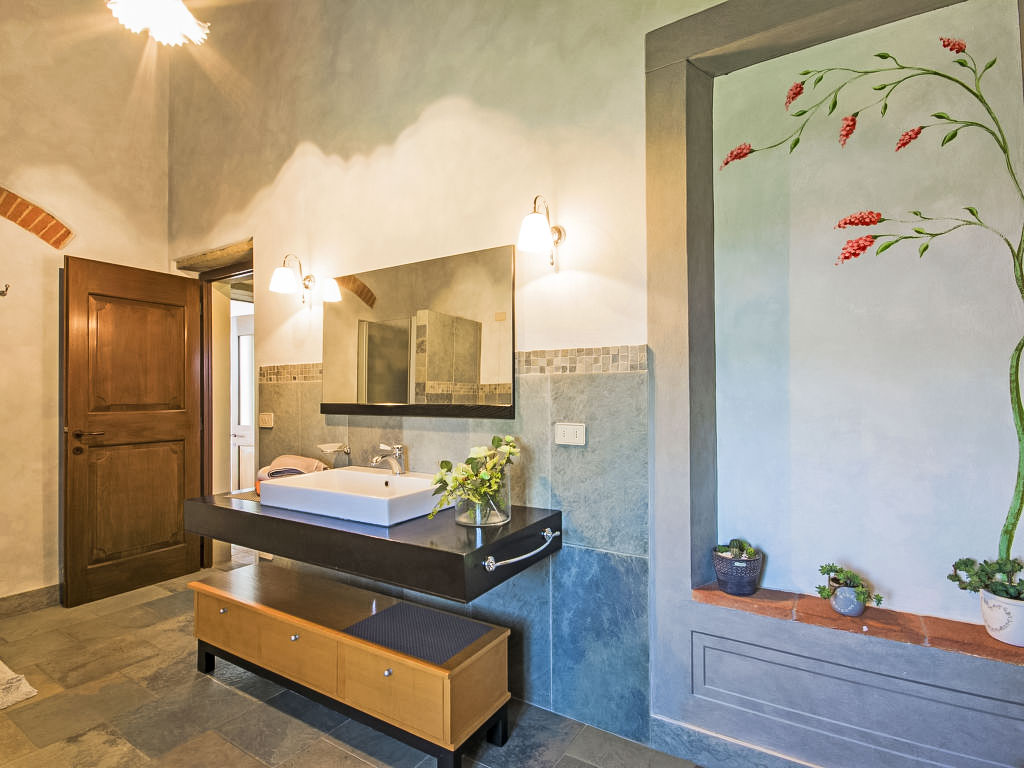 Landhaus im leopoldinischen Stil mit Taubenschlag, kürzlich restauriert. Grosse ausgestattete Aussenbereiche mit Holzofen und Gartenpavillon, einer Laube mit Grill und Pizzaofen sowie einem Arbeitsraum für Frühstück und Abendessen neben dem Schwimmbad, welches von Sonnenblumenfeldern umgeben ist. Das Anwesen befindet sich an abgeschiedener Lage, mit E-Gittertor. Reizvoll eingerichtete Räume, welche an den Charme eines Hauses aus vergangenen Zeiten erinnern, wie etwa das grosse Wohnzimmer mit Feuerstelle, der grosse Speisetisch, die Terracotta-Fussböden und die sehr hohen Decken mit Holzsichtbalken zeigen. Die Nähe zur Autobahn (3 km zur Autobahnzahlstelle, 800 m Luftlinie) bietet die ideale Ausgangslage für alle, die die Sehenswürdigkeiten der Toskana besuchen möchten. In der Nebensaison können auch Kurzaufenthalte von mind. 3 Nächten gebucht werden. Sehr grosse, schöne, komfortable Villa, Baujahr 1814, renoviert, umgeben von Wiesen. 3 km vom Zentrum von Monte San Savino, 7 km vom Zentrum von Lucignano, 80 km vom Zentrum von Firenze, sonnige Lage, im Grünen. Zur Alleinbenutzung: Grundstück 6 ha, Garten 2'000 m2 (eingezäunt) mit Rasen, Schwimmbad eingezäunt (6 x 12 m, 120 - 230 cm tief, 09.04.-01.10.) mit Innentreppe. Aussendusche, Tischtennis, Laube, Gartenmöbel, Grill, Kinderspielplatz (Rutschbahn). Im Hause: Tischtennis, Zentralheizung, Waschmaschine, Heizung vor Ort zu zahlen (01.11.-15.04.), Heizung nur verfügbar von 01.11. bis 15.04.. Wohnungsreinigung möglich (extra). Koch möglich (extra). Parkplatz. Supermarkt 3 km, Einkaufszentrum 12 km, Bahnstation "Monte San Savino" 3 km, Thermalbad "Serre di Rapolano" 34 km. Reitstall 12 km. Nahe gelegene Sehenswürdigkeiten: Arezzo 12 km, Montepulciano 33 km, Pienza 39 km, Siena 40 km, Cortona 42 km, Montalcino 46 km. Geeignet für Events.