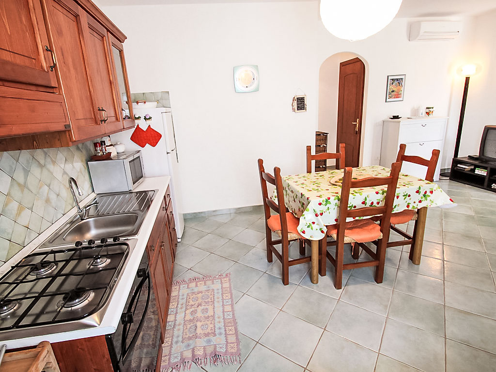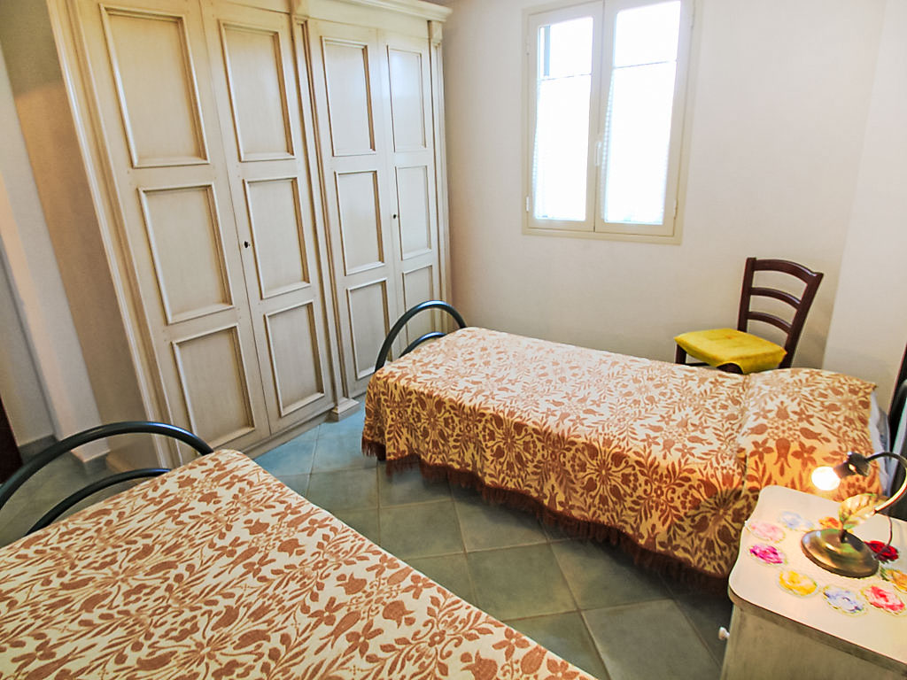 3-Zimmer-Haus 65 m2 auf 2 Stockwerken. Komfortabel eingerichtet: Wohn-/Esszimmer mit 1 Doppeldiwanbett. Kochnische (4 Kochplatten, Backofen, Mikrowelle, Tiefkühler). Dusche/Bidet/WC. Obergeschoss: 1 Doppelzimmer mit Digital-TV. 1 Zimmer mit 2 Betten. Dusche/Bidet/WC. Klimaanlage (extra). Zur Verfügung: Waschmaschine. Parkplatz beim Haus.