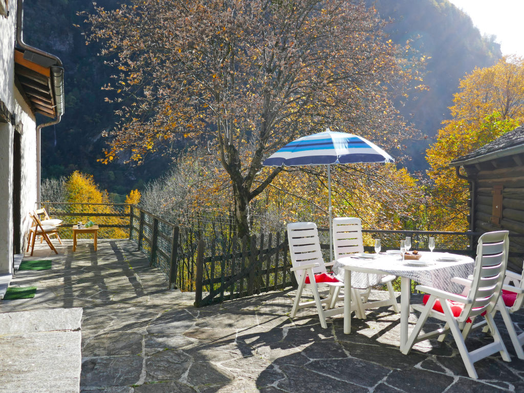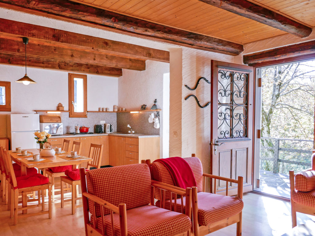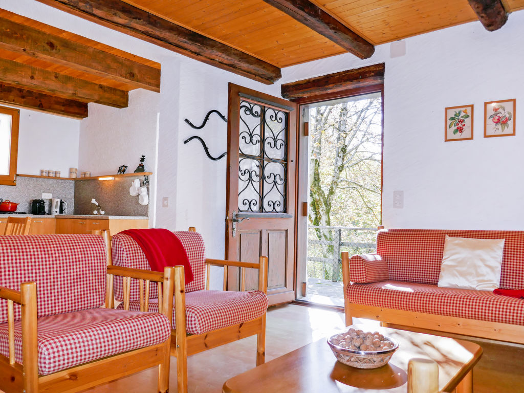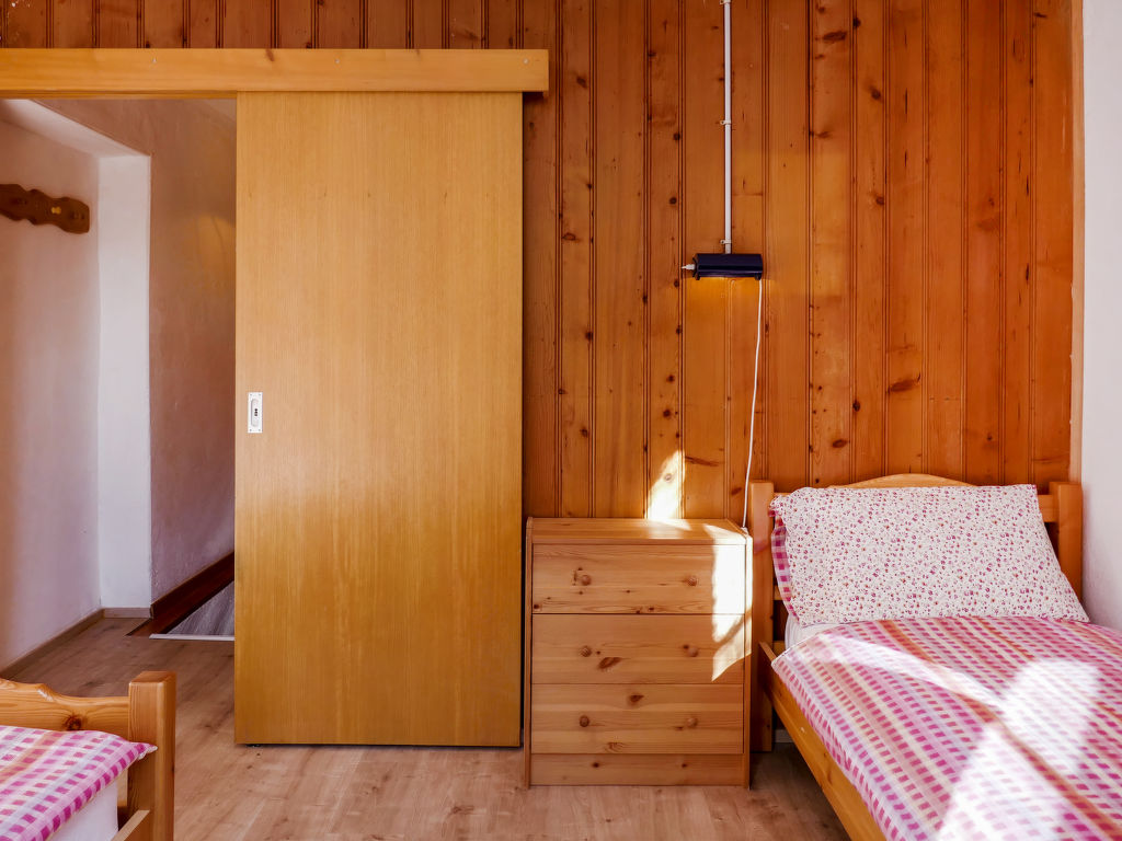 "Casa Angela", 4-Zimmer-Landhaus. Zweckmässig und rustikal eingerichtet: offenes Wohn-/Esszimmer mit offenem Kamin, Esstisch und Sat-TV. Ausgang zur Terrasse. 1 Zimmer mit 2 x 2 Etagenbetten (80 cm, Länge 200 cm). Offene Küche (4 Kochplatten, Mikrowelle, elektrische Kaffeemaschine, Kapseln für die Kaffeemaschine (Nespresso), Fondue Set (Käse)). Ausgang zur Terrasse. Bad/WC. Obergeschoss: (steile Treppe) 1 Doppelzimmer mit 1 Doppelbett (2 x 80 cm, Länge 200 cm). 1 Zimmer mit 2 Betten (80 cm, Länge 200 cm). Grosser Gartensitzplatz. Gartengrill (mobil), Liegestühle. Sehr schöne Sicht auf die Berge, das Tal und den Wald. Zur Verfügung: Kinderhochstuhl, Babybett bis 2 Jahre (extra), Haartrockner. Bitte beachten: Nichtraucher-Haus. 1 Haustier/Hund erlaubt. Feuerlöscher. Gas Küche. Auf Anfrage können zwei Zustellbetten gebucht werden. Im Erdgeschoss großer Keller / Abstellraum.