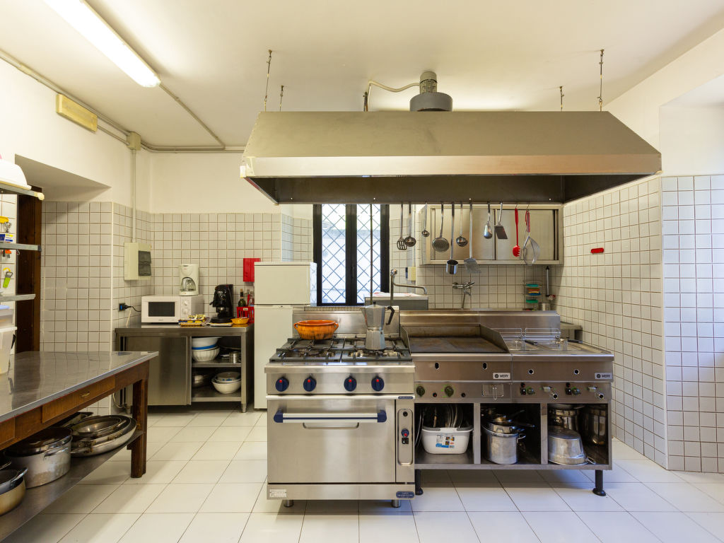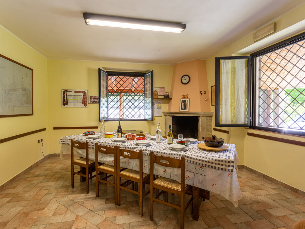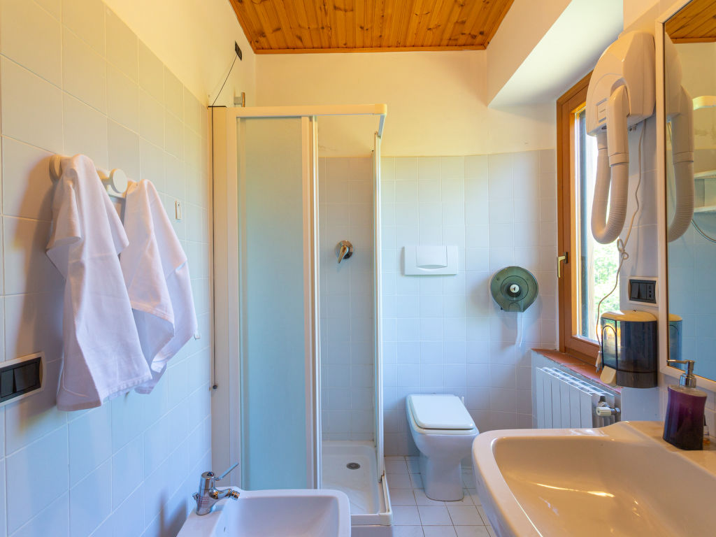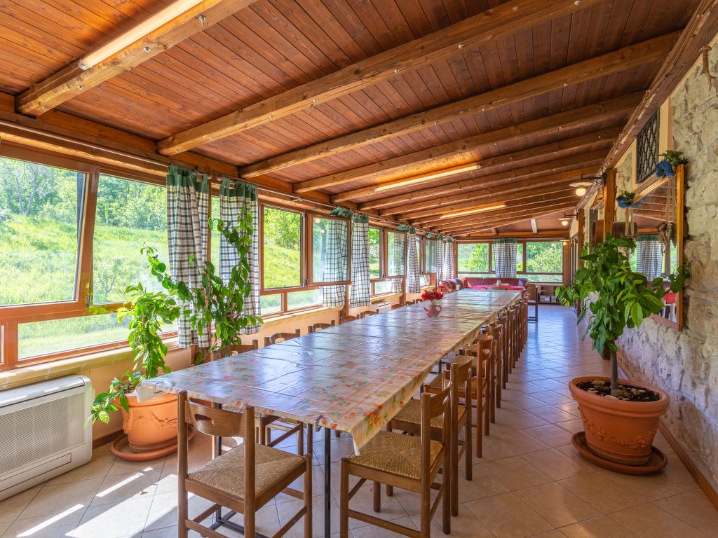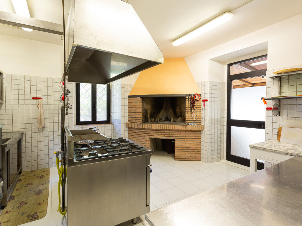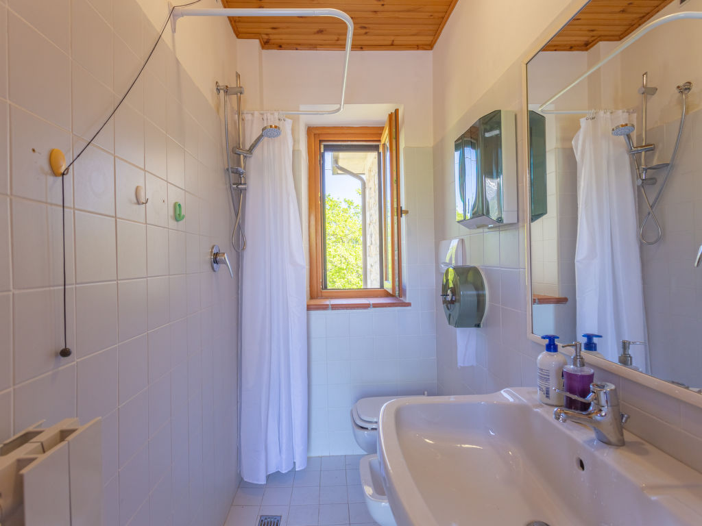 7-Zimmer-Haus, 2 Etagen, ca. 270 m². Erdgeschoss: Wohnraum mit Sitzgruppe und Kamin. Esszimmer mit Kamin. Weiterer Wohnraum mit großer Fensterfront, Essplatz und Pelletkaminofen. Gastroküche (4 Flammen, Backofen, Mikrowelle, Geschirrspüler, Kühl-/Gefrierkombination, Kaffeemaschine, Friteuse) mit Kamin. 2x WC. Über Steintreppe ins Obergeschoss: 2 Schlafzimmer, jeweils mit franz. Bett (1,60 m breit) und Einzelbett, jeweils mit Dusche/WC. Schlafzimmer mit franz. Bett (1,60 m breit). Kleines Schlafzimmer mit Etagenbett. Dusche/WC.