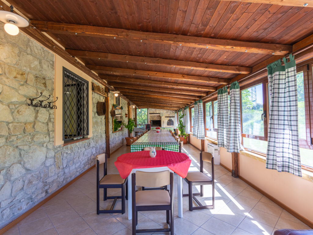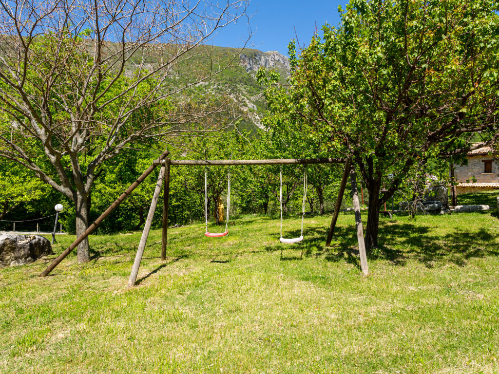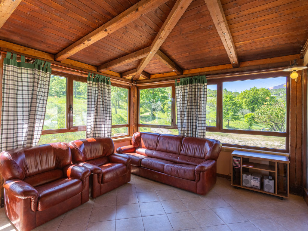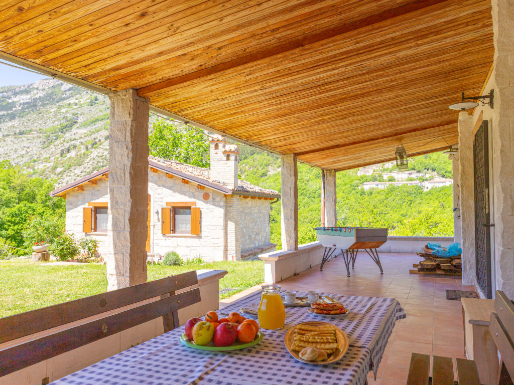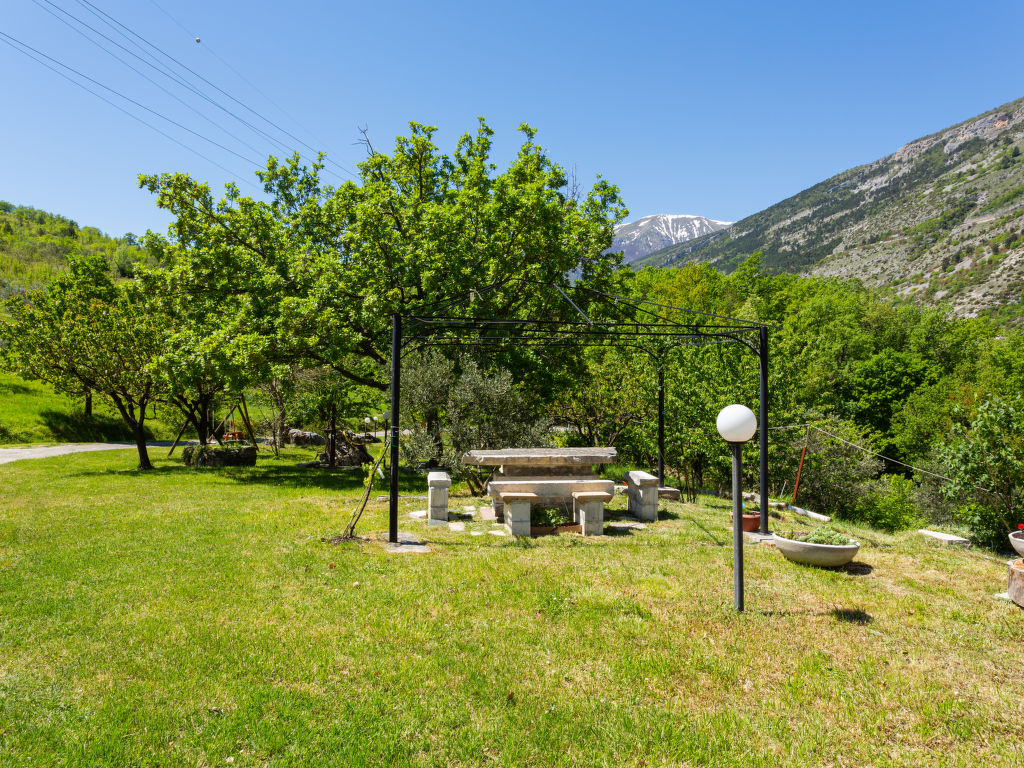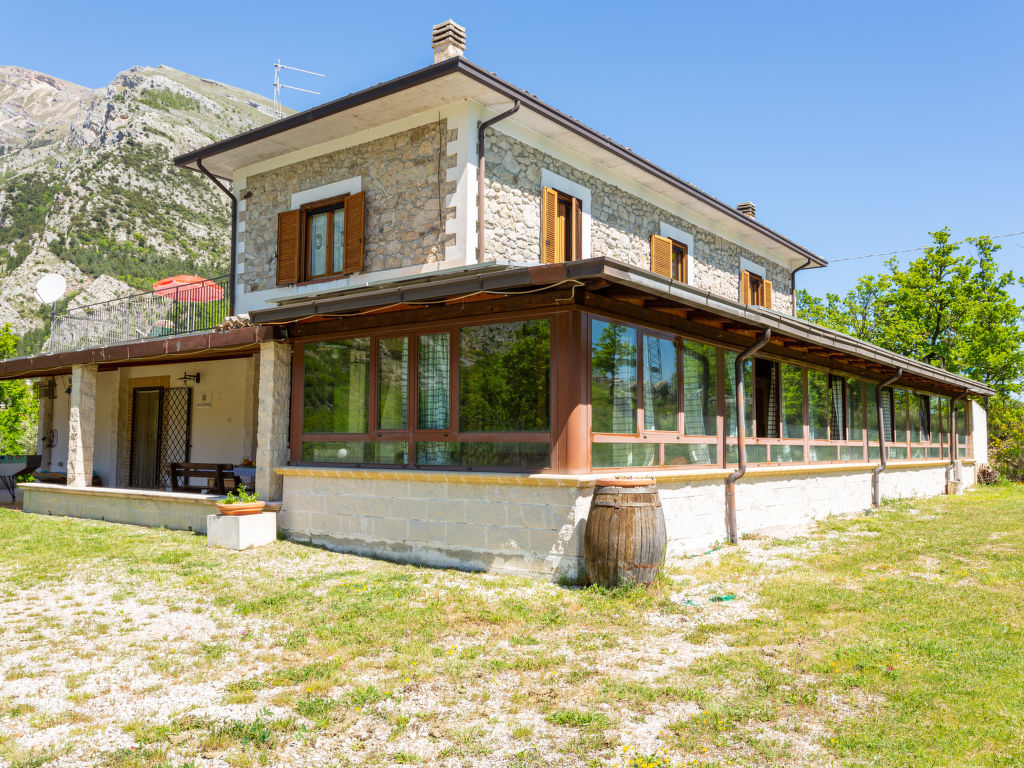 Das geräumige Landhaus ACQUEVIVE, ein Natursteinhaus, steht mitten im Grünen, 1 km außerhalb von Taranta Peligna mit Lebensmittelgeschäft und ca. 500 m oberhalb des Parks 'Acquevive'. Supermarkt in Palena 9 km. Herrlicher Blick auf das Gebirgsmassiv der Maiella (2793 m). In 3 km Entfernung Einstiegsmöglichkeit zu ausgeschilderten Wanderwegen. Spaziermöglichkeiten auch direkt vom Grundstück aus. Zufahrt ca. 300 m über ansteigendes, asphaltiertes Privatsträßchen. Zufahrtstor. Parkplätze am Haus. Ca. 3 ha großes, naturbelassenes Grundstück mit Oliven- und Apfelbäumen sowie Nutzgarten. Vor dem Haus Rasenfläche zum Sonnenbaden. Außendusche. Umlaufende, überdachte Terrasse mit Mobiliar. Große Dachterrasse im Obergeschoss. Gemauerter Grill/Pizzabackofen. Tischfußball. Kinderschaukel. Der Besitzer kommt bei Mieterwechsel zur Grundstückspflege und nutzt dazu ein kleines Häuschen neben dem Ferienhaus. Ordentliche Einrichtung mit rustikalen Möbeln. Fliesenböden. Zum Teil Holzbalkendecken. TV. Waschmaschine. Gas-Zentralheizung. Hinweis: Rauchen ist im Haus nicht gestattet.