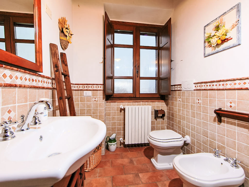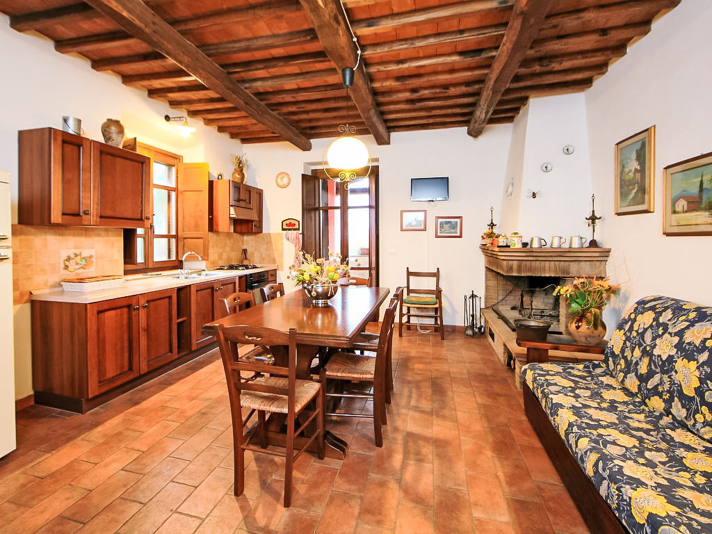 "Quercia", 4-Zimmer-Wohnung 110 m2 im 1. Stock. Komfortabel und rustikal eingerichtet: Wohn-/Esszimmer mit 1 Doppeldiwanbett und offenem Kamin. Ausgang zur Loggia. 1 Doppelzimmer. 1 Zimmer mit 1 Bett und 1 Diwanbett. 1 Zimmer mit 2 Betten. Kochnische (4 Kochplatten, Backofen, Mikrowelle, Tiefkühler) mit Esstisch. 2 Duschen/Bidet/WC. G-Heizung (extra). Heizung nur verfügbar von 01.11. bis 15.04. Terrassenmöbel. Panoramasicht. Zur Verfügung: Fliegengitter, Haartrockner. Internet (Wireless LAN). 1 Haustier/Hund erlaubt. Die Veranda ist ausgestattet (40 m2) und die Zusatzbetten befinden sich im Wohnzimmer.