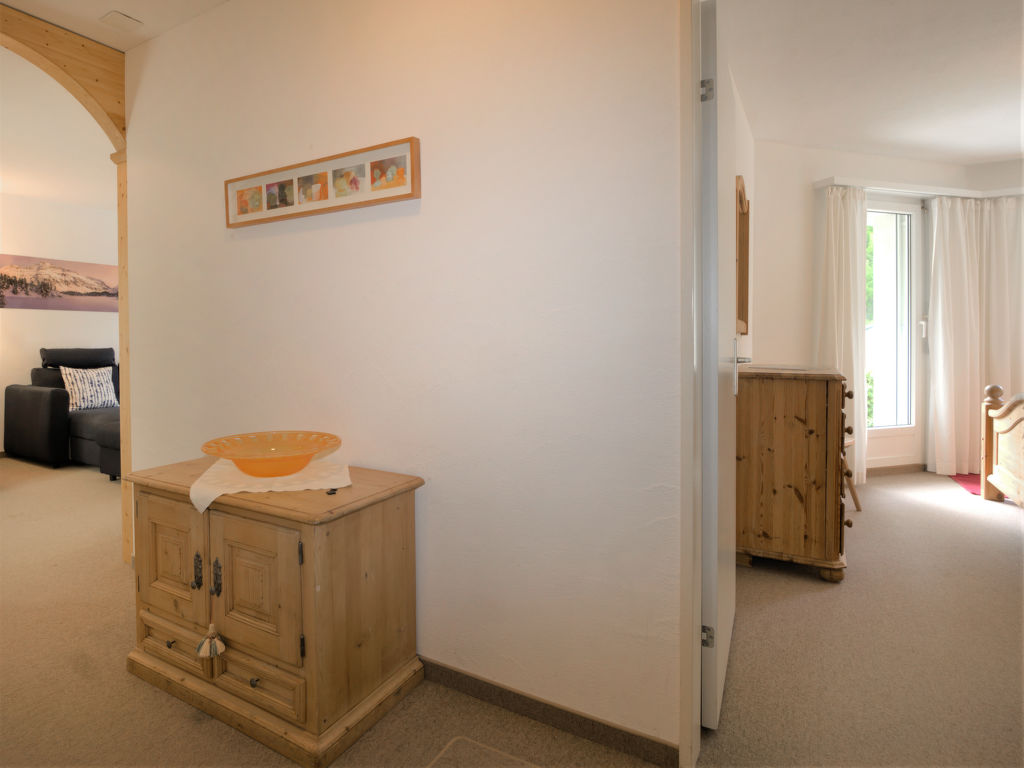 "Chesa Flora 53", 2-Zimmer-Wohnung 66 m2, im Erdgeschoss. Hell, komfortabel und gemütlich eingerichtet: Wohn-/Esszimmer mit 1 Doppeldiwanbett (140 cm, Länge 190 cm), Sat-TV. Ausgang zum Gartensitzplatz. 1 Zimmer mit 1 Doppelbett (2 x 90 cm, Länge 200 cm). Offene Küche (Backofen, Geschirrspüler, 4 Glaskeramikherd Platten, Toaster, Wasserkocher, elektrische Kaffeemaschine) mit kleiner Bar. Bad/WC. Teppichboden. Kleiner Gartensitzplatz. Terrassenmöbel. Sicht auf den Wald. Zur Verfügung: Haartrockner. Internet (Wireless LAN, gratis). Garage Nr. 22 (1 Auto), Höhe 220 cm, Breite 240 cm. Bitte beachten: Nichtraucher-Unterkunft.