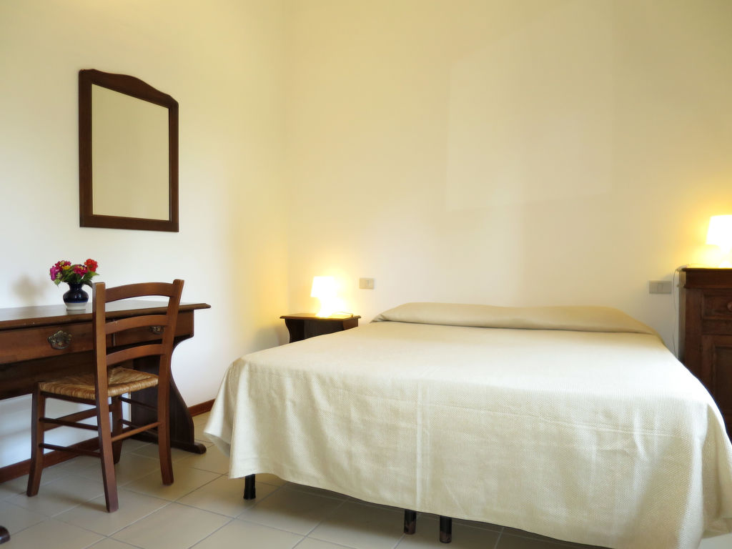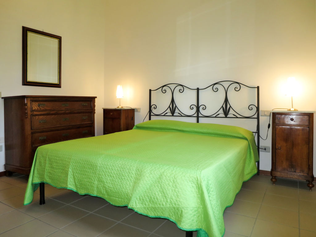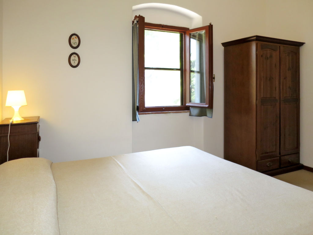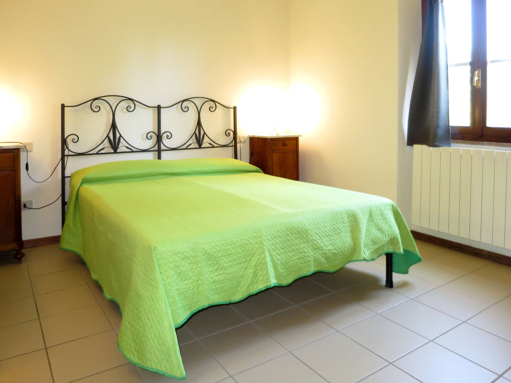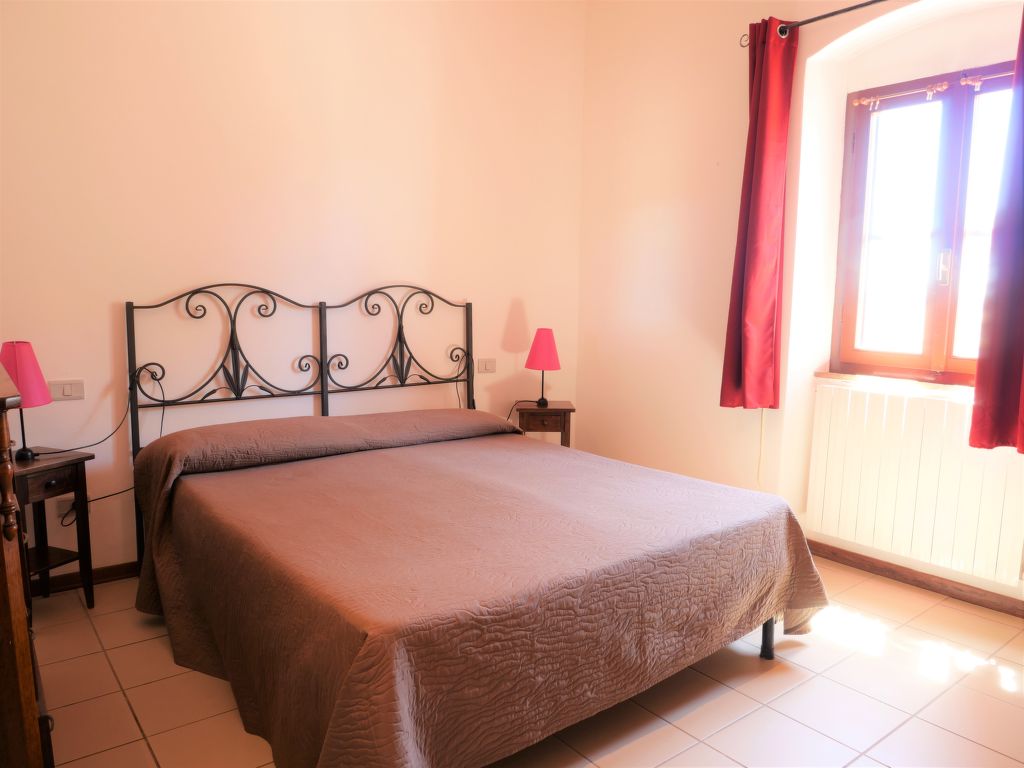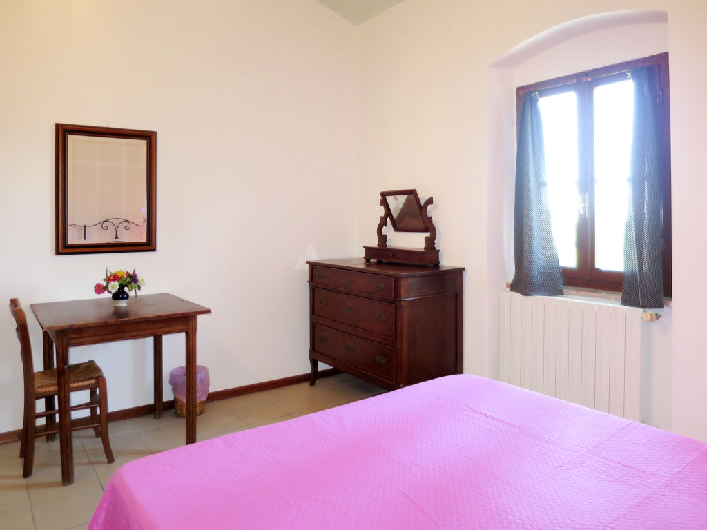 "Il Casale", 7-Zimmer-Haus 150 m2 im 1. Stock. Einfach und rustikal eingerichtet: Wohn-/Esszimmer mit Esstisch und TV. Ausgang zum Gartensitzplatz. 6 Zimmer, jedes Zimmer mit 1 franz. Bett (160 cm). Offene Küche (4 Kochplatten, Backofen, Geschirrspüler, Tiefkühler). 3 Duschen/Bidet/WC. G-Heizung. Terrasse, Gartensitzplatz überdacht. Terrassenmöbel, Gartengrill, Liegestühle (2), Loggia. Panoramasicht. Zur Verfügung: Babybett. Bitte beachten: Nichtraucher-Unterkunft. Maximal 2 Haustiere/Hunde erlaubt. Eigener Eingang.