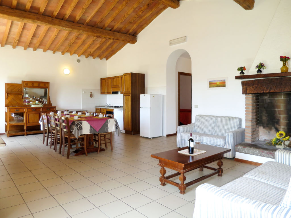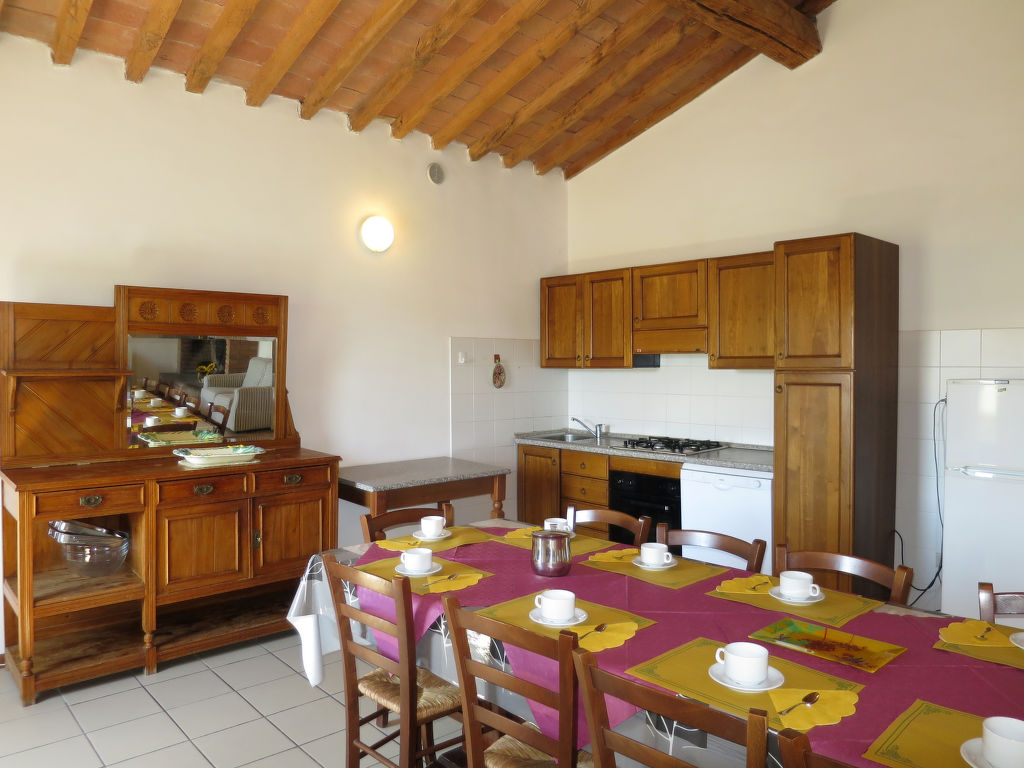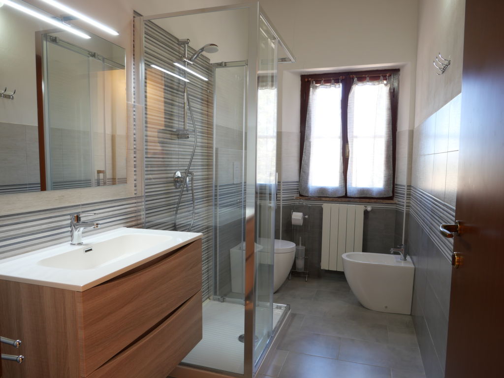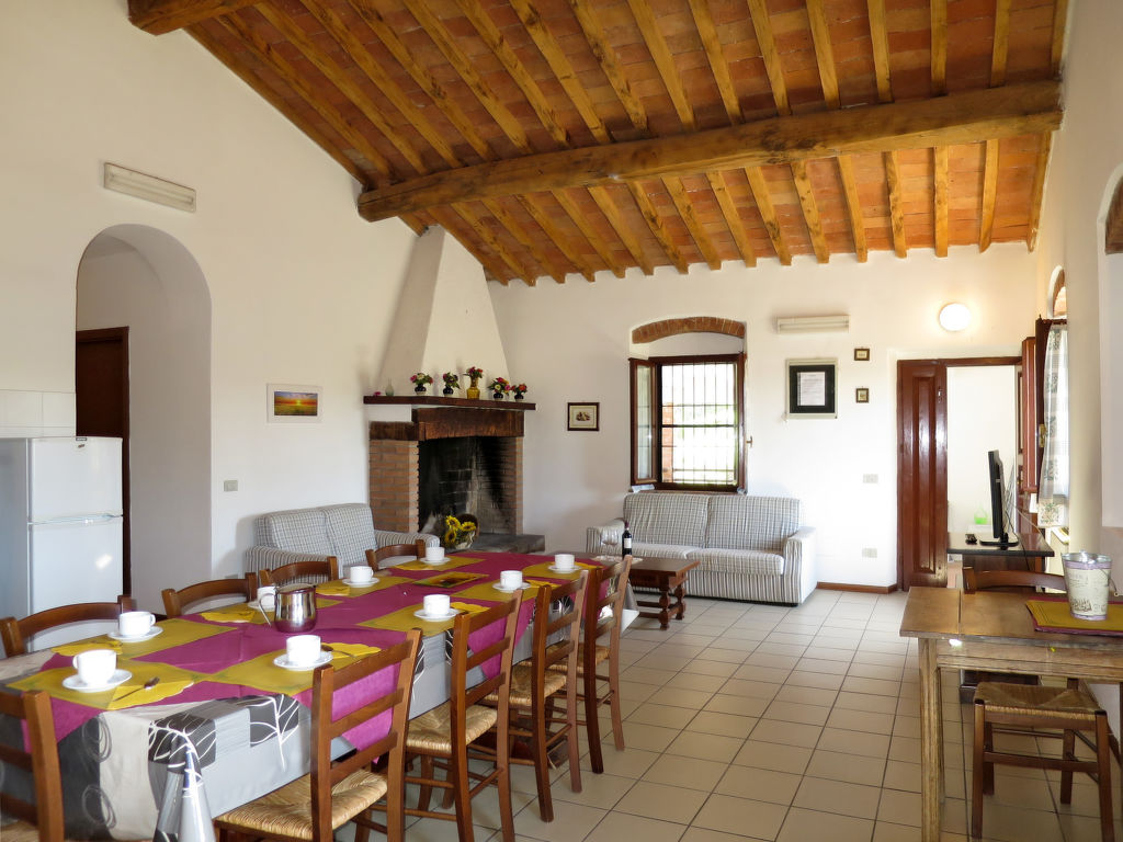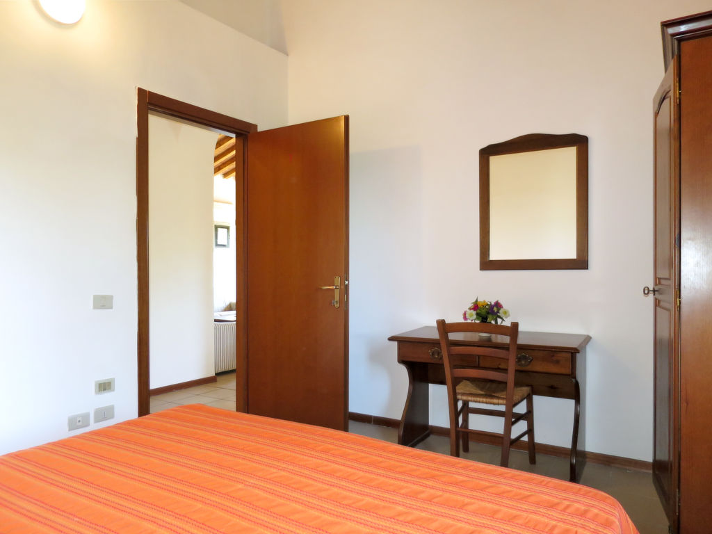 "Il Casale", 7-Zimmer-Haus 150 m2 im 1. Stock. Einfach und rustikal eingerichtet: Wohn-/Esszimmer mit Esstisch und TV. Ausgang zum Gartensitzplatz. 6 Zimmer, jedes Zimmer mit 1 franz. Bett (160 cm). Offene Küche (4 Kochplatten, Backofen, Geschirrspüler, Tiefkühler). 3 Duschen/Bidet/WC. G-Heizung. Terrasse, Gartensitzplatz überdacht. Terrassenmöbel, Gartengrill, Liegestühle (2), Loggia. Panoramasicht. Zur Verfügung: Babybett. Bitte beachten: Nichtraucher-Unterkunft. Maximal 2 Haustiere/Hunde erlaubt. Eigener Eingang.