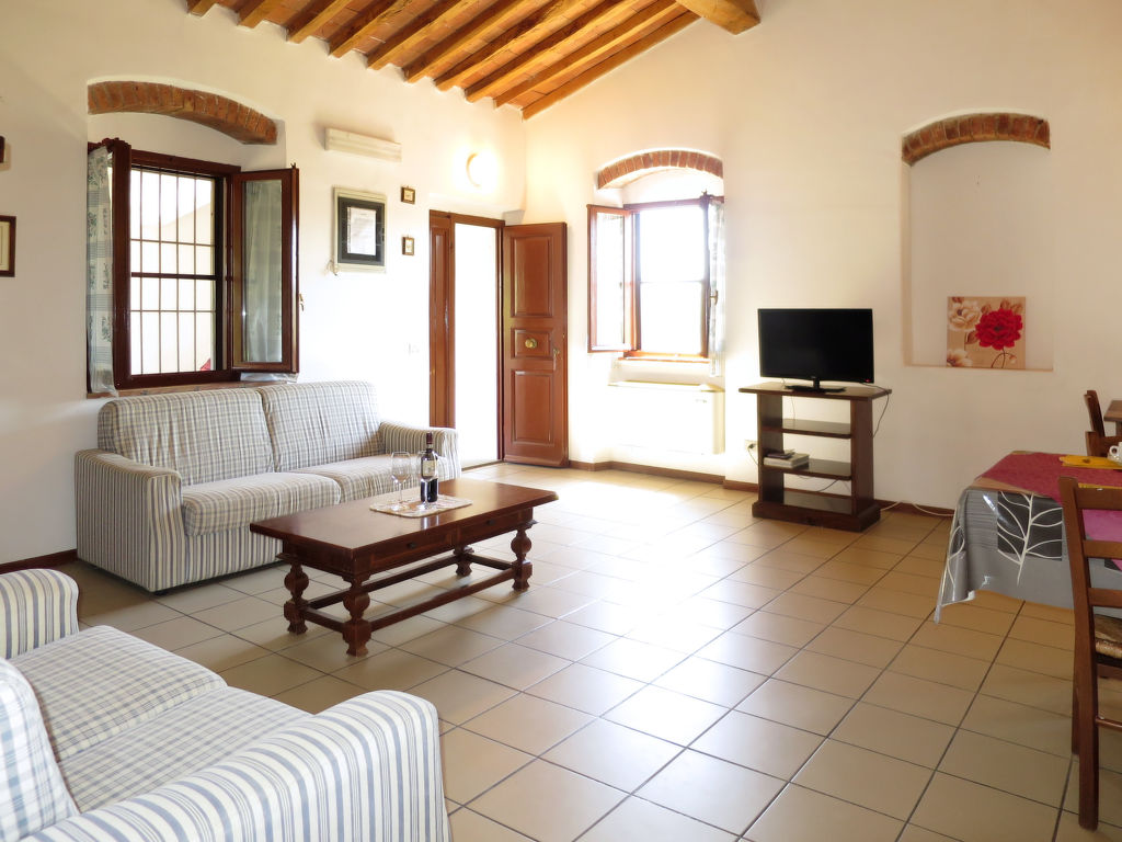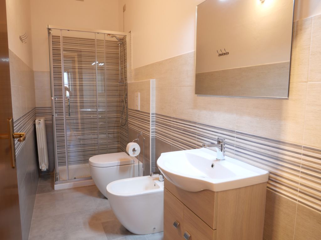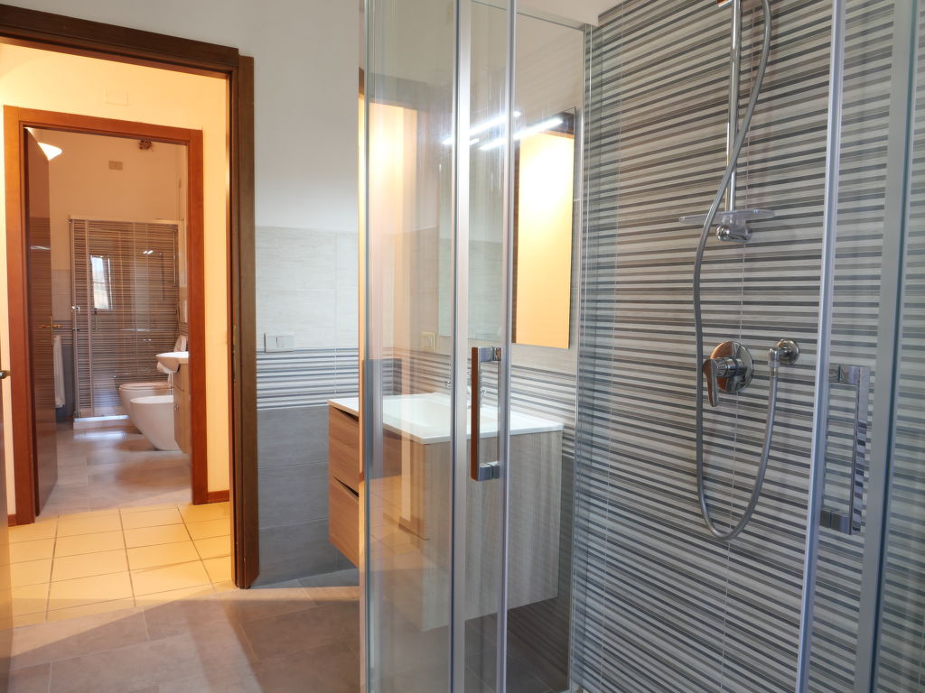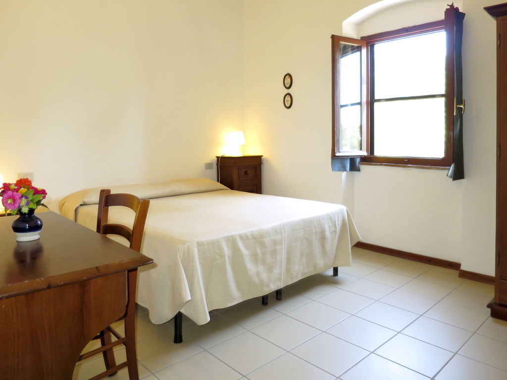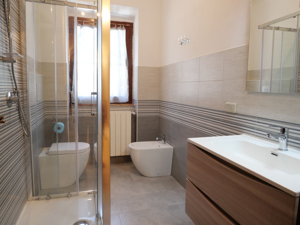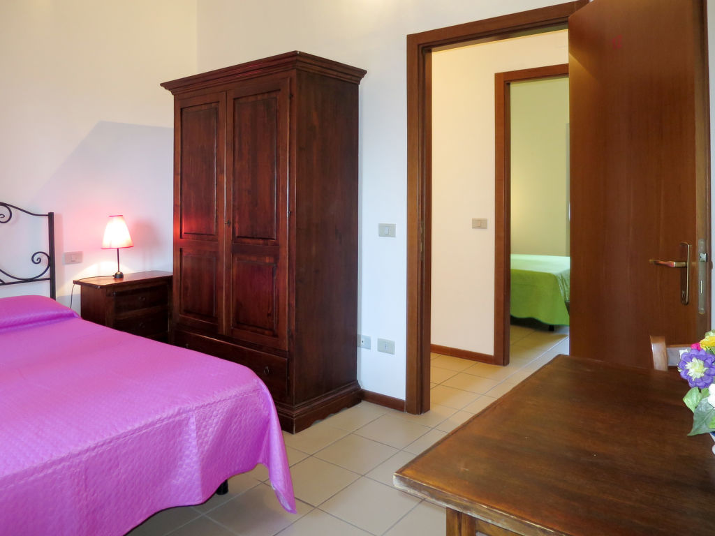 "Il Casale", 7-Zimmer-Haus 150 m2 im 1. Stock. Einfach und rustikal eingerichtet: Wohn-/Esszimmer mit Esstisch und TV. Ausgang zum Gartensitzplatz. 6 Zimmer, jedes Zimmer mit 1 franz. Bett (160 cm). Offene Küche (4 Kochplatten, Backofen, Geschirrspüler, Tiefkühler). 3 Duschen/Bidet/WC. G-Heizung. Terrasse, Gartensitzplatz überdacht. Terrassenmöbel, Gartengrill, Liegestühle (2), Loggia. Panoramasicht. Zur Verfügung: Babybett. Bitte beachten: Nichtraucher-Unterkunft. Maximal 2 Haustiere/Hunde erlaubt. Eigener Eingang.