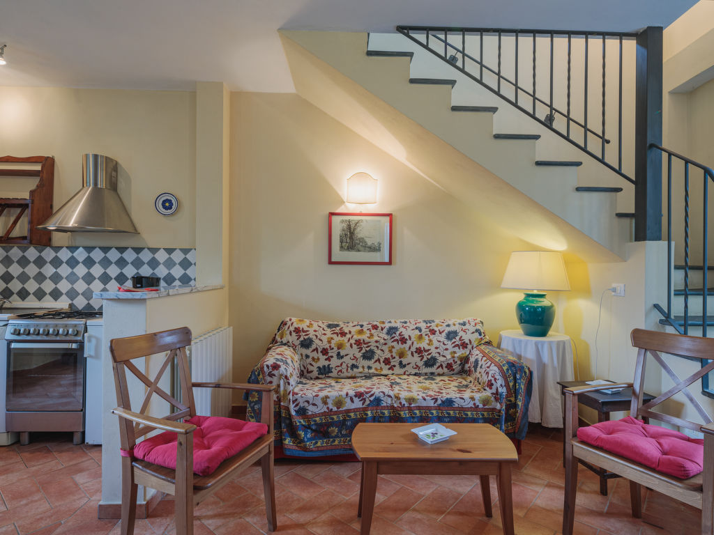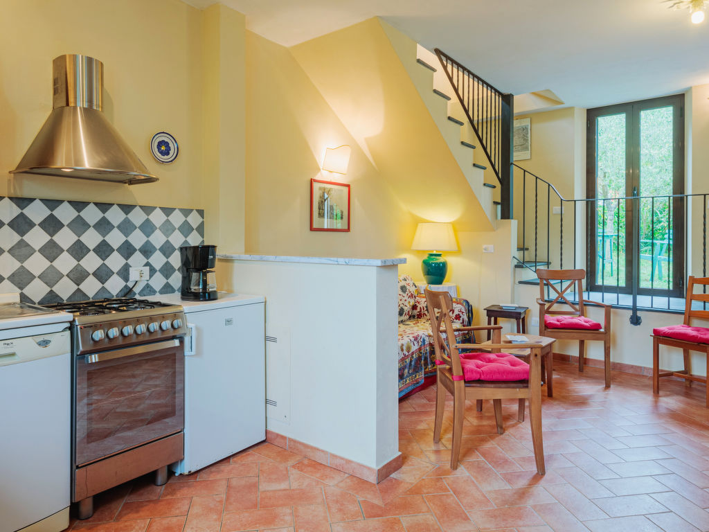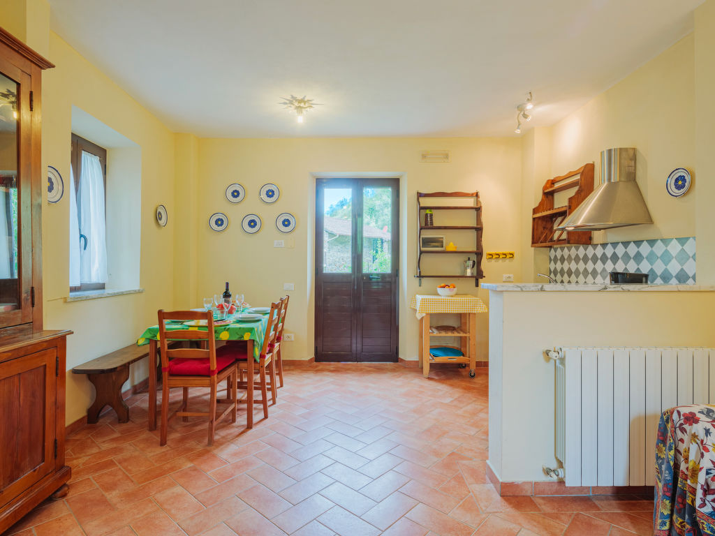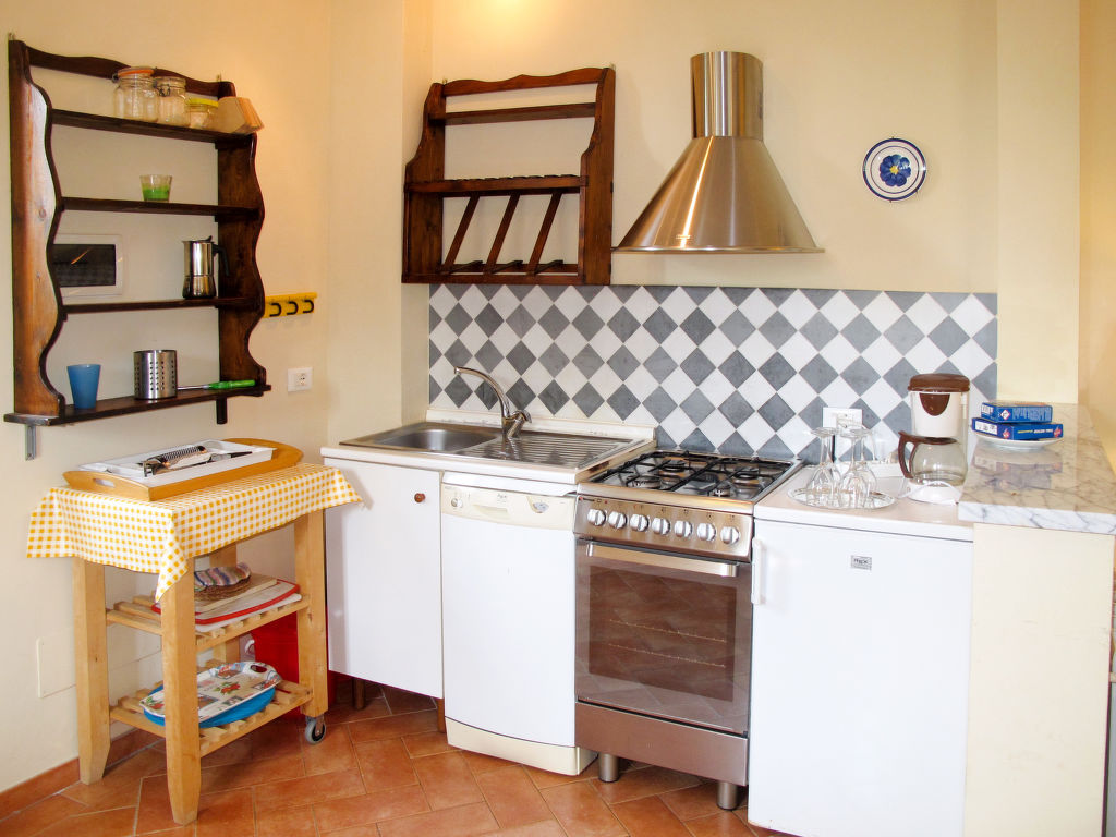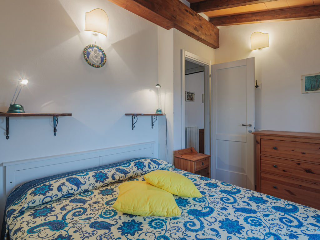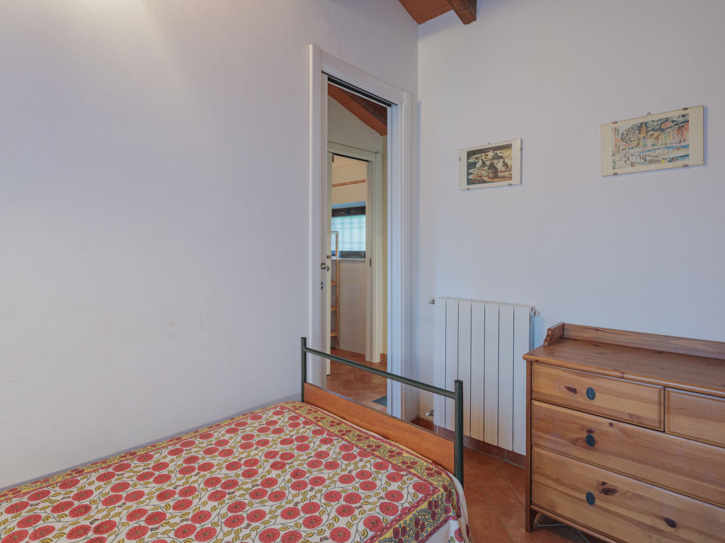 "San Rocco", 3-Zimmer-Haus 50 m2 auf 2 Stockwerken. Zweckmässig und rustikal eingerichtet: Wohnküche (Backofen, Geschirrspüler, 4 Flammen, Toaster, elektrische Kaffeemaschine) mit Esstisch, Sat-TV. Ausgang zum Garten. Obergeschoss: 1 Zimmer mit 1 Doppelbett. 1 kleines Zimmer mit 2 Betten (80 cm). Dusche/WC. G-Heizung. Gartensitzplatz, Garten. Gartengrill (mobil), Liegestühle (2), Abstellkammer. Schöne Sicht auf die Landschaft und das Meer. Zur Verfügung: Waschmaschine, Bügeleisen, Fliegengitter, Babybett. Internet (Wireless LAN, extra). Parkplatz. Bitte beachten: Nichtraucher-Unterkunft.