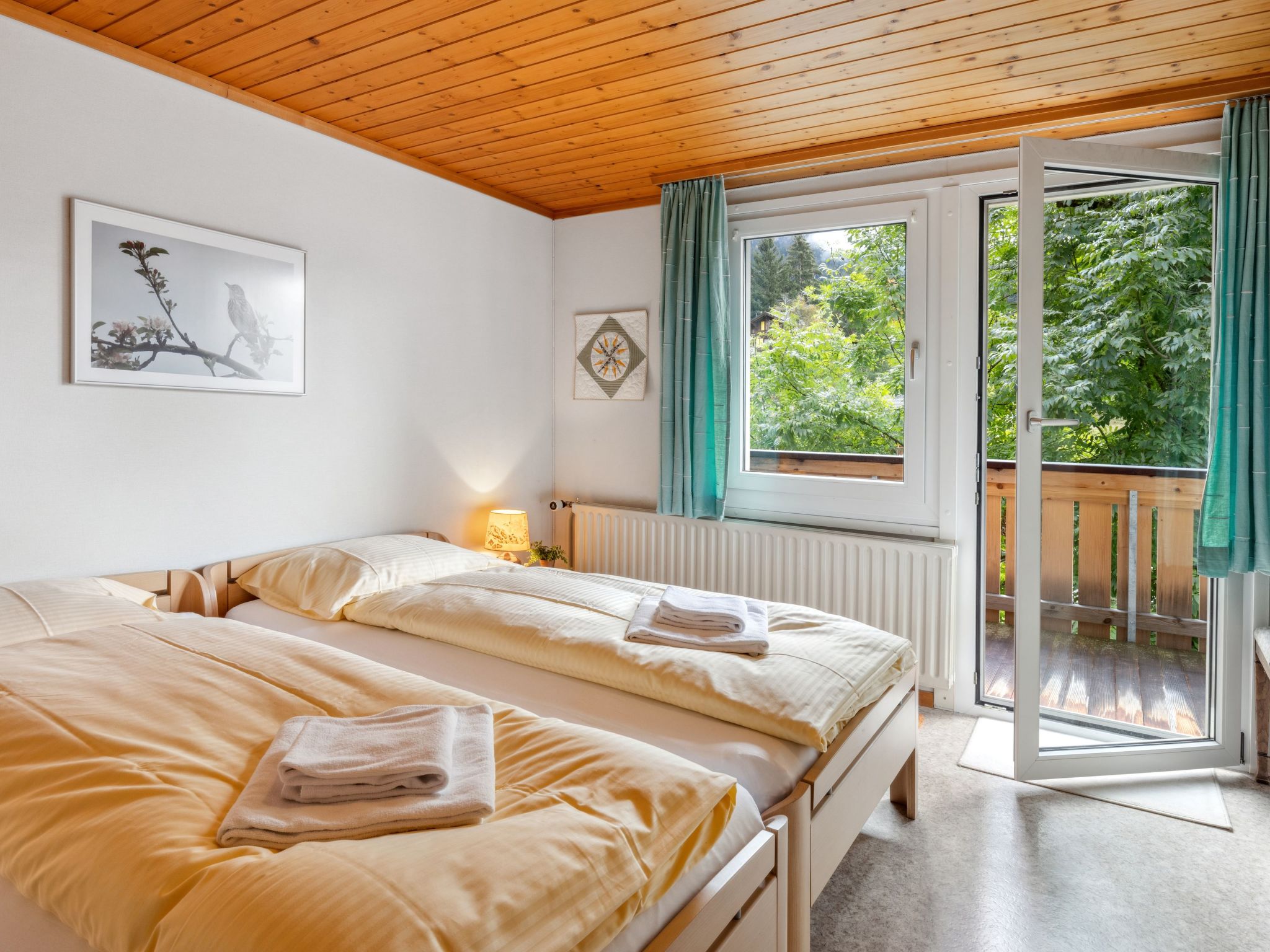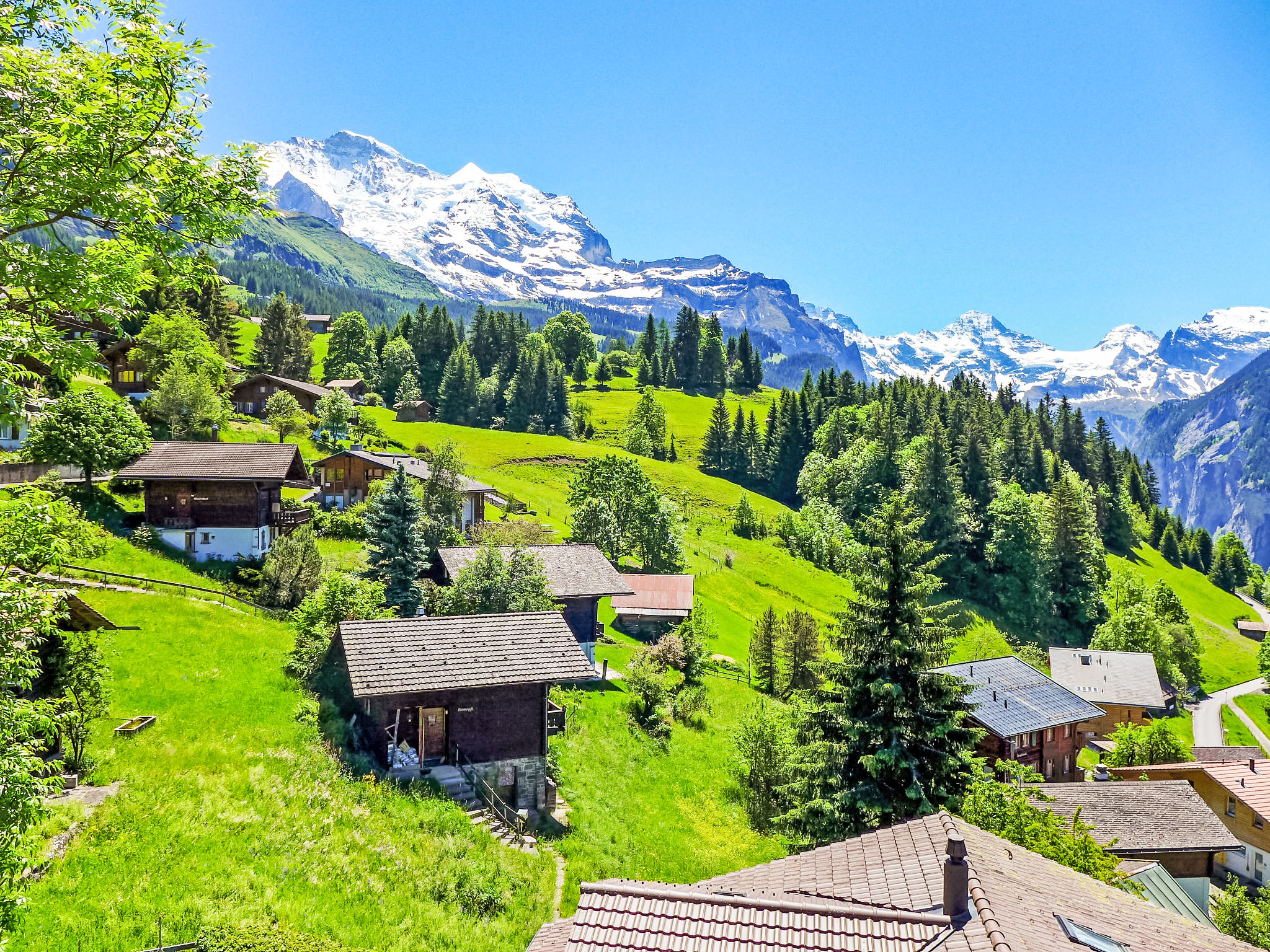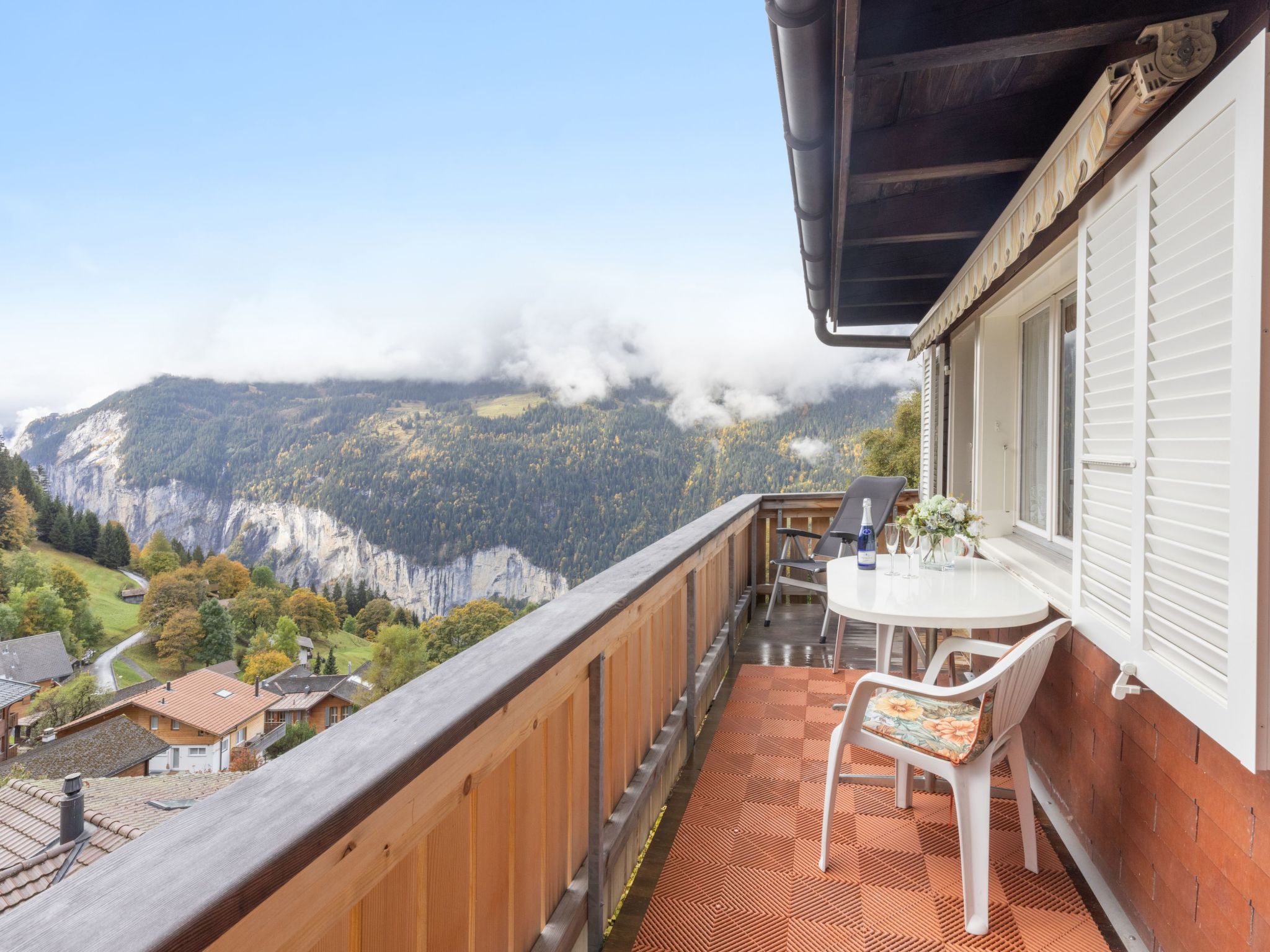 "Apt. K", 3-Zimmer-Wohnung 67 m2 im 1. Stock. Komfortabel und gemütlich eingerichtet: Wohnzimmer mit Kabel-TV. Ausgang zum Balkon. 1 Zimmer mit 1 Doppelbett (2 x 90 cm, Länge 200 cm). 1 Zimmer mit 2 Betten (90 cm, Länge 200 cm). Küche (Backofen, 4 Glaskeramikherd Platten, Toaster, Wasserkocher, elektrische Kaffeemaschine, Kapseln für die Kaffeemaschine (Nespresso) extra, Racletteofen, Fondue Set (Käse)) mit Esstisch. Bad/WC. Balkon, Südlage. Balkonmöbel. Herrliche Panoramasicht auf die Berge und Jungfrau. Zur Verfügung: Babybett, Haartrockner. Internet (Wireless LAN, gratis). Bitte beachten: geeignet für Familien. Nichtraucher-Unterkunft.