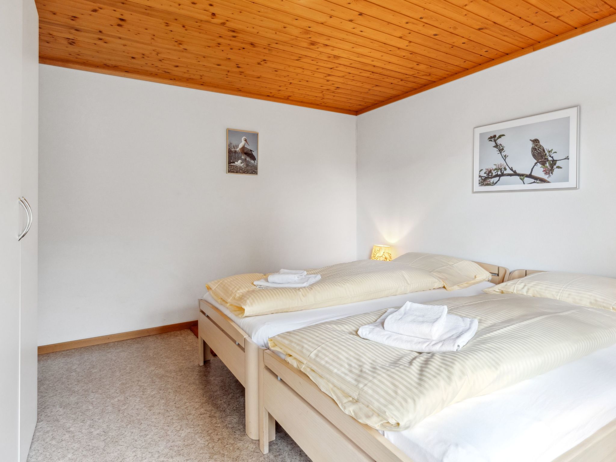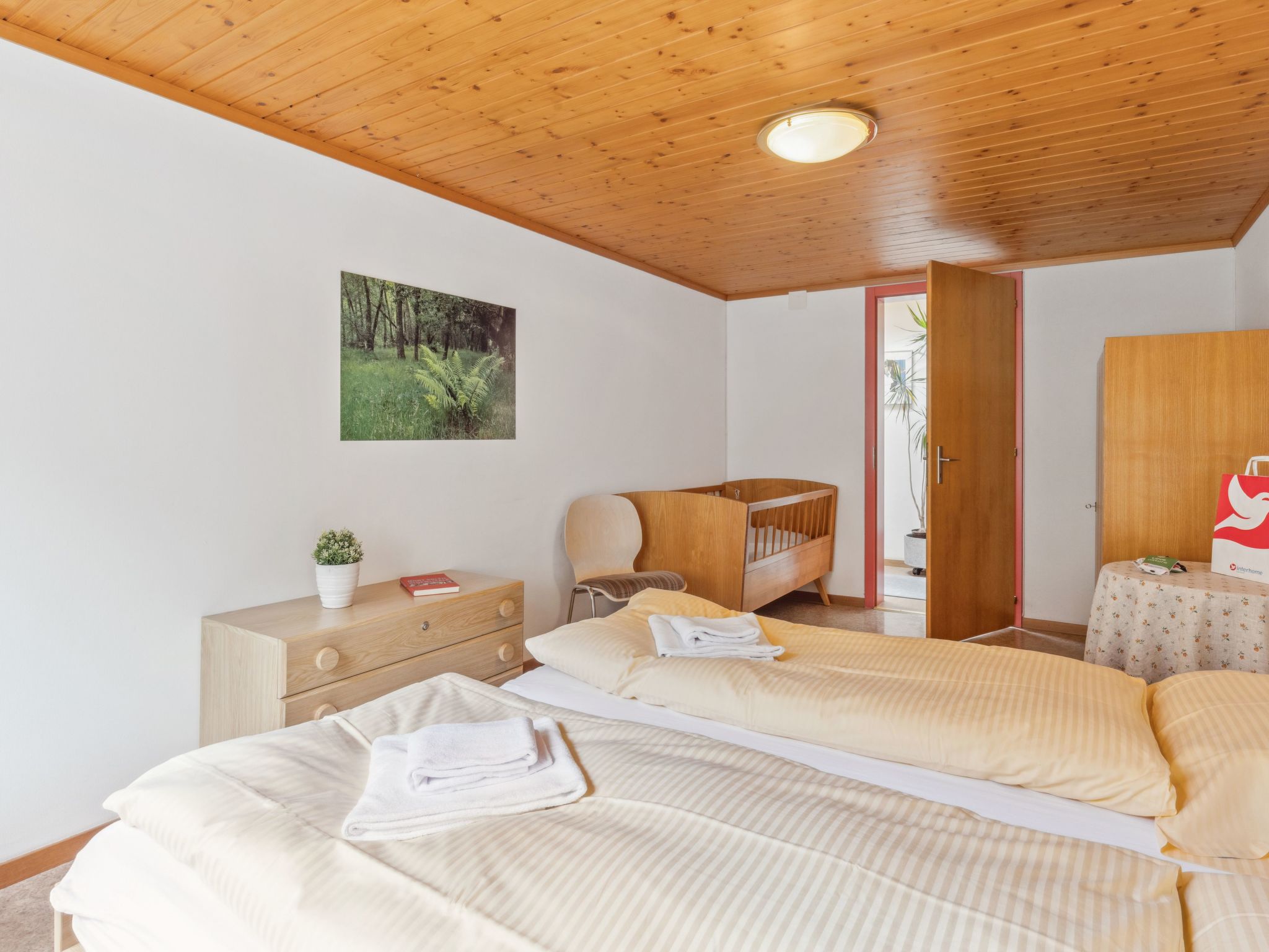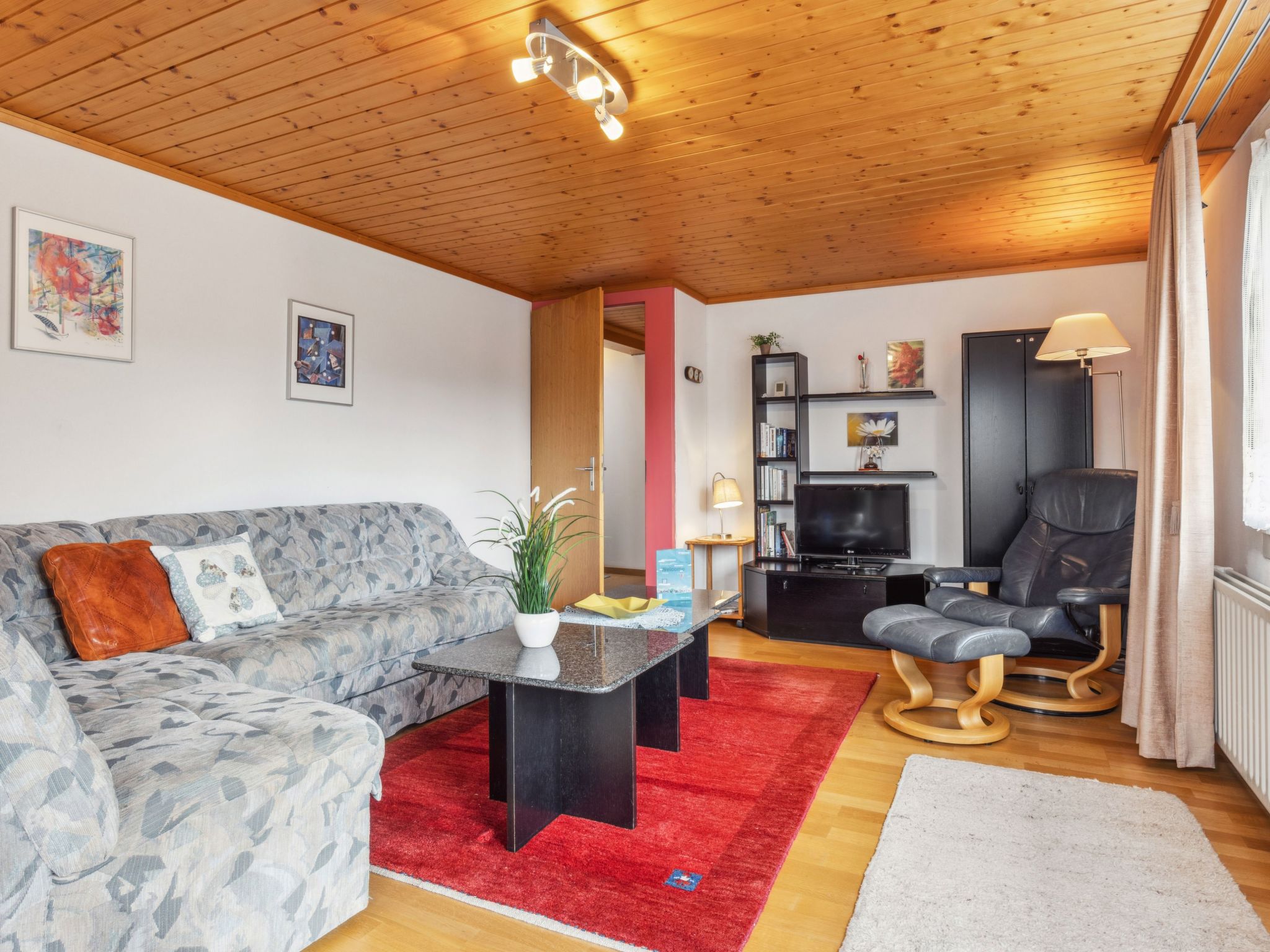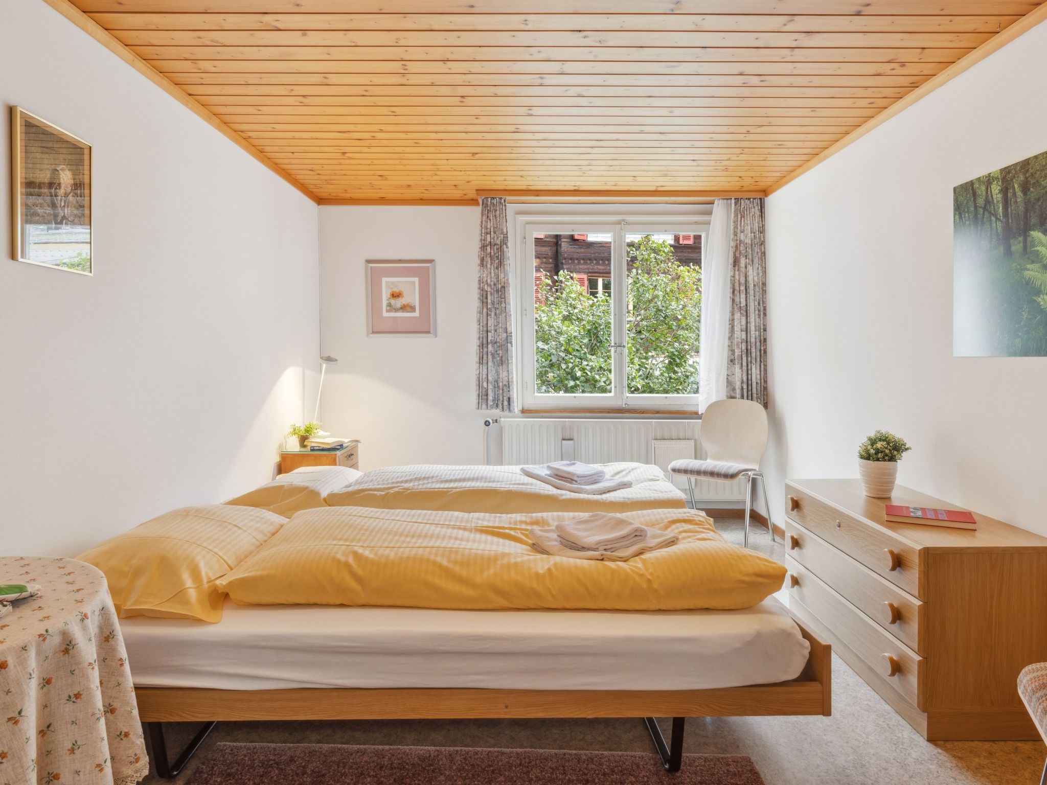 "Apt. K", 3-Zimmer-Wohnung 67 m2 im 1. Stock. Komfortabel und gemütlich eingerichtet: Wohnzimmer mit Kabel-TV. Ausgang zum Balkon. 1 Zimmer mit 1 Doppelbett (2 x 90 cm, Länge 200 cm). 1 Zimmer mit 2 Betten (90 cm, Länge 200 cm). Küche (Backofen, 4 Glaskeramikherd Platten, Toaster, Wasserkocher, elektrische Kaffeemaschine, Kapseln für die Kaffeemaschine (Nespresso) extra, Racletteofen, Fondue Set (Käse)) mit Esstisch. Bad/WC. Balkon, Südlage. Balkonmöbel. Herrliche Panoramasicht auf die Berge und Jungfrau. Zur Verfügung: Babybett, Haartrockner. Internet (Wireless LAN, gratis). Bitte beachten: geeignet für Familien. Nichtraucher-Unterkunft.