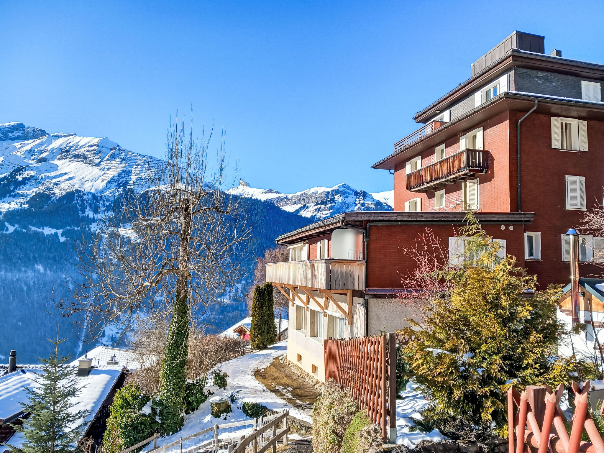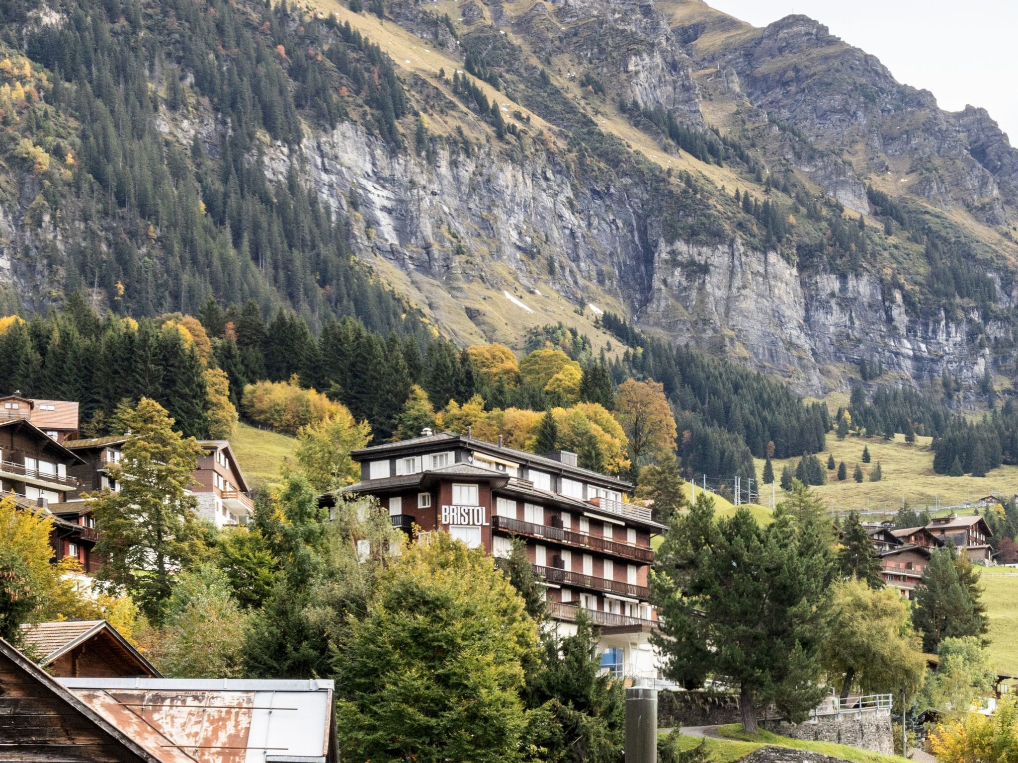 Appartementhaus "Bristol". 600 m vom Zentrum von Wengen, ruhige Lage am Hang. Im Hause: Fahrstuhl, Zentralheizung. Einkaufsservice vor Anreise möglich. 50 m Fussweg bis zum Haus. Einkaufsgeschäft, Supermarkt 600 m, Restaurant 300 m, Bar, Bäckerei 600 m, Zentrum zu Fuss in 7 Minuten erreichbar, Bahnstation "Wengen" 600 m, Freibad 700 m. Luftseilbahn, Skisportanlagen 600 m, Kinderspielplatz 300 m. Bitte beachten: autofreie Ferienanlage. Die Anreise erfolgt mit der Bergbahn. In diesem Haus sind weitere Ferienwohnungen mietbar. Anreise ist nur mit dem Zug ab Lauterbrunnen möglich – 14 Min. Fahrzeit.