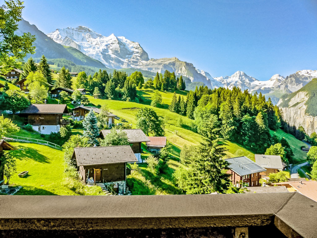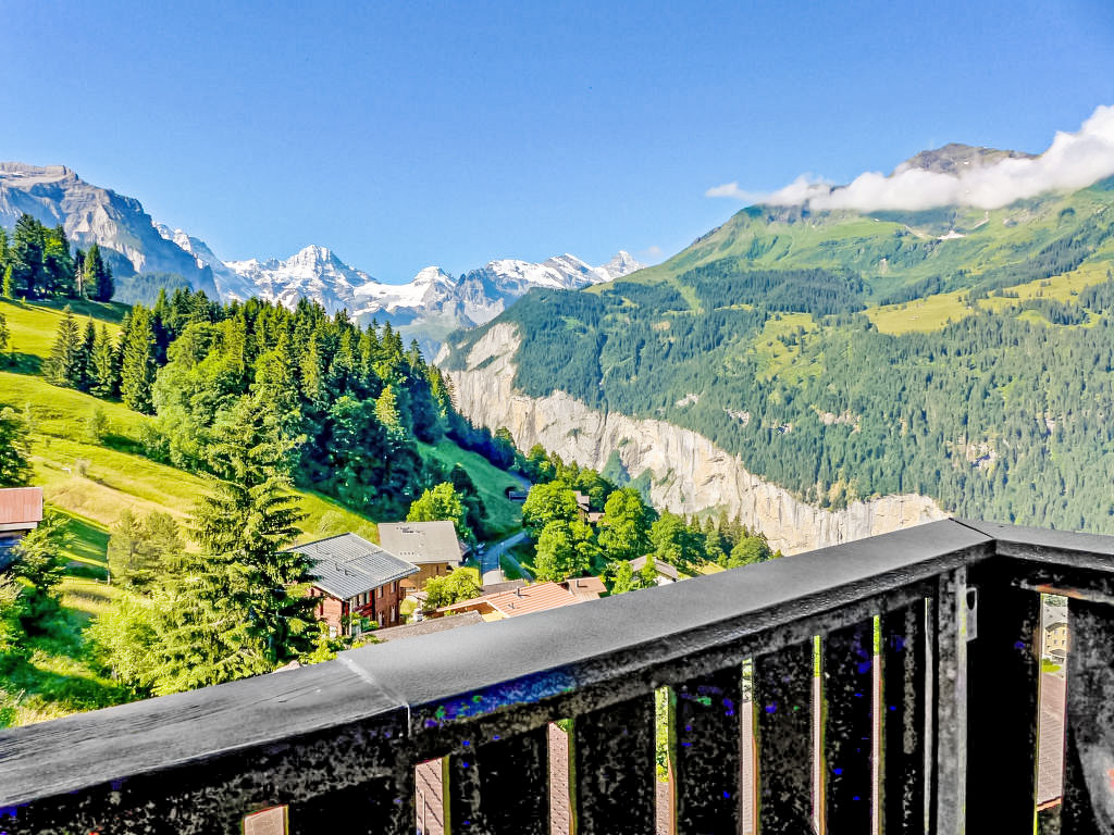 "Apt. K", 3-Zimmer-Wohnung 67 m2 im 1. Stock. Komfortabel und gemütlich eingerichtet: Wohnzimmer mit Kabel-TV. Ausgang zum Balkon. 1 Zimmer mit 1 Doppelbett (2 x 90 cm, Länge 200 cm). 1 Zimmer mit 2 Betten (90 cm, Länge 200 cm). Küche (Backofen, 4 Glaskeramikherd Platten, Toaster, Wasserkocher, elektrische Kaffeemaschine, Kapseln für die Kaffeemaschine (Nespresso) extra, Racletteofen, Fondue Set (Käse)) mit Esstisch. Bad/WC. Balkon, Südlage. Balkonmöbel. Herrliche Panoramasicht auf die Berge und Jungfrau. Zur Verfügung: Babybett, Haartrockner. Internet (Wireless LAN, gratis). Bitte beachten: geeignet für Familien. Nichtraucher-Unterkunft.