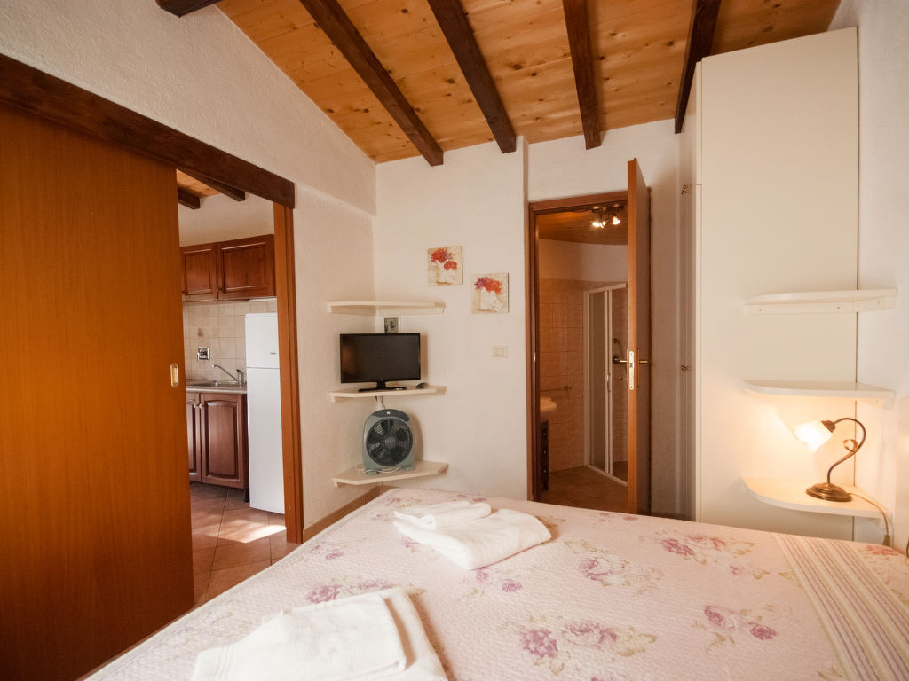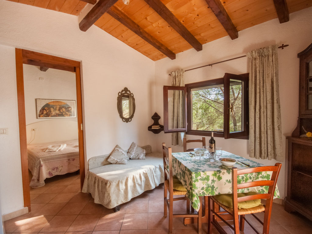 2-Zimmer-Haus 24 m2, im Erdgeschoss. Zweckmässig und gemütlich eingerichtet: Wohn-/Esszimmer mit Esstisch. Ausgang zur Terrasse. 1 Zimmer mit 1 Doppelbett und Ventilator. Kleine Kochnische (2 Flammen) mit Internationale TV-Sender. Dusche/WC. Keine Heizmöglichkeit. Terrasse überdacht. Terrassenmöbel, Liegestühle (2). Sicht auf den Garten und das Meer. Zur Verfügung: Fliegengitter, Haartrockner. Parkplatz Nr. 1. Bitte beachten: Nichtraucher-Unterkunft. Maximal 1 Haustier/Hund erlaubt. Zustellbett nach Reservierung nur für Kinder unter 10 Jahren verfügbar.