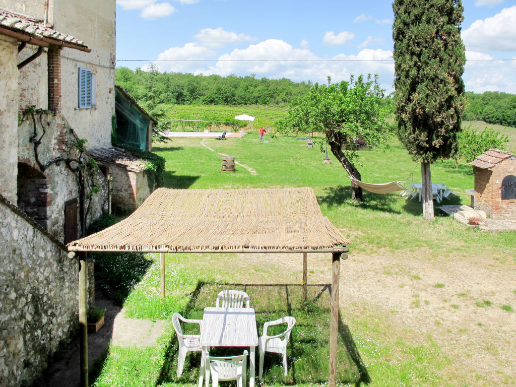 Rustikales, alleinstehendes Bauernhaus "Fattoria Petraglia", aus dem 15. Jahrhundert, umgeben von Bäumen, Wiesen und Weinbergen. 6 Wohnungen im Ferienhaus. 2.2 km vom Zentrum von Monteriggioni, 12 km vom Zentrum von Siena, 33 km vom Zentrum von San Gimignano, ruhige, sonnige Lage, 90 km vom Meer, im Grünen. Zur Mitbenutzung: naturbelassenes Grundstück 50 ha mit Pflanzen und Bäumen, Naturgarten, Wiese, Schwimmbad (10 x 5 m, saisonale Verfügbarkeit: 01.Mai.-10.Okt.). Aussendusche, Pergola, Terrasse, Gartenmöbel, Grill, Poolpflege durch den Besitzer/Gärtner. Im Hause: Waschmaschine (zur Mitbenutzung, extra). 100 m lange Zufahrt (Naturweg). Parkplatz auf dem Grundstück. Lebensmittelgeschäft 2.2 km, Supermarkt 12 km, Bushaltestelle 2.2 km, Bahnstation "Siena" 12 km. Nahe gelegene Sehenswürdigkeiten: Castellina in Chianti 20 km, Radda in Chianti 24 km, Montalcino 45 km, Volterra 50 km, Firenze 70 km. Bitte beachten: Babyausstattung (inkl.). Alle Häuser/Wohnungen sind individuell eingerichtet.