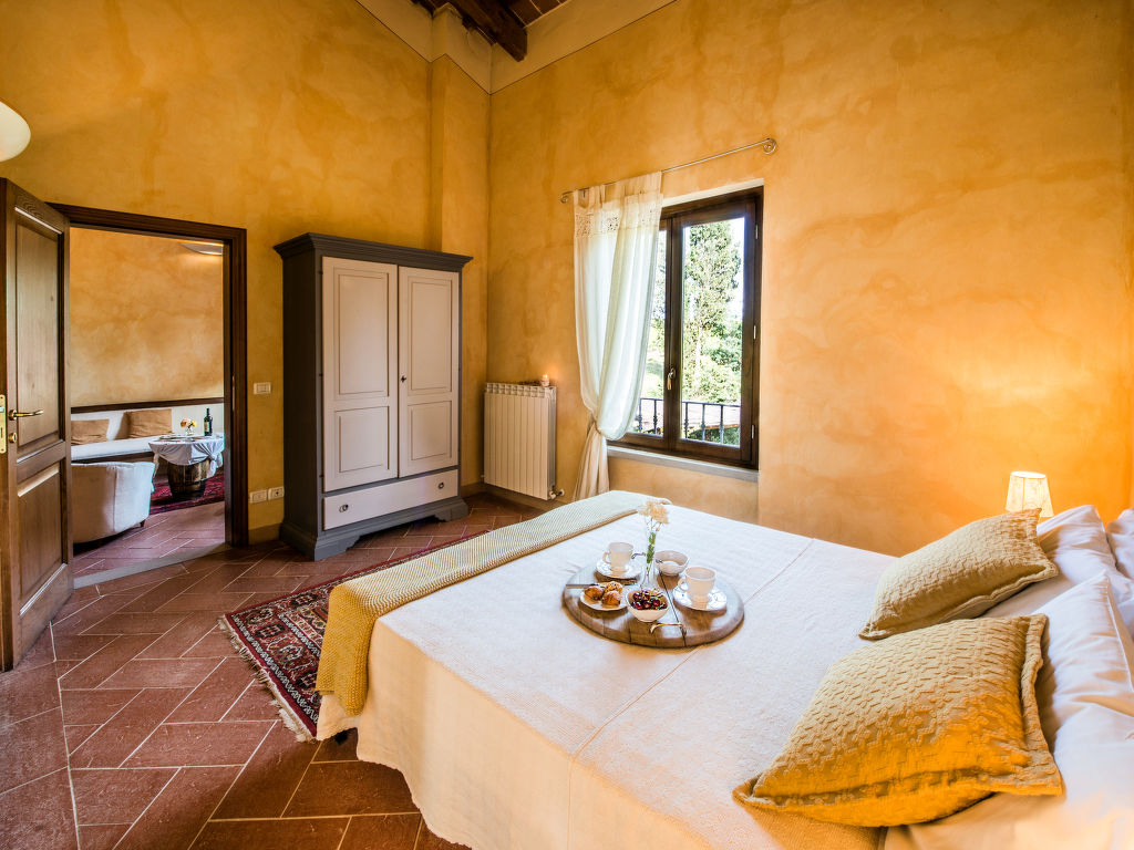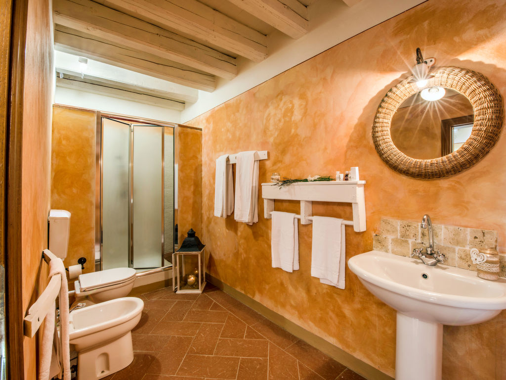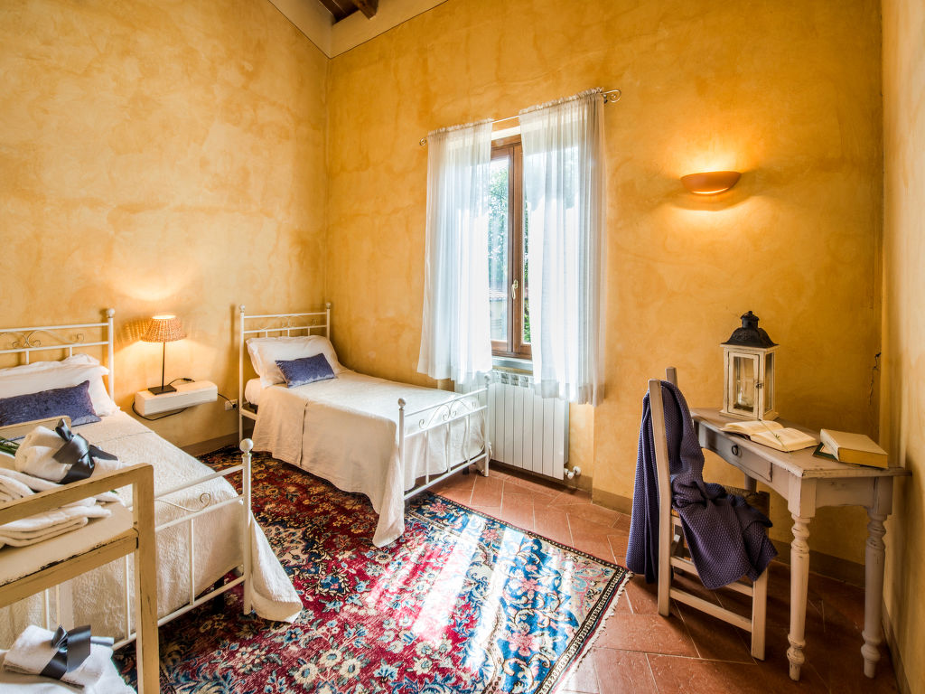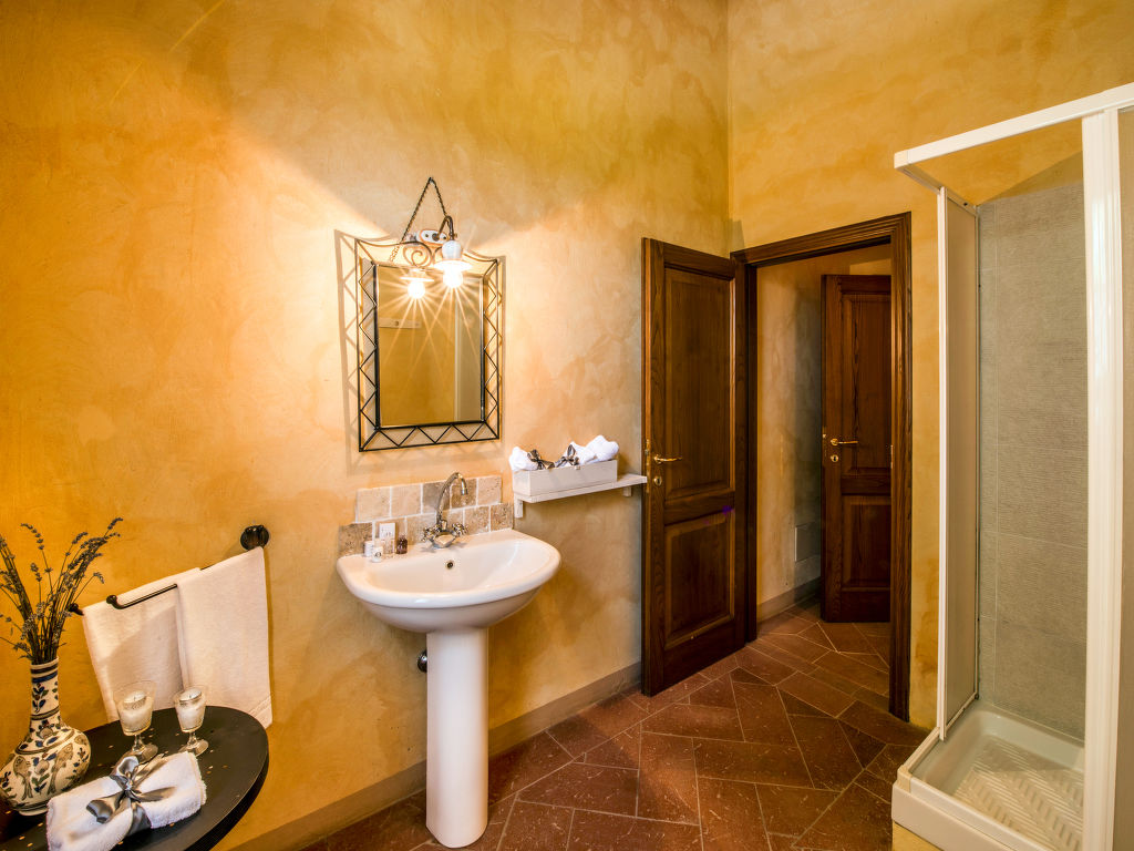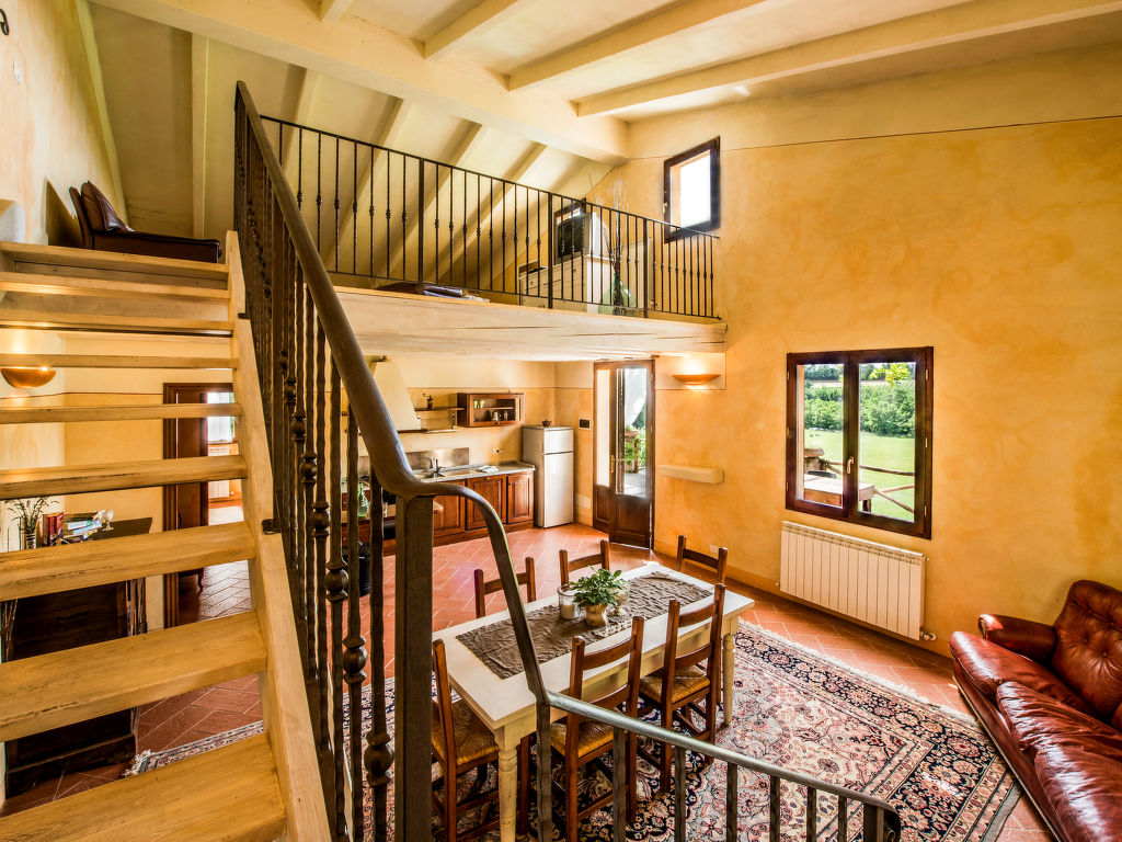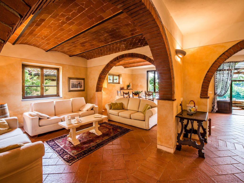 Die Immobilie besteht aus einem Hauptgebäude und einem Nebengebäude. Es gibt keine interne Verbindung. Gross auf Weingut Herrenhaus "Fattoria di Romignano", 280 m.ü.M., umgeben von Wiesen und Weinbergen. 3 Häuser in der Residenz. Mietobjekt bestehend aus Haupt- und Nebengebäude, 3.5 km vom Zentrum von San Giustino, 7 km vom Zentrum von Terranuova Bracciolini, 22 km vom Zentrum von Arezzo, ruhige Lage, im Grünen. Zur Mitbenutzung: Grundstück 30 ha, Terrassengarten (nicht eingezäunt) mit Pflanzen und Bäumen, Wiese. Zur Alleinbenutzung: Grundstück 1'000 m2, Terrassengarten (nicht eingezäunt) mit Pflanzen, Wiese, Schwimmbad nierenförmig (100 m2, 140 - 160 cm tief, 01.05.-25.09.). Volleyball, Pergola (70 m2), Terrasse (40 m2), Gartenmöbel, Grill. 600 m lange Zufahrt bis zum Grundstück (Naturweg). Parkplatz auf dem Grundstück. Supermarkt 3.5 km, Bahnstation "Montevarchi" 15 km. Ab Hof Verkauf von bäuerlichen Produkten. Bitte beachten: Der Besitzer wohnt auf dem gleichen Grundstück.