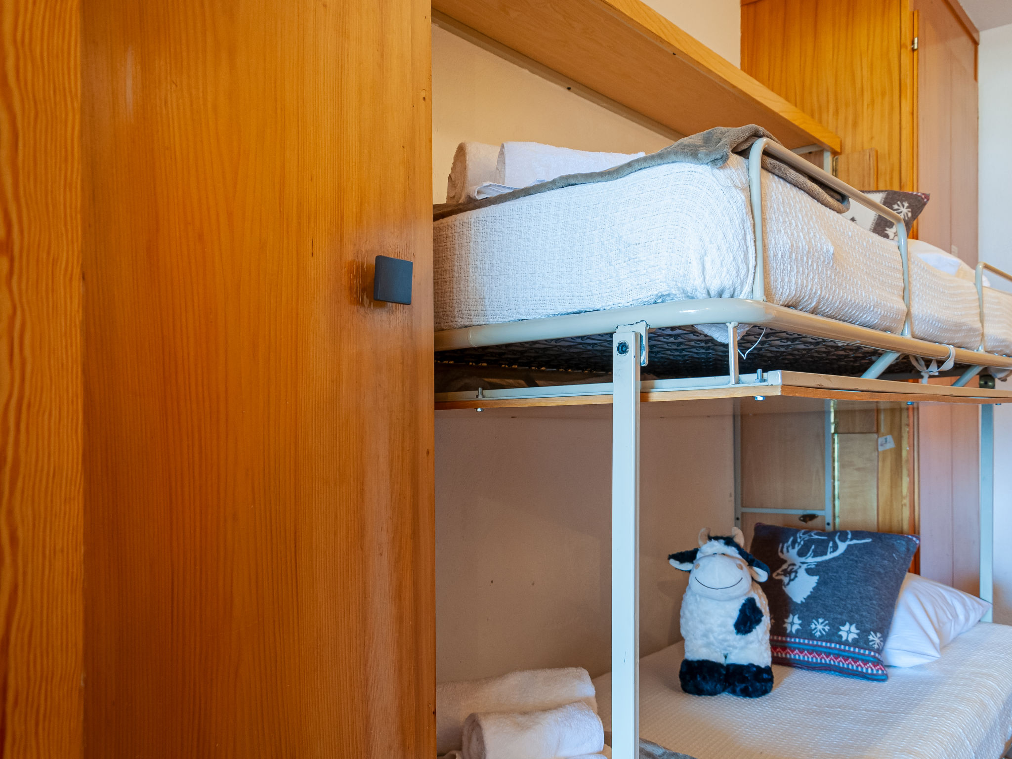 "Christiania 2 L3", 1-Zimmer-Wohnung 37 m2 im 3. Stock. Hell, teilweise renoviert im Jahre 2014, schön eingerichtet: Eingang mit 1 x 2 Etagenbetten (80 cm, Länge 190 cm). Wohn-/Esszimmer mit 1 Ausziehbett (2 Pers. 2 x 90 cm, Länge 190 cm), Kabel-TV. Küche (Backofen, Fondue Set (Käse)). Bad/WC. Balkon, Nordlage. Sicht auf die Berge und die Ortschaft. Zur Verfügung: Internet (Wireless LAN, gratis). Bitte beachten: Nichtraucher-Unterkunft, kein Parkplatz.
