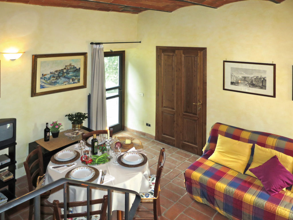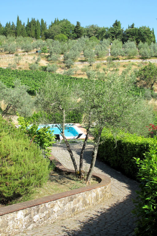 Montefioralle 3 km von Greve in Chianti: Agriturismo auf Weingut "San Rocco", auf 2 Stockwerken, aus dem 19. Jahrhundert, umgeben von Bäumen, Feldern und Weinbergen. 3 Wohnungen in der Residenz. 3 km vom Zentrum von Greve in Chianti, 1 km vom Zentrum von Montefioralle, ausserhalb des Ortes, 25 km vom Zentrum von Firenze, sonnige Lage, im Grünen. Zur Mitbenutzung: Terrassengarten, 4 ha (nicht eingezäunt) mit Pflanzen und Bäumen, Naturgarten, Schwimmbad (12 x 6 m, 120 - 180 cm tief, saisonale Verfügbarkeit: 02.Mai.-03.Okt.). Aussendusche, Grill, Poolpflege durch den Besitzer/Gärtner. Im Hause: Waschmaschine (extra). Parkplatz auf dem Grundstück. Lebensmittelgeschäft 3 km, Restaurant 3 km, Freibad 3 km. Golfplatz (18 Loch) 18 km. Ab Hof Verkauf von bäuerlichen Produkten. Besitzer wohnt in separatem Hausteil.