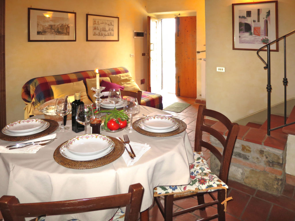 "San Rocco", 3-Zimmer-Doppelhaushälfte 65 m2 auf 2 Stockwerken. Zweckmässig und rustikal eingerichtet: Wohn-/Schlafzimmer mit 1 Diwanbett, Esstisch und Sat-TV. Ausgang zur Terrasse. Kochnische (4 Flammen, elektrische Kaffeemaschine). Obergeschoss: 1 Zimmer mit 1 franz. Bett (160 cm), Klimaanlage. 1 Zimmer mit 1 Bett (80 cm), 1 franz. Bett (160 cm), Klimaanlage. Dusche/WC. G-Heizung. Terrasse. Terrassenmöbel. Schöne Sicht auf die Landschaft. Zur Verfügung: Internet (Wireless LAN). Bitte beachten: Nichtraucher-Unterkunft. Maximal 1 Haustier/Hund erlaubt. Eigener Eingang.