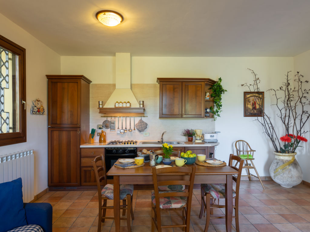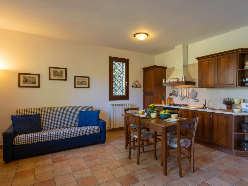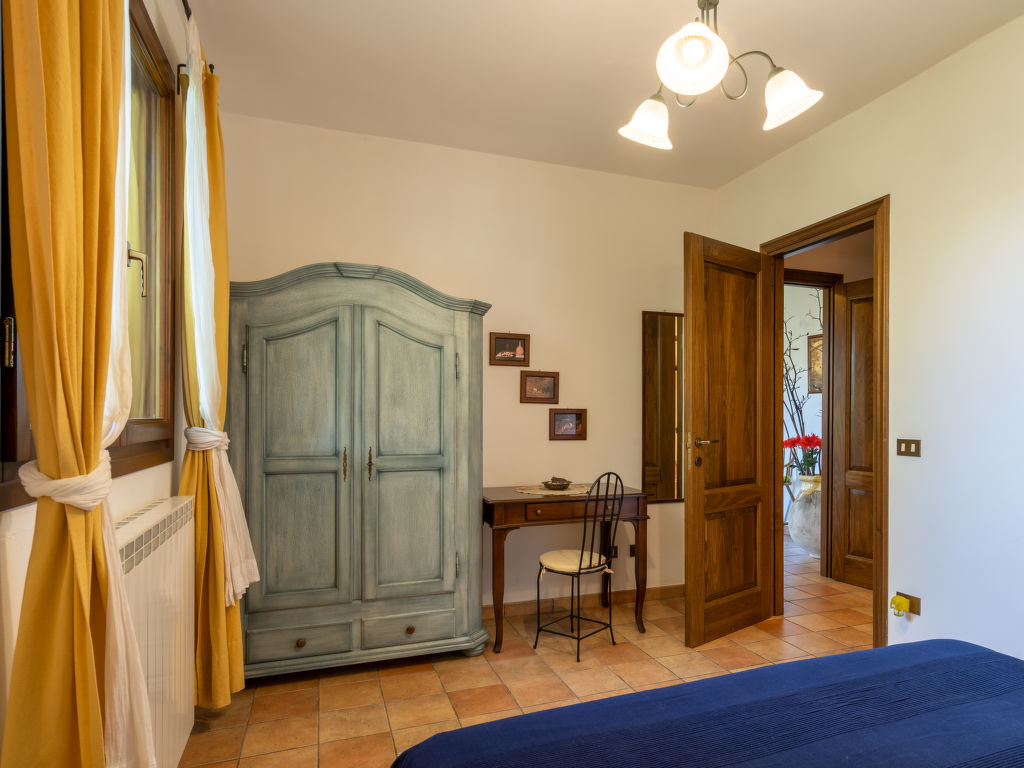 2-Zimmer-Haushälfte, Erdgeschoss, ca. 45 m². Wohn-/Schlafraum mit Doppelbettcouch, Essplatz, Küchenzeile (4 Flammen, Backofen, Kühlschrank, Kaffeemaschine, Toaster). Schlafzimmer mit franz. Bett (1,60 m breit). Dusche/WC. CITR: 008030-AGR-0004