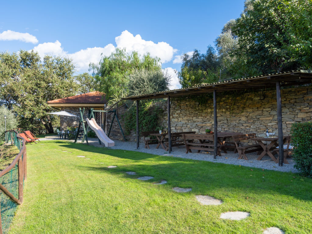Das neu erbaute Natursteinhaus CASA ZAMBO mit den beiden Haushälften DOL 301/302 steht in herrlicher Aussichtslage auf einem Hügel am oberen Ortsrand von Lecchiore. Nach Dolcedo mit Einkaufsmöglichkeit 5,5 km. Ein Fußweg führt zur kleinen Wallfahrtskirche Acqua Santa (ca. 700 m), bei der Naturbadebecken im Fluss zum erfrischenden Bad einladen. In der Umgebung gute Möglichkeiten für Mountainbiketouren. Kiesstrände von Imperia Borgo Prino 12 km. Von dem ca. 2000 m² großen, schön angelegten Areal mit Wiesen und Olivenhainen reicht der Blick über bewaldete Hügel und das Prinotal bis hin zum Meer. Private Toreinfahrt. Überdachter Grillplatz mit 3 Tischen und rustikalen Holzbänken sowie Kinderschaukel und Rutsche. Jede Haushälfte hat außerdem eine eigene möblierte Terrasse mit Liegestühlen und Sonnenschirm. Parkplätze auf dem Grundstück. Abschließbare Abstellmöglichkeit für Fahrräder. Geschmackvolle Einrichtung im rustikalen Stil. Hohe Holzbalkendecken, Wandfriese und hochwertige Massivholzküchen schaffen eine gepflegte Wohnatmosphäre. Cotto- und Fliesenböden. Internetzugang (WLAN, inklusive). Waschmaschine zur gemeinsamen Nutzung. Gas-Zentralheizung.