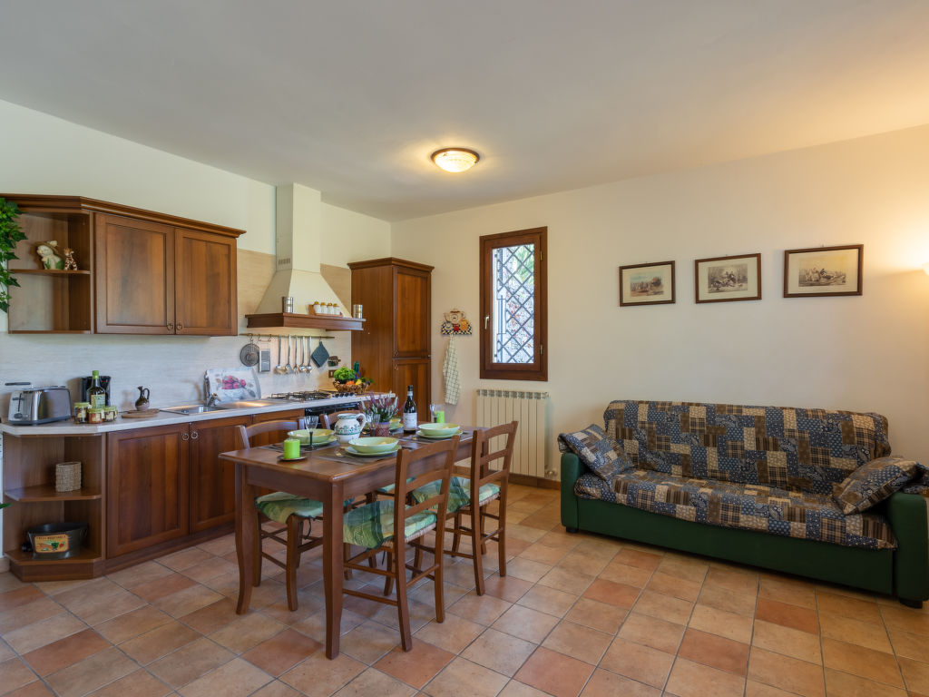 2-Zimmer-Haushälfte, Erdgeschoss, ca. 40 m². Wohn-/Schlafraum mit Doppelbettcouch, Essplatz, Küchenzeile (4 Flammen, Backofen, Kühlschrank, Kaffeemaschine, Toaster). Schlafzimmer mit franz. Bett (1,60 m breit). Dusche/WC. CITR: 008030-AGR-0004