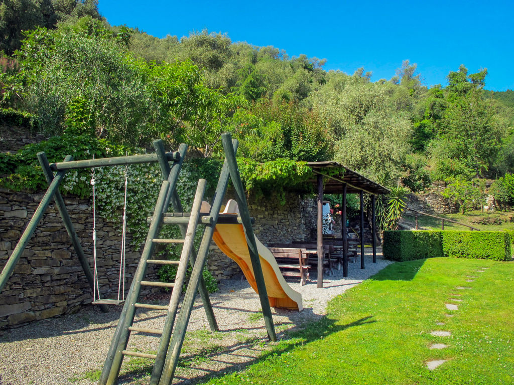 Das neu erbaute Natursteinhaus CASA ZAMBO mit den beiden Haushälften DOL 301/302 steht in herrlicher Aussichtslage auf einem Hügel am oberen Ortsrand von Lecchiore. Nach Dolcedo mit Einkaufsmöglichkeit 5,5 km. Ein Fußweg führt zur kleinen Wallfahrtskirche Acqua Santa (ca. 700 m), bei der Naturbadebecken im Fluss zum erfrischenden Bad einladen. In der Umgebung gute Möglichkeiten für Mountainbiketouren. Kiesstrände von Imperia Borgo Prino 12 km. Von dem ca. 2000 m² großen, schön angelegten Areal mit Wiesen und Olivenhainen reicht der Blick über bewaldete Hügel und das Prinotal bis hin zum Meer. Private Toreinfahrt. Überdachter Grillplatz mit 3 Tischen und rustikalen Holzbänken sowie Kinderschaukel und Rutsche. Jede Haushälfte hat außerdem eine eigene möblierte Terrasse mit Liegestühlen und Sonnenschirm. Parkplätze auf dem Grundstück. Abschließbare Abstellmöglichkeit für Fahrräder. Geschmackvolle Einrichtung im rustikalen Stil. Hohe Holzbalkendecken, Wandfriese und hochwertige Massivholzküchen schaffen eine gepflegte Wohnatmosphäre. Cotto- und Fliesenböden. Internetzugang (WLAN, inklusive). Waschmaschine zur gemeinsamen Nutzung. Gas-Zentralheizung.
