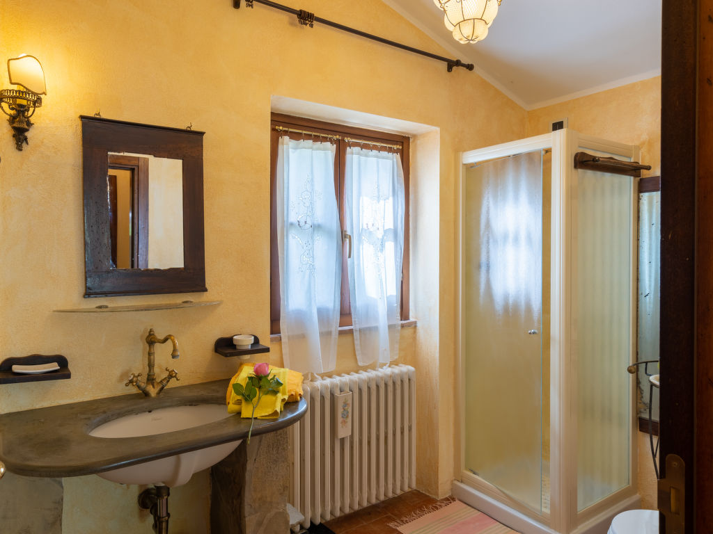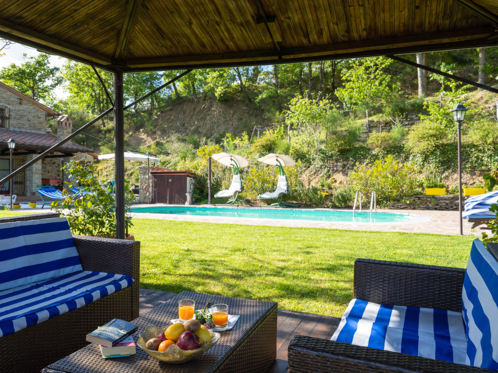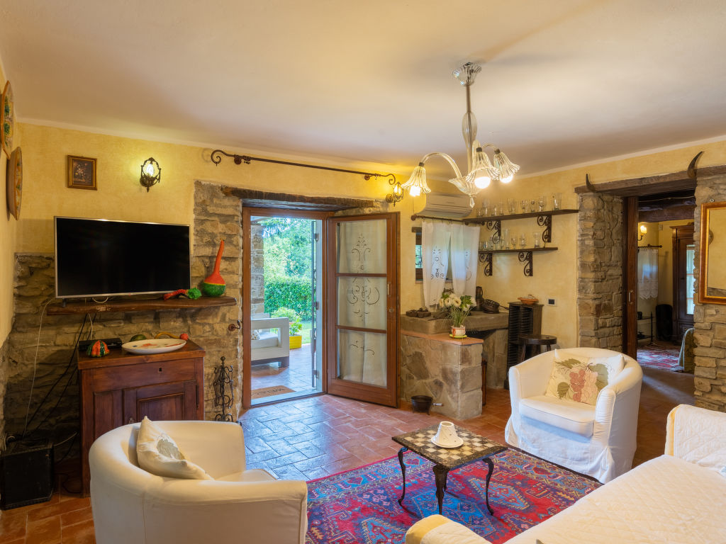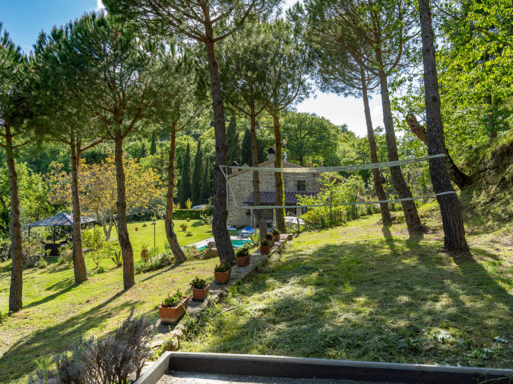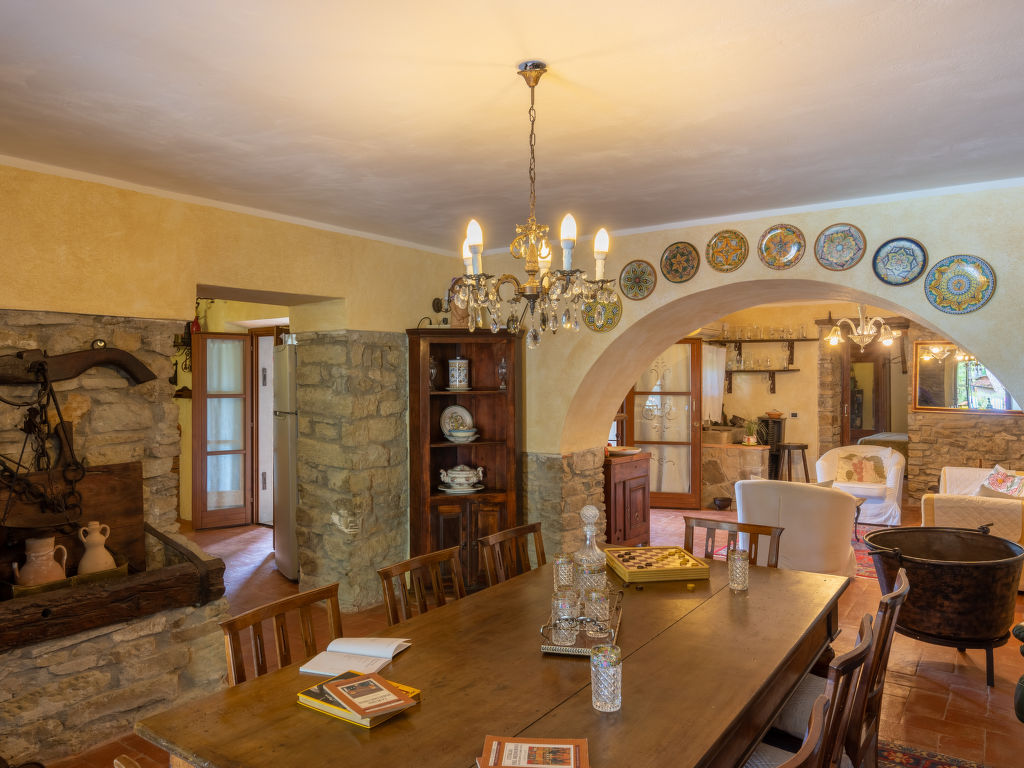 8 km von Arezzo: Rustikales, alleinstehendes Haus "Podere Il Castello", 650 m.ü.M., auf 2 Stockwerken, renoviert im Jahre 2006. 8 km vom Zentrum von Arezzo, 4.5 km vom Zentrum von Antria, alleinstehende Lage, im Grünen. Zur Alleinbenutzung: Grundstück 4 ha (eingezäunt), Terrassengarten mit Bäumen, Naturgarten, Wiese, Schwimmbad (9 x 4 m, 120 - 150 cm tief, 29.04.-30.09.). Aussendusche, Tischtennis, Basketball, Boccia, Volleyball, Laube, Grill, Kinderspielplatz. Abstellraum vorhanden. Zufahrt (800 m Naturweg). Parkplatz (für 4 Autos, überdacht) auf dem Grundstück. Lebensmittelgeschäft 4.5 km, Supermarkt 6.5 km, Bahnstation "Arezzo" 10 km.