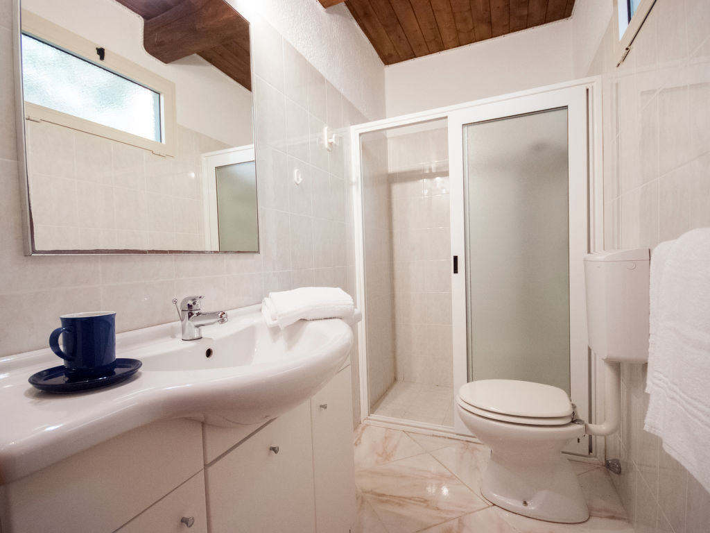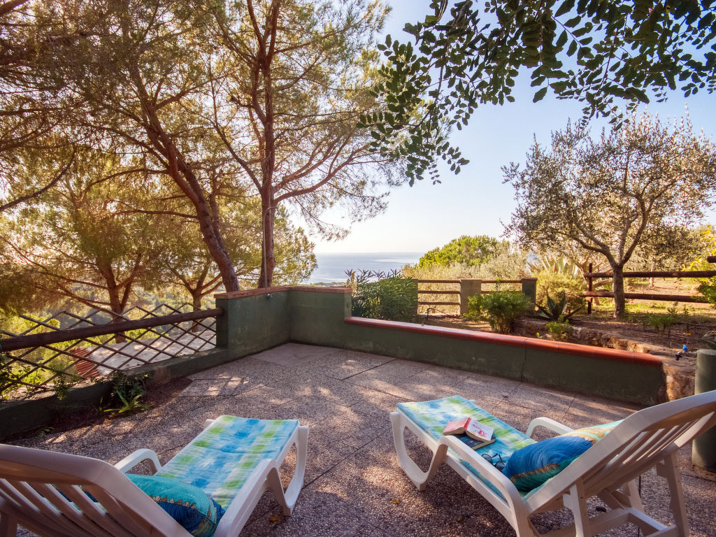 3-Zimmer-Haus 35 m2, im Erdgeschoss. Zweckmässig und gemütlich eingerichtet: Wohn-/Esszimmer mit Esstisch und Internationale TV-Sender. Ausgang zur Terrasse. 1 Doppelzimmer mit Ventilator. 1 Zimmer mit 2 Betten (80 cm). Kochnische (4 Flammen). Dusche/WC. Keine Heizmöglichkeit. Terrasse überdacht. Terrassenmöbel, Liegestühle (2). Herrliche Sicht auf den Garten und das Meer. Zur Verfügung: Fliegengitter, Babybett, Haartrockner. Parkplatz Nr. 1. Bitte beachten: Nichtraucher-Unterkunft. Maximal 1 Haustier/Hund erlaubt.