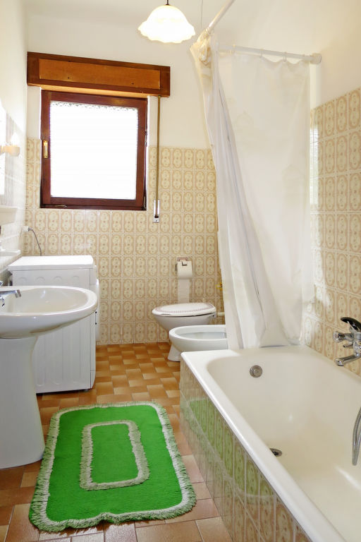 3-Zimmer-Wohnung, Erdgeschoss, ca. 80 m². Separater Zugang in Wohn-/Schlafraum mit Sitzgruppe, Einzelbett und Terrassenausgang. Küche (4 Flammen, Backofen, Kühlschrank, kleiner Gefrierschrank, Kaffeemaschine, Wasserkocher, Toaster), Essplatz. Schlafzimmer mit franz. Bett (1,60 m breit). Zweibettzimmer (Betten zusammenstellbar). Bad/WC. CIR: 013189-CNI-00013