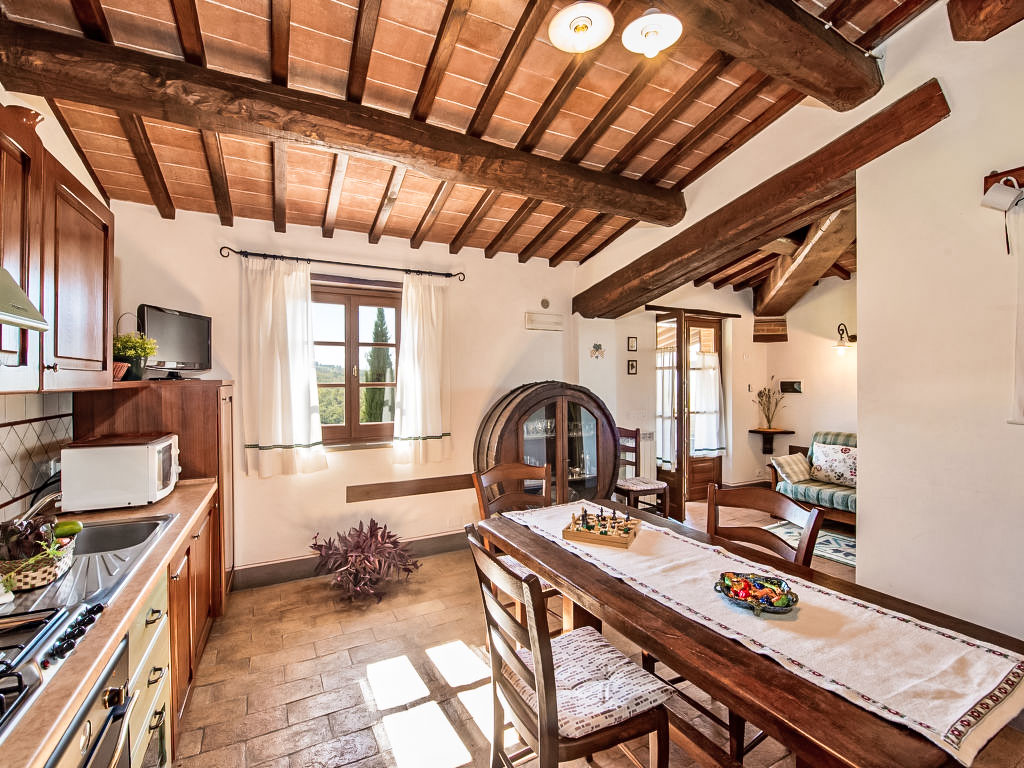 3-Zimmer-Wohnung 70 m2 im 1. Stock. Geräumig, geschmackvoll und stilvoll eingerichtet: Wohnzimmer mit 1 Doppeldiwanbett, offenem Kamin und Sat-TV (Flachbildschirm), Stereoanlage. Ausgang zur Loggia. 1 Doppelzimmer. 1 Zimmer mit 2 Betten und 1 Diwanbett. Kochnische (4 Kochplatten, Backofen, Geschirrspüler, Mikrowelle, Tiefkühler, elektrische Kaffeemaschine) mit Esstisch. 2 Duschen/Bidet/WC. G-Heizung, Klimaanlage (extra). Heizung nur verfügbar von 15.10. bis 15.04. Komfortable Einrichtung im Landhausstil. Terrasse, Gartensitzplatz überdacht. Terrassenmöbel, Sitzplatz. Panoramasicht auf das Tal und das Schwimmbad. Zur Verfügung: Waschmaschine, Kinderhochstuhl, Babybett, Haartrockner. Internet (Wireless LAN, gratis). Parkplatz (eingezäunt). Bitte beachten: eigener Eingang.