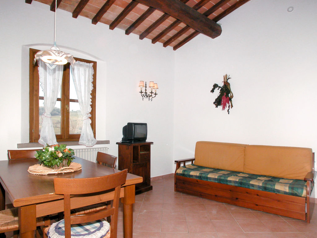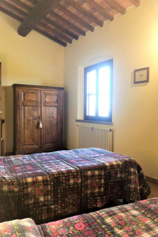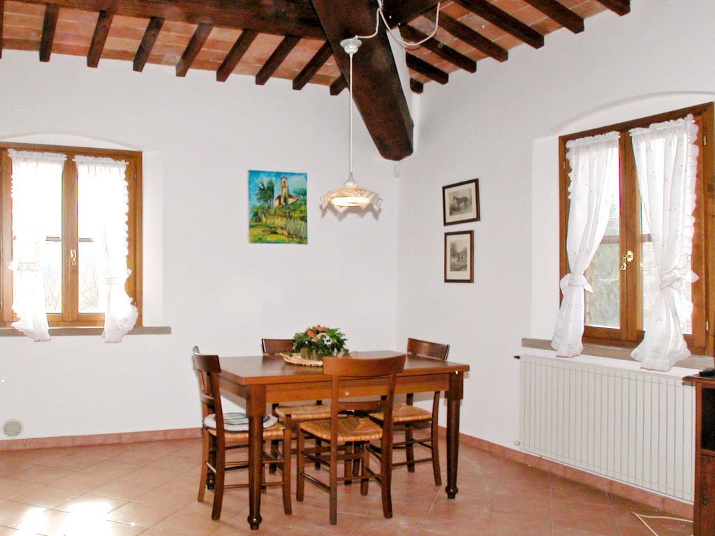 "Podere di Mezzo - Torre", 3-Zimmer-Wohnung 52 m2 im 1. Stock. Objekt geeignet für 4 Erwachsene. Hell, zweckmässig und rustikal eingerichtet: Wohn-/Esszimmer mit Esstisch und Sat-TV. Ausgang zum Garten. 1 Doppelzimmer. 1 Zimmer mit 2 Betten (80 cm). Kochnische (4 Flammen, Toaster, elektrische Kaffeemaschine). Dusche/Bidet/WC. G-Heizung. Natursteinböden. Terrassenmöbel, Gartengrill. Sehr schöne Panoramasicht auf die Landschaft. Zur Verfügung: Kinderhochstuhl, Babybett bis 2 Jahre. Internet (Wireless LAN, gratis). Parkplatz (überdacht, 1 Auto). Bitte beachten: geeignet für Familien. Nichtraucher-Unterkunft. Maximal 1 Haustier/Hund erlaubt.