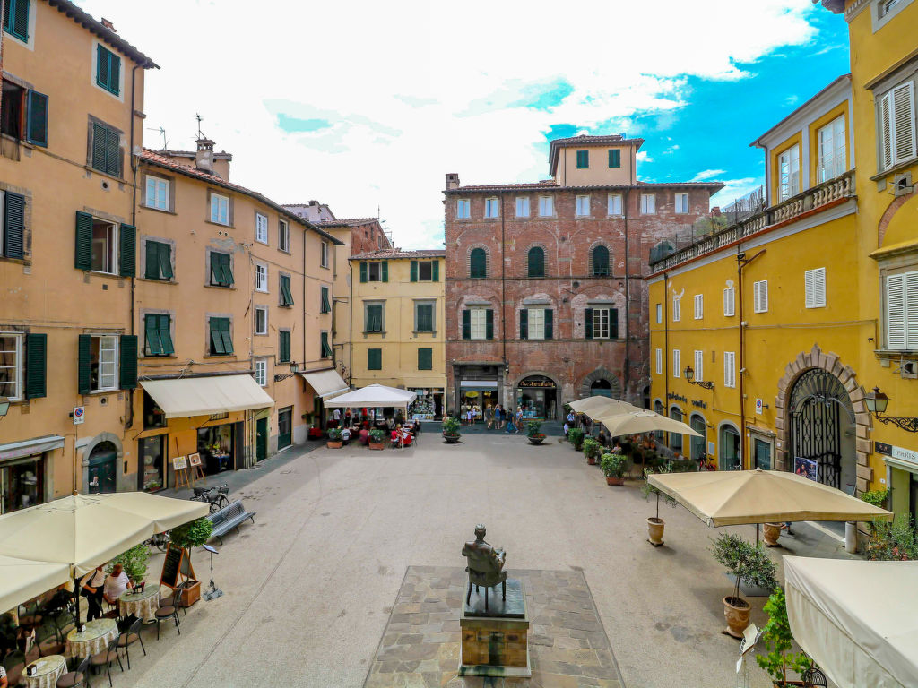 Das Haus ist auf Anfrage erhältlich für Zeremonien, kleine Hochzeiten, Versammlungen und private Partys. Der Eigentümer organisiert den Gästen das Frühstück am ersten Tag des Aufenthaltes. Gemütliches, komfortables, historisches Appartementhaus "Palazzo Cittadella", aus dem 16. Jahrhundert. Im Ortszentrum von Lucca, exzellente Lage: Absolut zentral und dennoch ruhig, im Herzen der Stadt, verkehrsberuhigte Zone, in einer Fussgängerzone. Wäschewechsel 1 mal wöchentlich (zusätzlich extra). Handtuchwechsel 1 mal wöchentlich (zusätzlich extra). Öffentliche Parkplätze 800 m extra. Lebensmittelgeschäft 50 m, Supermarkt 100 m, Restaurant, Bar, Café, Fahrradverleih 50 m, Bushaltestelle "Piazzale Verdi" 800 m, Bahnstation "Lucca centrale" 1 km, Sandstrand "Versilia" 30 km. Nahe gelegene Sehenswürdigkeiten: Pisa 25 km, Florence 80 km. Bekannte Skigebiete sind gut erreichbar: Abetone 100 km. Bitte beachten: kein Fahrstuhl vorhanden. Der Besitzer wohnt im selben Haus. Die Wohnung befindet sich in einer für den Verkehr begrenzt zugänglichen Zone (ZTL).