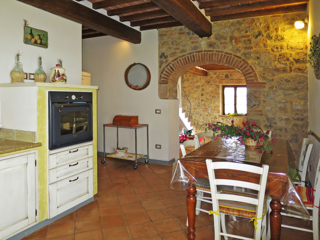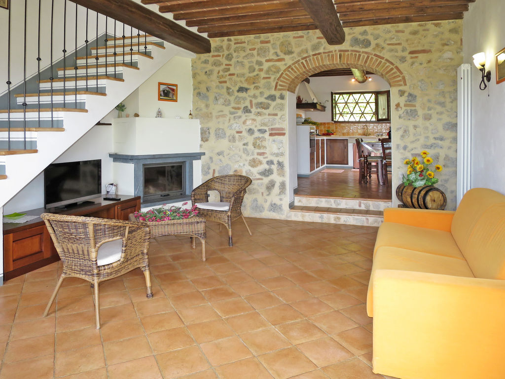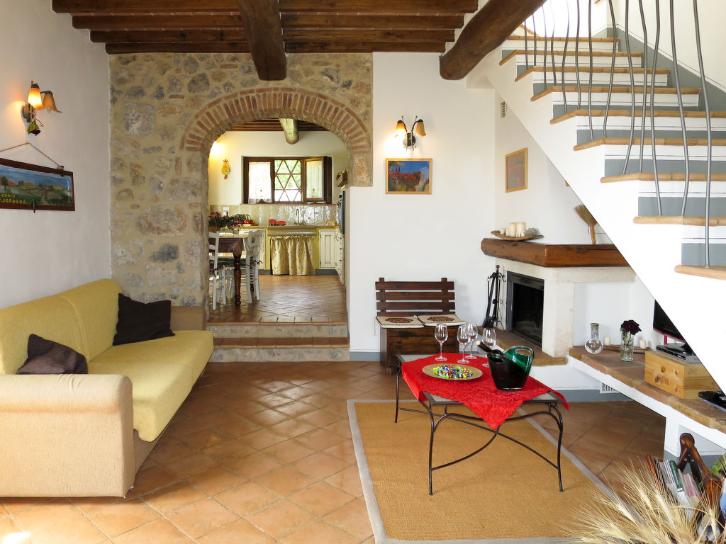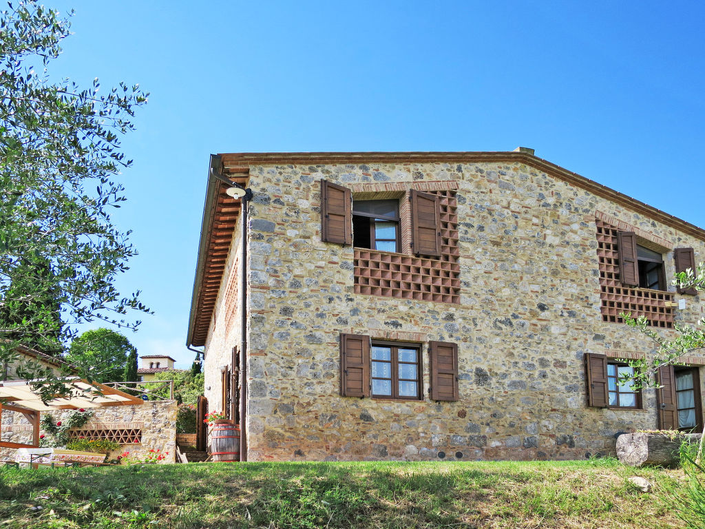 Lucciana 3 km von Casole d'Elsa: Grosses, komfortables Rustico "Poggio all'Aia", renoviert, umgeben von Wiesen und Weinbergen. Im Weiler Lucciana, 3 km vom Zentrum von Casole d'Elsa, 11 km vom Zentrum von Colle Val d'Elsa, 19 km vom Zentrum von San Gimignano, sonnige, erhöhte Lage am Hang, im Grünen. Zur Alleinbenutzung: Terrassengarten, 5'000 m2 (eingezäunt) mit Pflanzen und Bäumen, Naturgarten, Wiese, Aufstellpool (12 x 5 m, 140 cm tief, 01.05.-15.10.). Parkplatz auf dem Grundstück. Lebensmittelgeschäft 3 km, Supermarkt 11 km, Restaurant 3 km, Bar 3 km, Bäckerei 3 km, Bushaltestelle "Casole d'Elsa" 3 km, Bahnstation "Colle Val d'Elsa" 11 km, Sandstrand 62 km, Freibad 11 km, Hallenbad 11 km. Nahe gelegene Sehenswürdigkeiten: Volterra 23 km, Siena 38 km, Firenze 64 km.