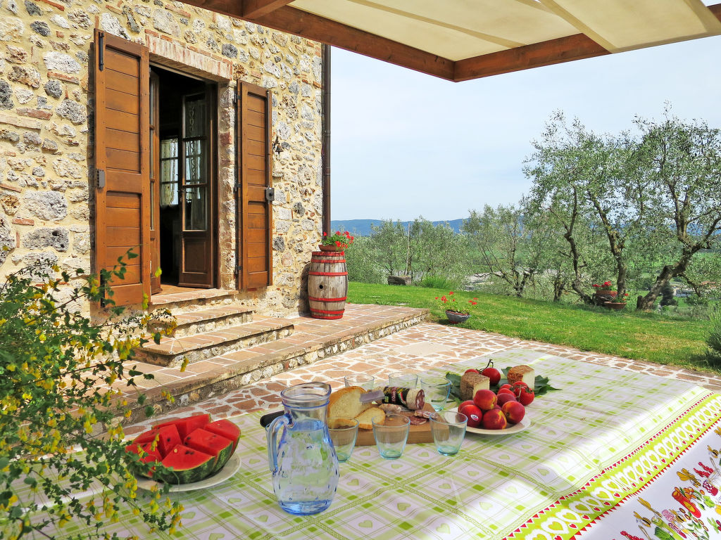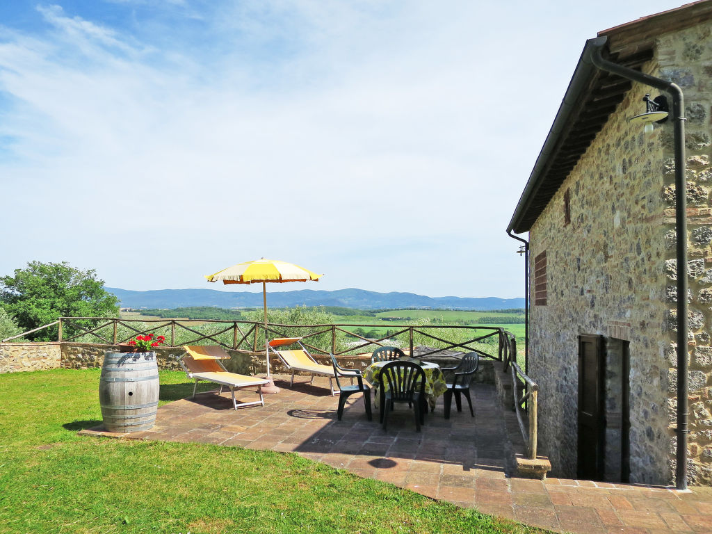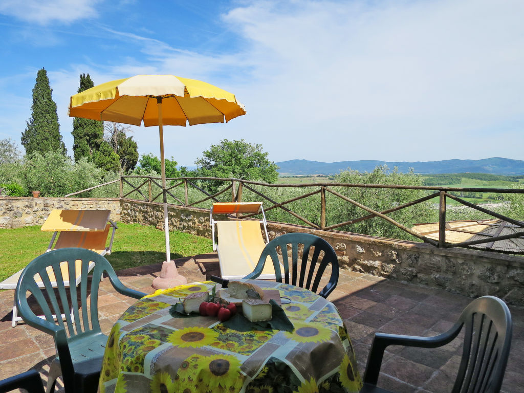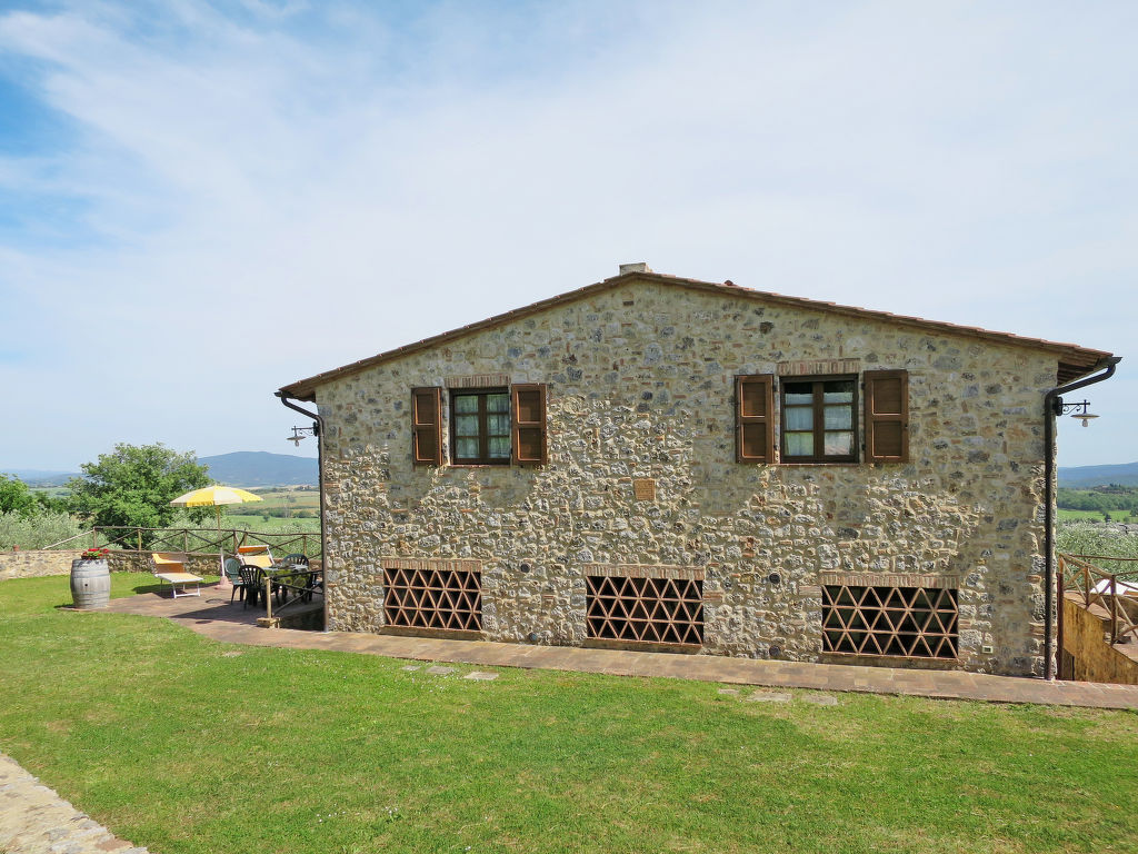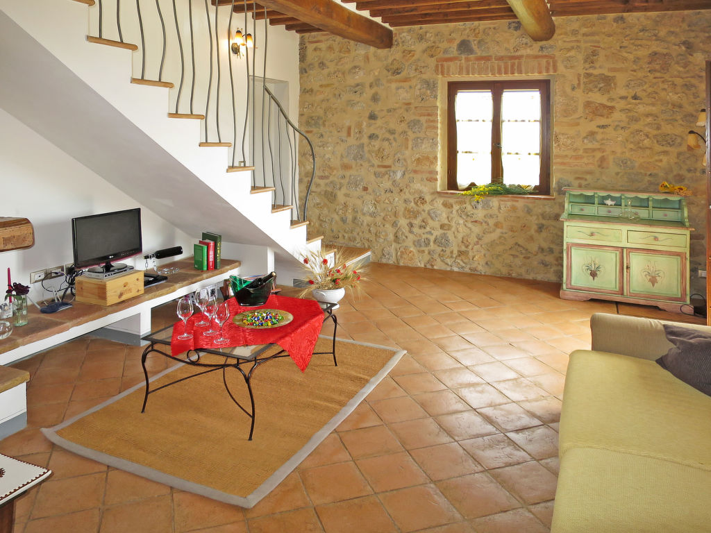 Lucciana 3 km von Casole d'Elsa: Grosses, komfortables Rustico "Poggio all'Aia", renoviert, umgeben von Wiesen und Weinbergen. Im Weiler Lucciana, 3 km vom Zentrum von Casole d'Elsa, 11 km vom Zentrum von Colle Val d'Elsa, 19 km vom Zentrum von San Gimignano, sonnige, erhöhte Lage am Hang, im Grünen. Zur Alleinbenutzung: Terrassengarten, 5'000 m2 (eingezäunt) mit Pflanzen und Bäumen, Naturgarten, Wiese, Aufstellpool (12 x 5 m, 140 cm tief, 01.05.-15.10.). Parkplatz auf dem Grundstück. Lebensmittelgeschäft 3 km, Supermarkt 11 km, Restaurant 3 km, Bar 3 km, Bäckerei 3 km, Bushaltestelle "Casole d'Elsa" 3 km, Bahnstation "Colle Val d'Elsa" 11 km, Sandstrand 62 km, Freibad 11 km, Hallenbad 11 km. Nahe gelegene Sehenswürdigkeiten: Volterra 23 km, Siena 38 km, Firenze 64 km.
