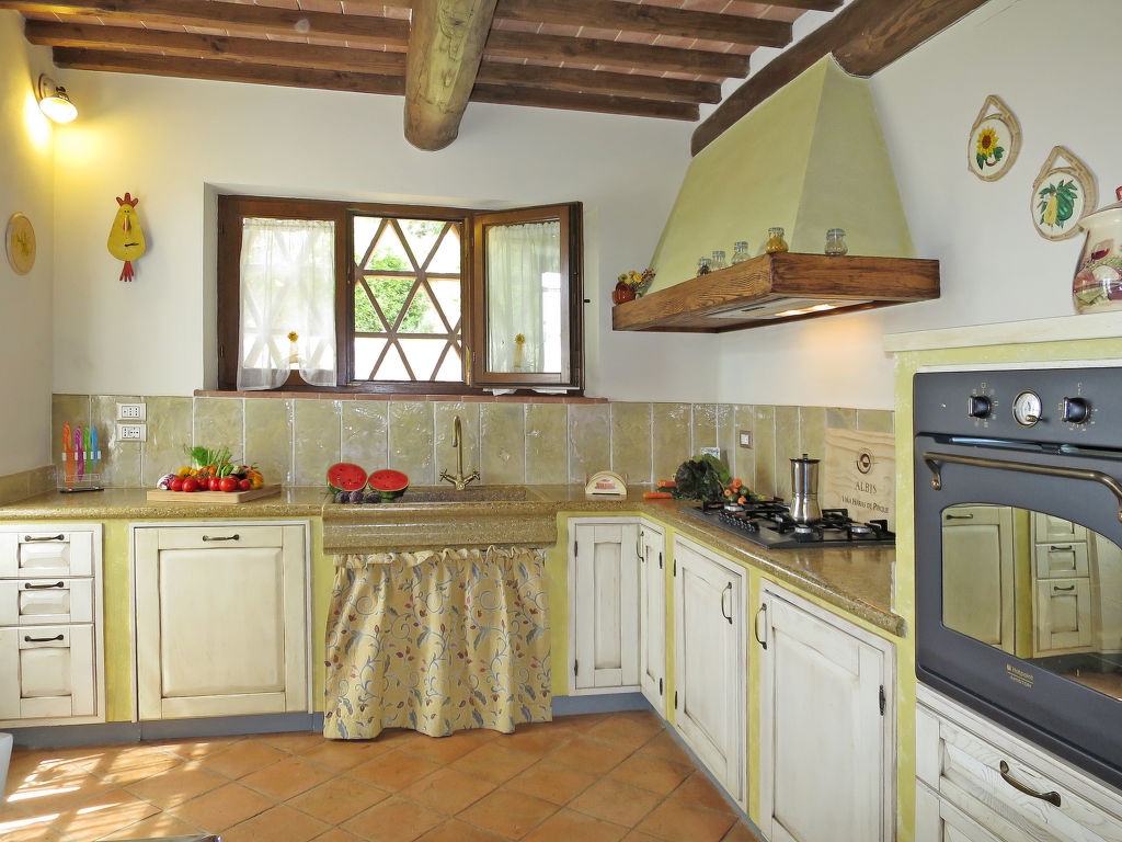 "Poggio all'Aia", 6-Zimmer-Haus 160 m2 auf 2 Stockwerken. Schön und geschmackvoll eingerichtet: Wohnzimmer mit offenem Kamin, Küchenblock, Sat-TV, Radio und CD. Ausgang zur Terrasse. Wohnzimmer mit Sat-TV, Radio und CD. Ausgang zur Terrasse. Offene Küche (Backofen, Geschirrspüler, 5 Flammen, Tiefkühler, elektrische Kaffeemaschine) mit Esstisch. Ausgang zur Terrasse. 2 Duschen/WC. Obergeschoss: 2 Zimmer, jedes Zimmer mit 1 franz. Bett (160 cm). 2 Zimmer, jedes Zimmer mit 2 Betten (80 cm). Bad/WC, Dusche/WC. G-Heizung. Komfortable Einrichtung im Landhausstil. 3 Terrassen. Terrassenmöbel, Gartengrill (mobil), Liegestühle. Zur Verfügung: Waschmaschine, Kinderhochstuhl, Babybett, Haartrockner. Internet (Wireless LAN, gratis). Bitte beachten: Nichtraucher-Haus. Maximal 3 Haustiere/Hunde erlaubt. Keine interne Verbindung zwischen den separaten Wohneinheiten. Bei Belegung mit weniger Personen als der maximalen Personenzahl stehen nicht alle Schlafzimmer zur Verfügung. Bei Belegung mit weniger Personen als der maximalen Personenzahl stehen nicht alle Wohneinheiten zur Verfügung.