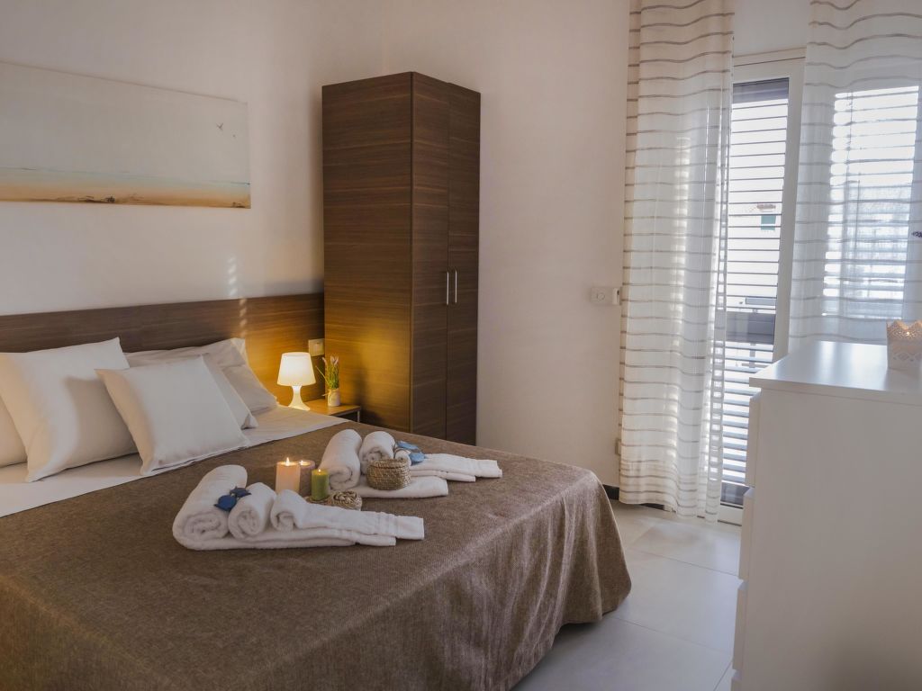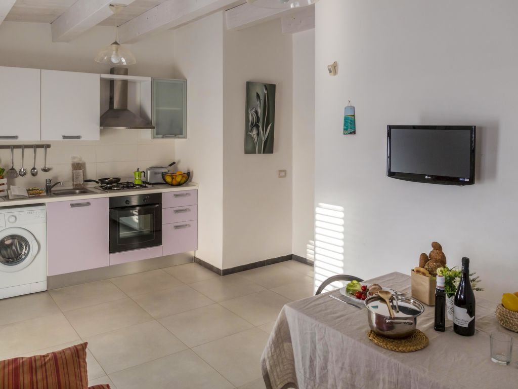 2-Zimmer-Wohnung 40 m2 im 2. Stock. Zweckmässig und komfortabel eingerichtet: Wohn-/Schlafzimmer mit 1 Doppeldiwanbett und TV (Flachbildschirm), Klimaanlage. Ausgang zur Terrasse. 1 Doppelzimmer. Kochnische (4 Kochplatten, Backofen, Tiefkühler) mit Esstisch. Dusche/Bidet/WC. Terrasse 15 m2, überdacht. Terrassenmöbel. Eingeschränkte Fernsicht auf das Meer. Zur Verfügung: Waschmaschine, Bügeleisen, Haartrockner. Internet (Wireless LAN, gratis). Bitte beachten: Maximal 1 Haustier/Hund erlaubt. Kein Fahrstuhl.