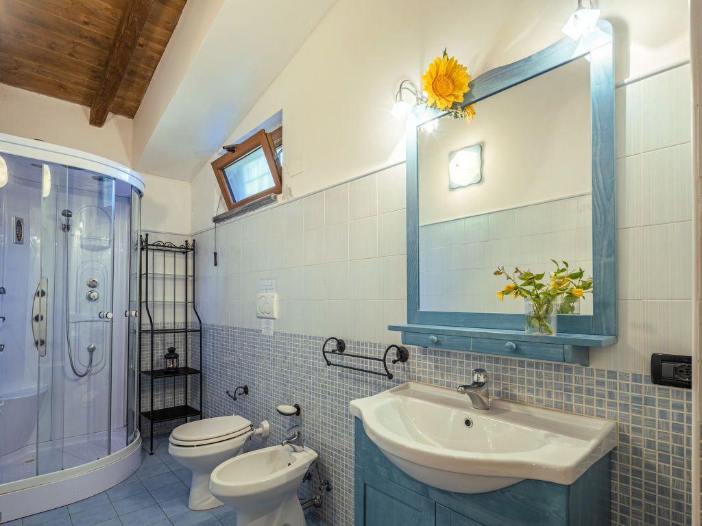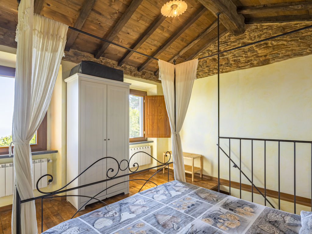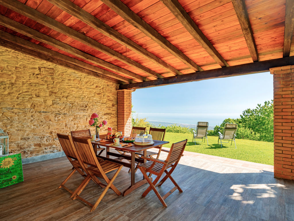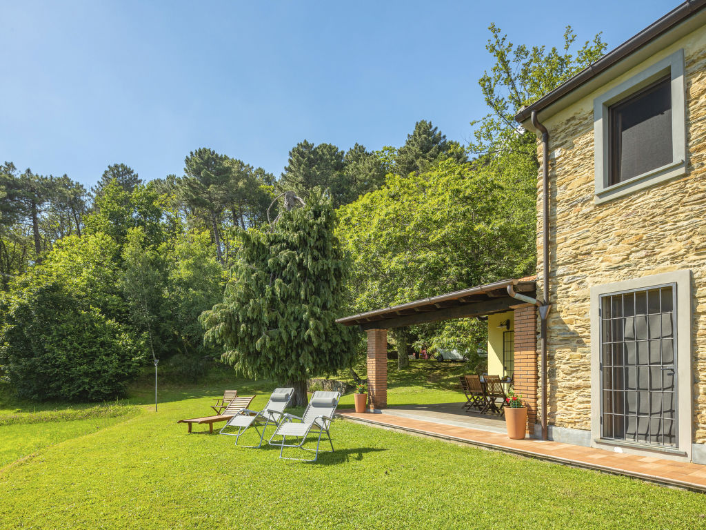 Doppelhaus "Girasole", 600 m.ü.M., umgeben von Bäumen und Wiesen. 3.9 km vom Zentrum von Cerreto di Montignoso, 11.5 km vom Zentrum von Massa, 52 km vom Zentrum von Pisa, ruhige, sonnige, erhöhte Lage am Hang, 12 km vom Meer, im Grünen, im Wald. Zur Alleinbenutzung: Terrassengarten, 1'000 m2 (eingezäunt) Bäumen, Naturgarten, Wiese, Obstgarten. Steile Zufahrt (400 m Naturweg). Parkplatz auf dem Grundstück. Einkaufsgeschäft 3.6 km, Supermarkt 9 km, Bahnstation "Massa" 11.5 km, Sandstrand "Cinquale" 12 km. Bitte beachten: Fahrzeug empfohlen, kein Fahrstuhl vorhanden.