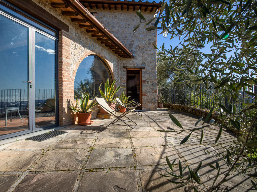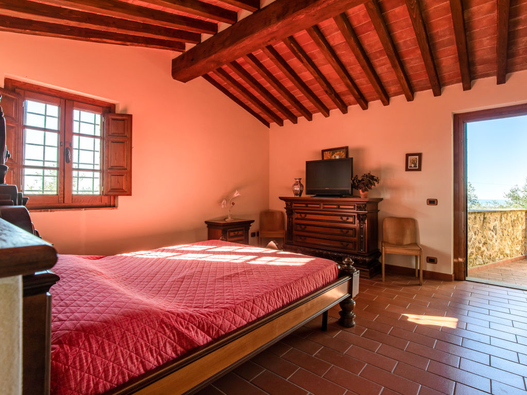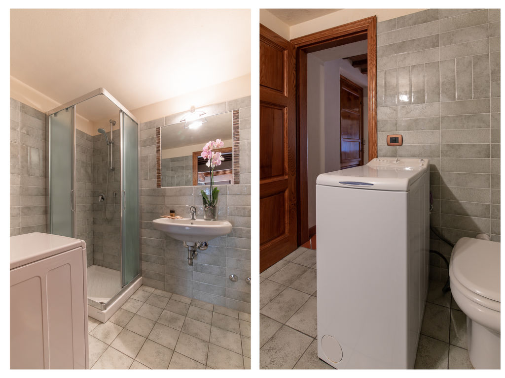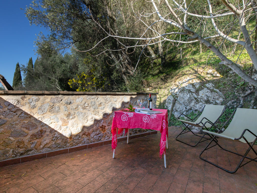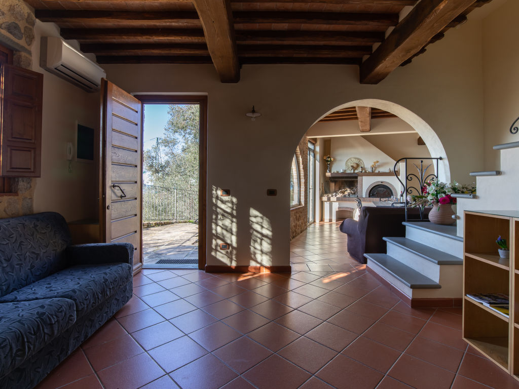 "Al Pozzo", 3-Zimmer-Villa 140 m2 auf 2 Stockwerken. Hell, komfortabel und rustikal eingerichtet: Eingang mit 1 Doppeldiwanbett und Klimaanlage. Offenes Wohn-/Esszimmer mit Essecke und Sat-TV. Ausgang zur Terrasse. Grosses Wohn-/Esszimmer mit offenem Kamin und Esstisch. Abgeschrägte, kleine Kochnische (4 Kochplatten, Backofen, Geschirrspüler, Mikrowelle, Tiefkühler). Dusche/Bidet/WC. Obergeschoss: 2 Doppelzimmer, jedes Zimmer mit Klimaanlage. Ausgang zur Terrasse. Bad/Bidet/WC. 3 Terrassen, grosse Laube. Terrassenmöbel, Gartengrill. Fernsicht auf das Meer, das Tal und die Ortschaft. Zur Verfügung: Waschmaschine, Bügeleisen. Für Kleinkinder nicht geeignet.