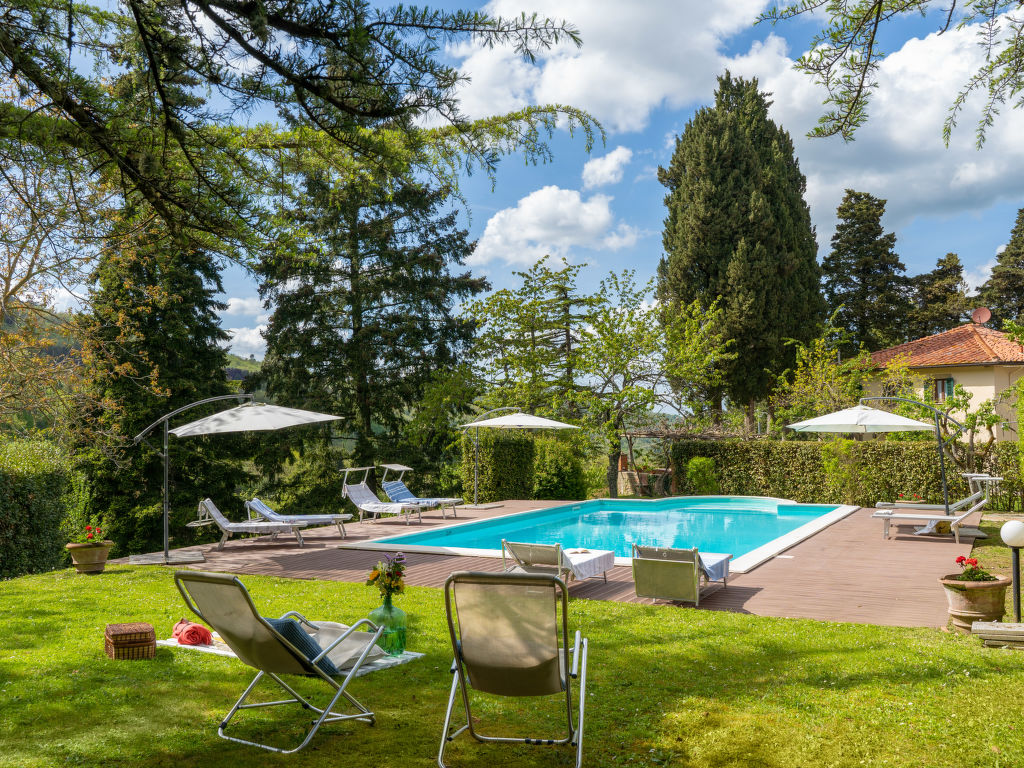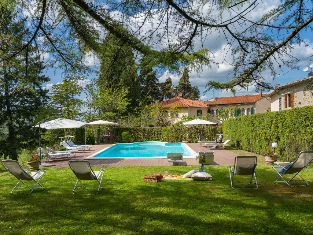 Herrenhaus "Borgo Castagnoli", 650 m.ü.M., umgeben von Feldern und Weinbergen. 12 km vom Zentrum von Greve in Chianti, 2 km vom Zentrum von Lucolena, alleinstehende Lage, im Grünen. Zur Alleinbenutzung: Grundstück 40 ha, Park, schöner, gepflegter Garten (nicht eingezäunt) mit Blumen und Bäumen, Liegewiese, Schwimmbad (10 x 5 m, 100 - 200 cm tief, 10.05.-10.10.). Aussendusche, Terrasse, Grill, Poolpflege durch den Besitzer/Gärtner. 500 m lange holprige Zufahrt (Naturweg). Parkplatz auf dem Grundstück. Einkaufsgeschäft 2 km, Supermarkt 10 km. Golfplatz 20 km. Bitte beachten: Fahrzeug empfohlen.