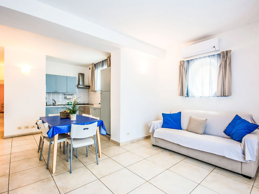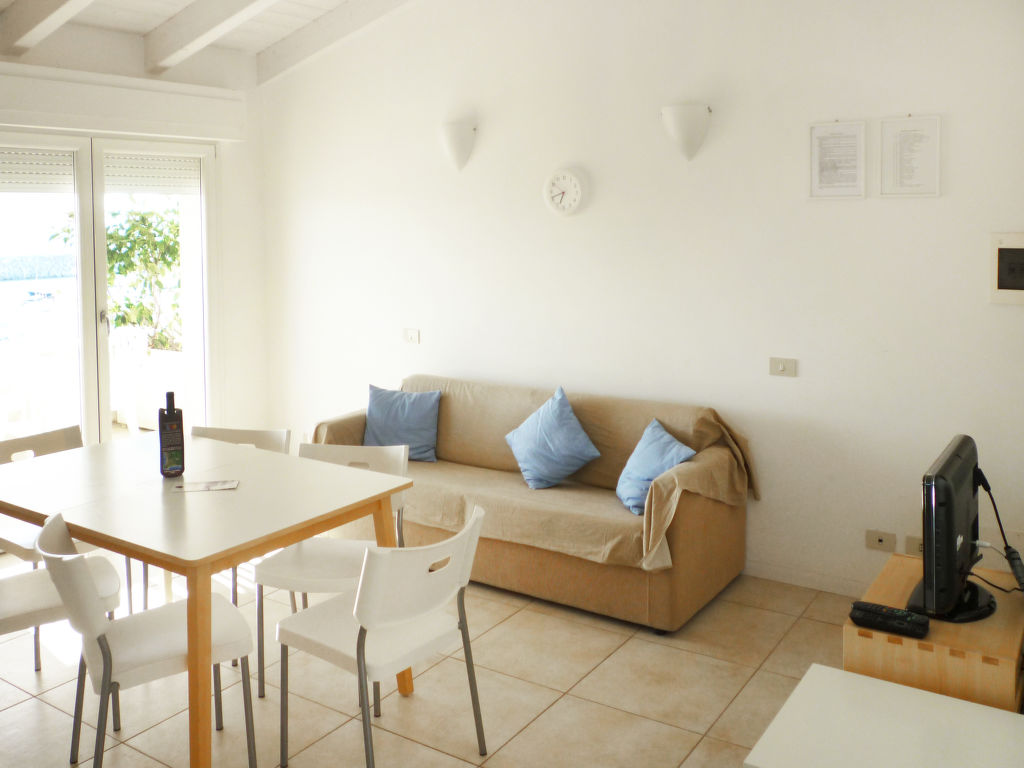 "Trilocale", 3-Zimmer-Wohnung 65 m2. Komfortabel eingerichtet: Wohnzimmer mit 1 Doppeldiwanbett und Digital-TV. 1 Doppelzimmer mit 1 Doppelbett und 1 Schlafmöglichkeit. 1 kleines Zimmer mit 2 Betten. Kochnische (4 Flammen). Dusche/Bidet/WC. Klimaanlage. Sicht auf den Hafen. Zur Verfügung: Haartrockner. Internet (Wireless LAN, gratis). Geeignet für Familien. 1 Haustier/Hund erlaubt. Beim Mietobjekt handelt es sich um ein Typenhaus bzw. Um eine Typenwohnung. Bügelbrett und Bügeleisen je nach Verfügbarkeit (extra). Wasserkocher, elektrische Kaffeemaschine zur Verfügung (Kapseln extra).