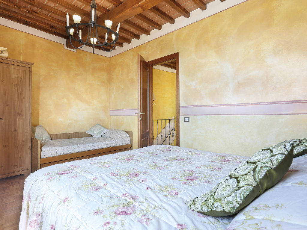 Alleinstehendes Bauernhaus "San Bastiano", 160 m.ü.M., renoviert. 2 Wohnungen im Ferienhaus. 1 km vom Zentrum von Buti, 24 km vom Zentrum von Lucca, 25 km vom Zentrum von Pisa, alleinstehende Lage am Hang, 40 km vom Meer. Zur Mitbenutzung: Grundstück 10'000 m2 (eingezäunt), Terrassengarten mit Bäumen, Wiese, Schwimmbad (13 x 5 m, 116 - 240 cm tief, saisonale Verfügbarkeit: 02.Mai.-03.Okt.). Aussendusche, Kinderspielplatz. Im Hause: Waschmaschine (zur Mitbenutzung). 2 km lange schmale Zufahrt (Bergstrasse). Parkplatz auf dem Grundstück. Einkaufsgeschäft 1 km, Supermarkt 3.6 km, Park "Marina di Pisa" 40 km. Bitte beachten: Der Besitzer wohnt auf dem gleichen Grundstück.