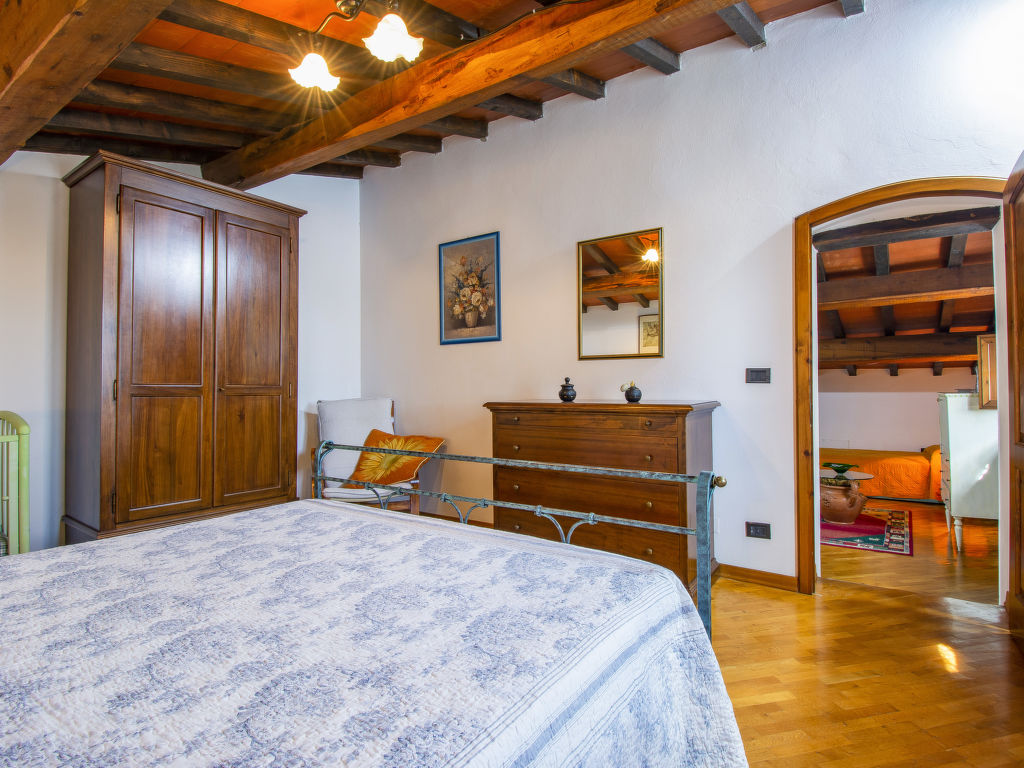 4-Zimmer-Haus 140 m2 auf 2 Stockwerken. Renoviert, rustikal und gemütlich eingerichtet: Wohnzimmer. Ausgang zur Loggia. 1 Zimmer mit 2 Betten (80 cm). 1 Zimmer mit 1 Bett (80 cm). Küche (1 Kochplatte, Backofen, 3 Flammen, Tiefkühler, elektrische Kaffeemaschine) mit Esstisch, offenem Kamin. Ausgang zum Garten. 2 Duschen/Bidet/WC. G-Heizung. Obergeschoss: abgeschrägte Galerie mit 1 Bett. 1 Zimmer mit 1 franz. Bett (160 cm). Terrasse 8 m2, Garten. Liegestühle. Panoramasicht. Zur Verfügung: Kinderhochstuhl, Babybett. Internet (Wireless LAN, gratis). Bitte beachten: Nichtraucher-Haus. Eigener Eingang.