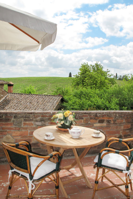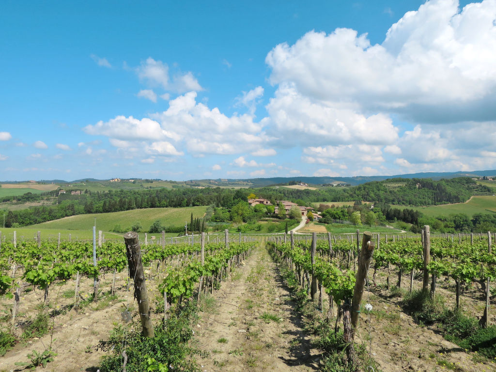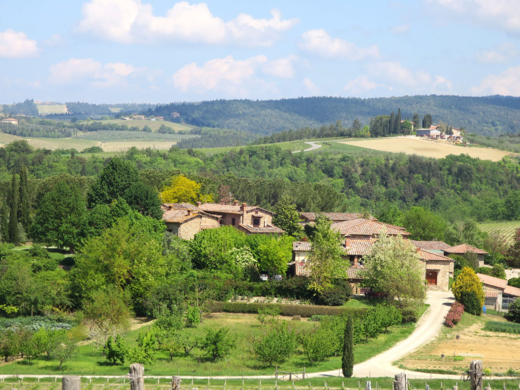 Schön, gemütlich auf Weingut Rustico "San Fabiano Calcinaia", umgeben von Feldern und Weinbergen. 3 Wohnungen im Ferienhaus. In einem Weiler, 6 km vom Zentrum von Poggibonsi, 8.3 km vom Zentrum von Castellina in Chianti, ausserhalb des Ortes, im Grünen. Zur Alleinbenutzung: kleiner Garten (nicht eingezäunt) mit Rasen und Bäumen. Treppenweg bis zum Haus. Parkplatz auf dem Grundstück. Einkaufsgeschäft 6 km. Ab Hof Verkauf von bäuerlichen Produkten. Bitte beachten: Der Besitzer wohnt auf dem gleichen Grundstück. Eigentümer hat einen Hund. Nach Verfügbarkeit die Gäste können den Pool des 8 km entfernten Landguts Cellole (12 x 6 m, 1,20-2,20 m tief, 15.04.-31.10.) mitbenutzen, im Poolbereich Terrasse, Dusche, WC.