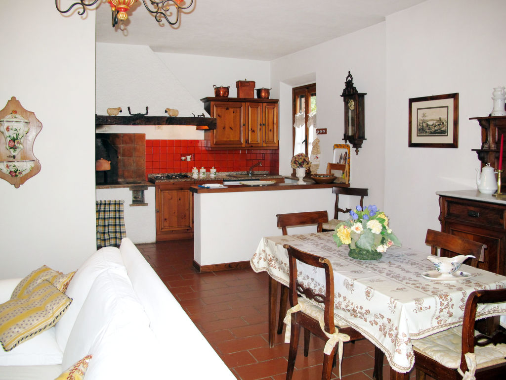 "Casetta", 3-Zimmer-Wohnung 90 m2 im 1. Stock. Schön und gemütlich eingerichtet: Wohn-/Esszimmer mit offenem Kamin (nur Deko), Esstisch und TV. Ausgang zur Terrasse. 1 Zimmer mit 1 franz. Bett (160 cm). 1 Zimmer mit 2 Betten (80 cm). Kochnische (Backofen, Geschirrspüler, 4 Flammen, Mikrowelle, Tiefkühler, elektrische Kaffeemaschine). Dusche/WC. G-Heizung. Terrasse 12 m2, Gartensitzplatz. Terrassenmöbel. Schöne Sicht auf die Landschaft und den Wald. Zur Verfügung: Kinderhochstuhl, Babybett. Internet (Wireless LAN, gratis). Bitte beachten: Nichtraucher-Unterkunft. Maximal 1 kleines Haustier/Hund erlaubt. Eigener Eingang.