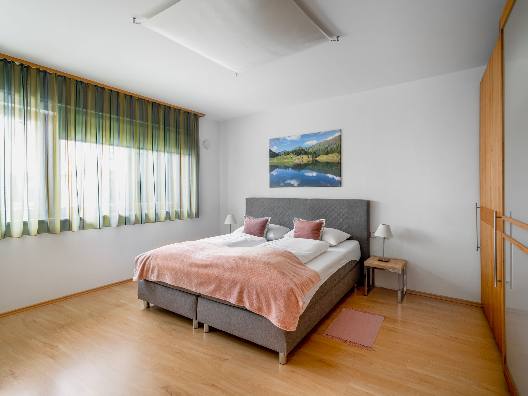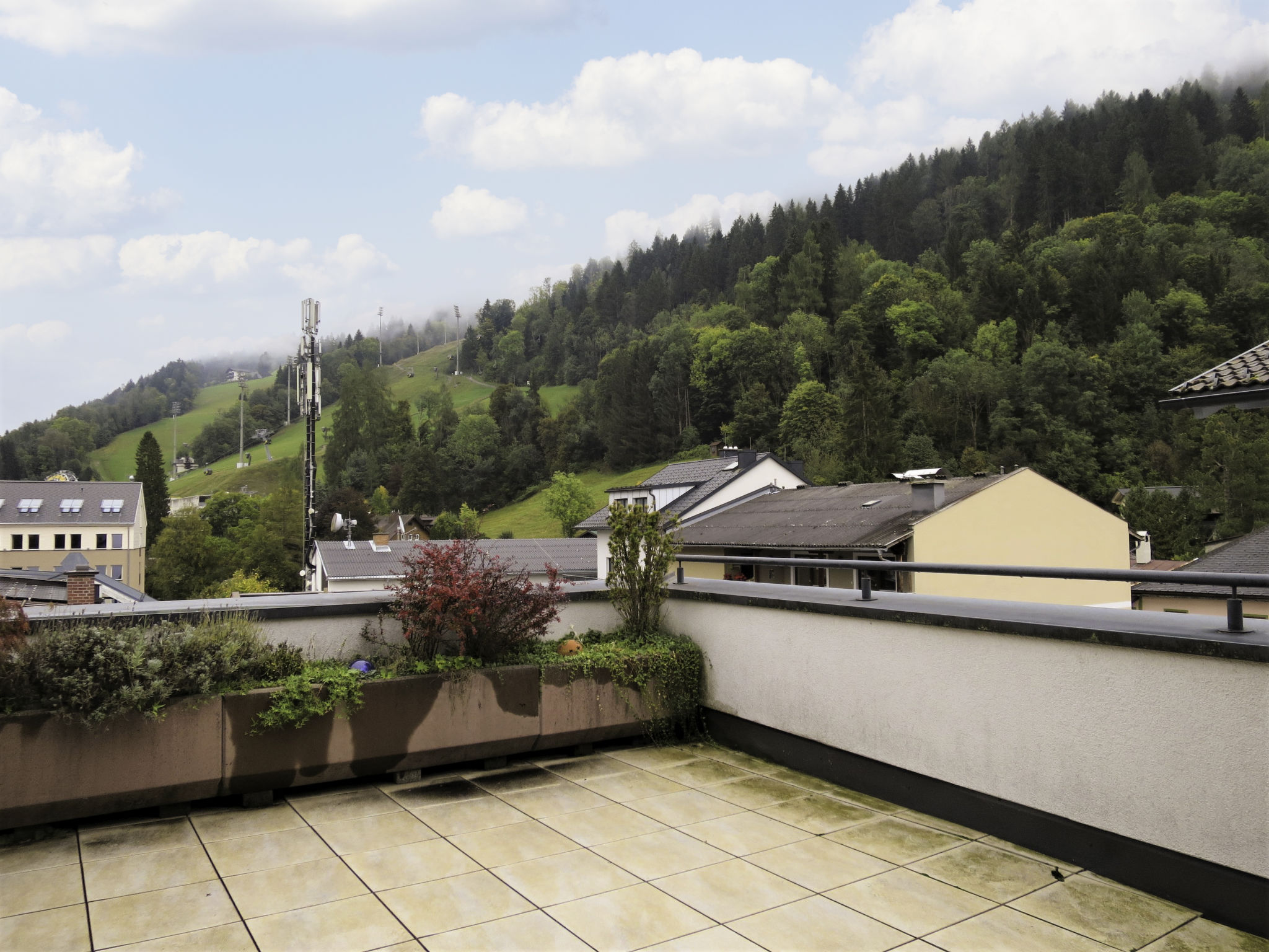 "Penthouse", 6-Zimmer-Dachterrassenwohnung 160 m2 im 3. Stock. Geräumig und hell, komfortabel eingerichtet: Wohnzimmer mit offenem Kamin (nur Deko), Sat-TV und Flachbildschirm. Ausgang zum Balkon. 2 Doppelzimmer. Ausgang zum Balkon. 1 Zimmer mit 2 Betten. Ausgang zum Balkon. 1 Doppelzimmer mit Bad/Dusche/WC und Doppelwaschbecken. Grosse Wohnküche (Backofen, Geschirrspüler, 4 Glaskeramikherd Platten, Toaster, Wasserkocher, Mikrowelle, elektrische Kaffeemaschine, Dampfgarer). Ausgang zur Terrasse. Dusche/WC. Heizung. Grosse Terrasse 16 m2, Südlage. Terrassenmöbel, Gartengrill (mobil). Sehr schöne Panoramasicht auf die Berge, die Skipiste und die Stadt. Zur Verfügung: Internet (Wireless LAN). Parkplatz (2 Autos) in 250 m. Bitte beachten: Nichtraucher-Haus. 1 Haustier/Hund erlaubt.