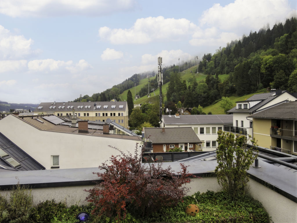 "Penthouse", 6-Zimmer-Dachterrassenwohnung 160 m2 im 3. Stock. Geräumig und hell, komfortabel eingerichtet: Wohnzimmer mit offenem Kamin (nur Deko), Sat-TV und Flachbildschirm. Ausgang zum Balkon. 2 Doppelzimmer. Ausgang zum Balkon. 1 Zimmer mit 2 Betten. Ausgang zum Balkon. 1 Doppelzimmer mit Bad/Dusche/WC und Doppelwaschbecken. Grosse Wohnküche (Backofen, Geschirrspüler, 4 Glaskeramikherd Platten, Toaster, Wasserkocher, Mikrowelle, elektrische Kaffeemaschine, Dampfgarer). Ausgang zur Terrasse. Dusche/WC. Heizung. Grosse Terrasse 16 m2, Südlage. Terrassenmöbel, Gartengrill (mobil). Sehr schöne Panoramasicht auf die Berge, die Skipiste und die Stadt. Zur Verfügung: Internet (Wireless LAN). Parkplatz (2 Autos) in 250 m. Bitte beachten: Nichtraucher-Haus. 1 Haustier/Hund erlaubt.
