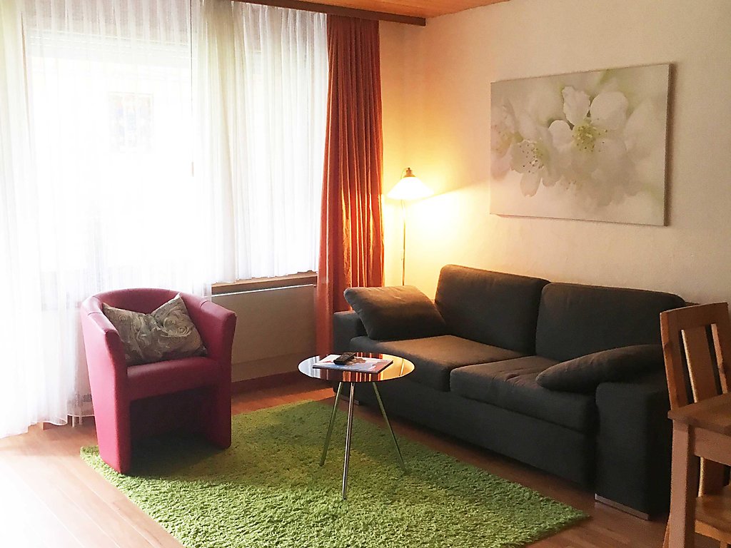 58 m2. Weitere Angaben des Anbieters: Gemütlich eingerichtete 2-Zimmerwohnung (58m2) in chaletartigem Mehrfamilienhaus, 5 Gehminuten von den Bergbahnen entfernt und in unmittelbarer Nähe zum Dorfzentrum und Zentralbahn. Komplett ausgerüstete Küche mit Geschirrspüler, Nespresso-Kaffeemaschine, Filter-Kaffeemaschine, Wasserkocher, Mikrowelle und Toaster. Helles Wohnzimmer mit TV/DVD, Bettsofa für 2 Personen, Schlafzimmer mit Doppelbett. Dusche/WC. Grosser, sonniger, möblierter Balkon. Skiraum. Gratis-Wlan. Gratis Tiefgarage und Aussenparkplatz, Grillplatz hinter dem Haus. Haustiere nicht erlaubt. NICHTRAUCHER-WOHNUNG. 2-Zimmerwohnung (58m2) im 1. Stock: Wohnzimmer mit Bettsofa für 2 Personen, Schlafzimmer mit Doppelbett. Offene Küche. Dusche/WC. Inklusiv: Toiletten- und Küchenwäsche, Tourismusabgabe. Exklusiv: Babybett CHF 20.00 pro Bett, Schlüsseldepot CHF 300.00 mit Kreditkarte.
