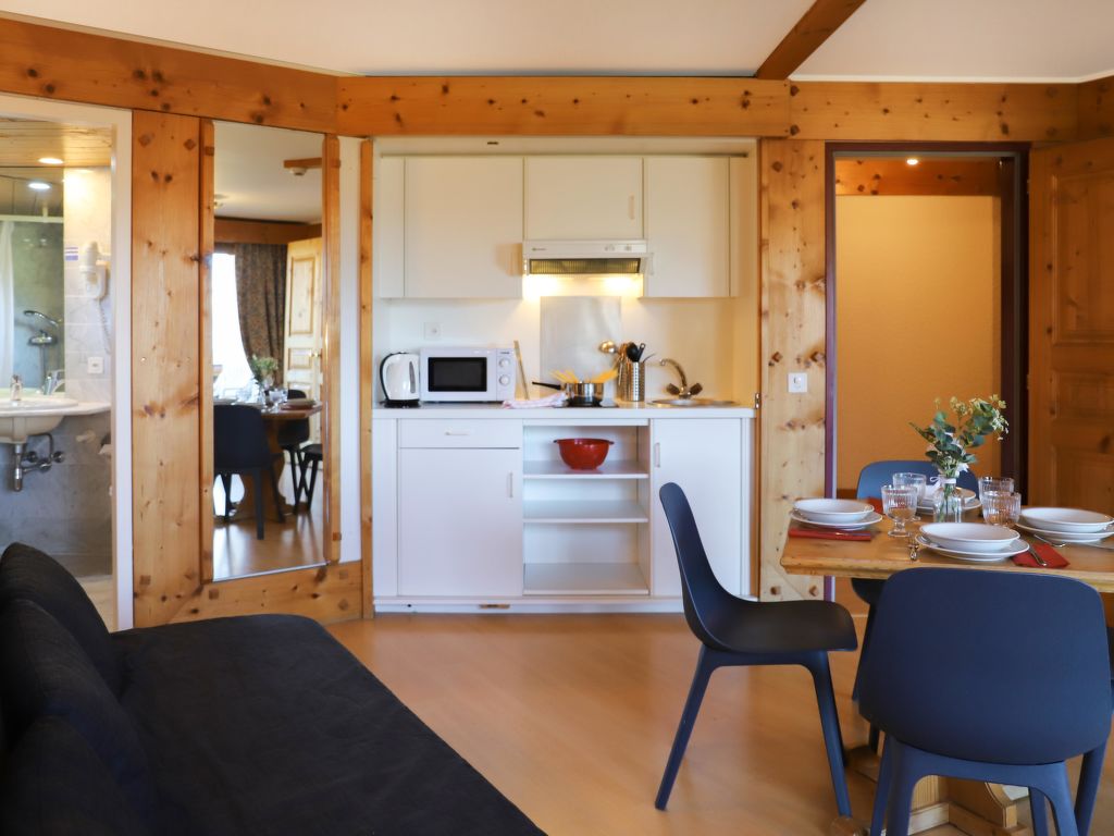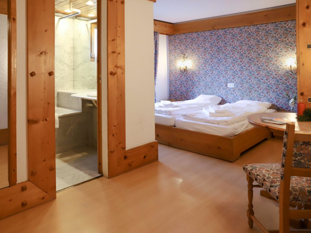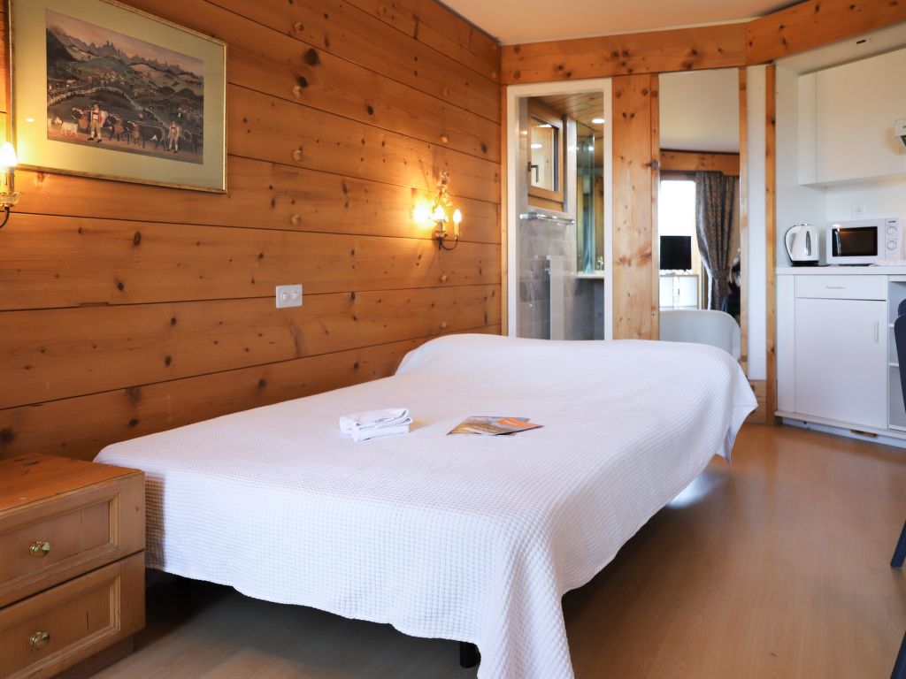 "Le Bristol A16", 2-Zimmer-Wohnung 60 m2 im 1. Stock. Geräumig, komfortabel und schön eingerichtet: grosses Wohn-/Schlafzimmer mit 1 Diwanbett (140 cm, Länge 200 cm), Esstisch, Küchenblock, Dusche/WC und TV (Flachbildschirm). Ausgang zum Balkon, Richtung Westen. 1 Doppelzimmer mit 2 Betten (90 cm), Bad/WC. Ausgang zum Balkon, Richtung Norden. Kochnische (2 Glaskeramikherd Platten, Mikrowelle). 2 Balkone 15 m2, Westlage und Nordlage. Balkonmöbel. Seitliche Sicht auf die Berge und die Ortschaft. Zur Verfügung: Internet (Wireless LAN, gratis). Bitte beachten: Nichtraucher-Unterkunft. Rauchmelder.